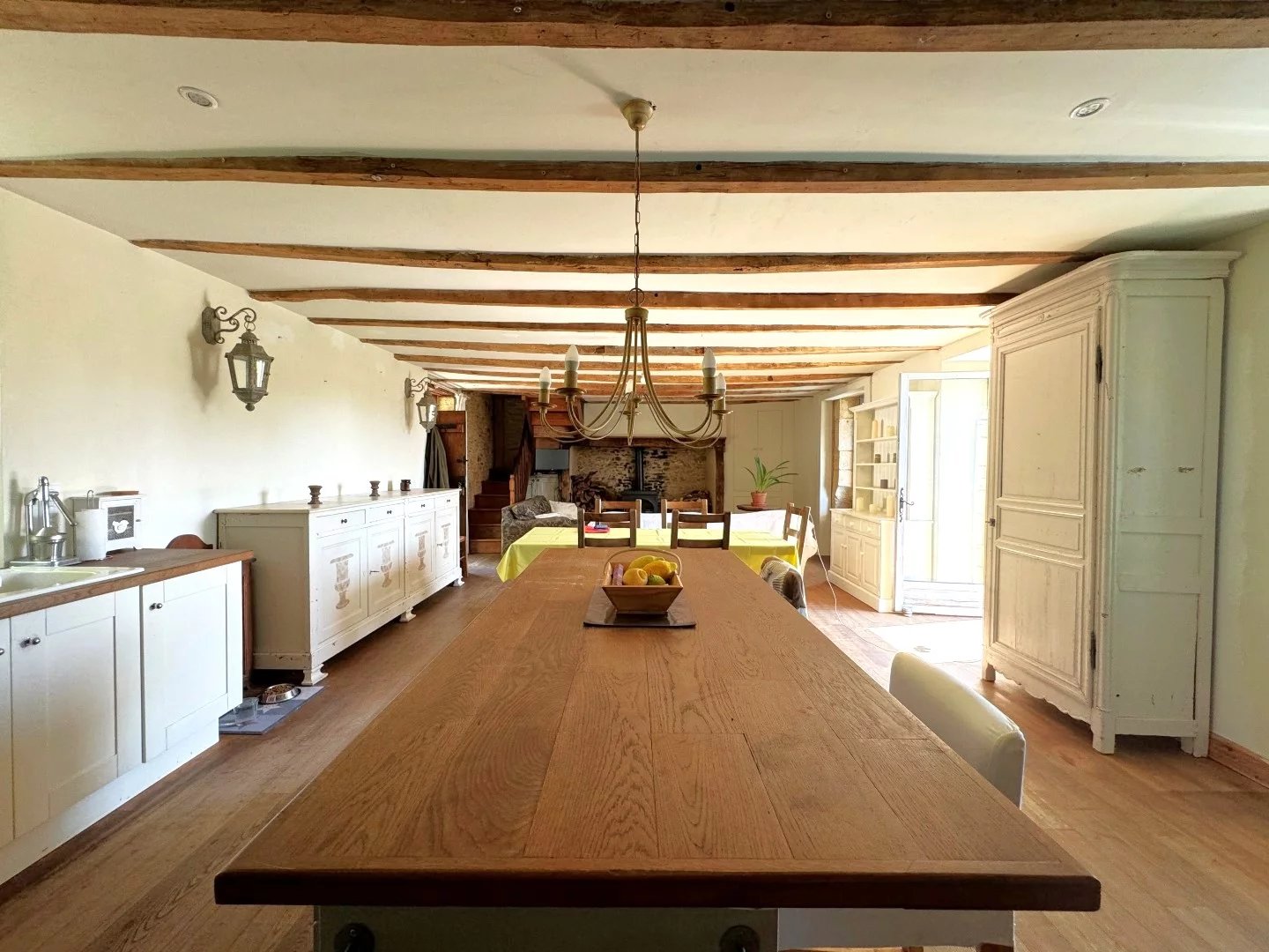À quelques kilomètres de Villefranche-du-Périgord, cette propriété offre un cadre de vie paisible, en pleine nature. L'ensemble, datant du XIXe siècle, comprend une maison principale rénovée avec goût et plusieurs dépendances en pierre, dont deux granges, un ancien four à pain et un ancien séchoir à tabac. La maison allie charme de l'ancien et confort moderne : poêle à bois, double vitrage, climatisation réversible, panneaux solaires, terrasses avec vue et espaces lumineux. Au rez-de-chaussée, une belle pièce de vie lumineuse avec cuisine équipée, ainsi qu'une chambre avec salle d'eau et WC, le tout s'ouvrant sur la terrasse. À l'étage, un palier dessert 3 chambres, toutes équipées de salles d'eau privatives et d'un balcon pour l'une d'entre elles, offrant quiétude et intimité. En rez-de-jardin, une vaste cave-buanderie complète l'ensemble. Le terrain, spacieux et arboré, accueille une piscine de 12 X 5m. Un lieu idéal pour se ressourcer, développer un projet ou accueillir famille et amis dans un cadre authentique.