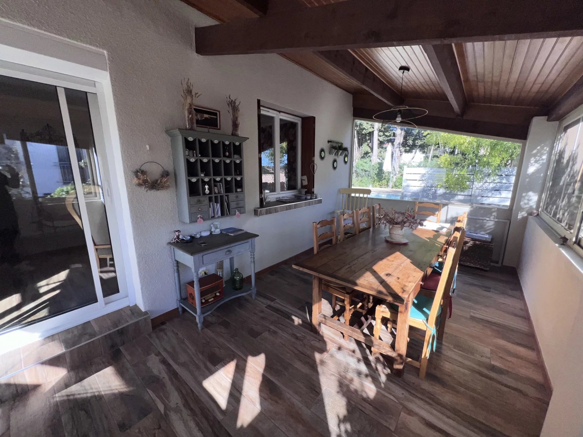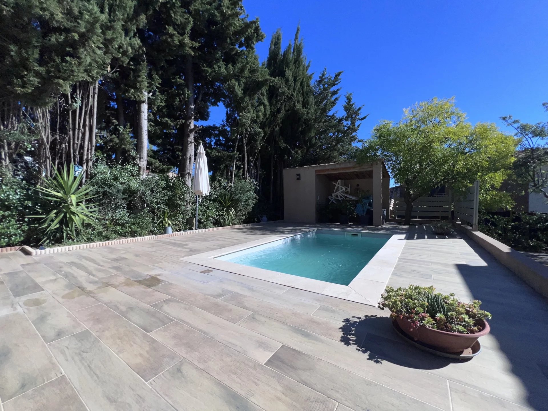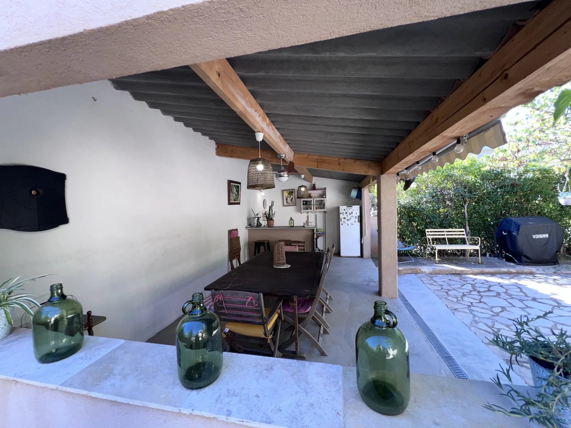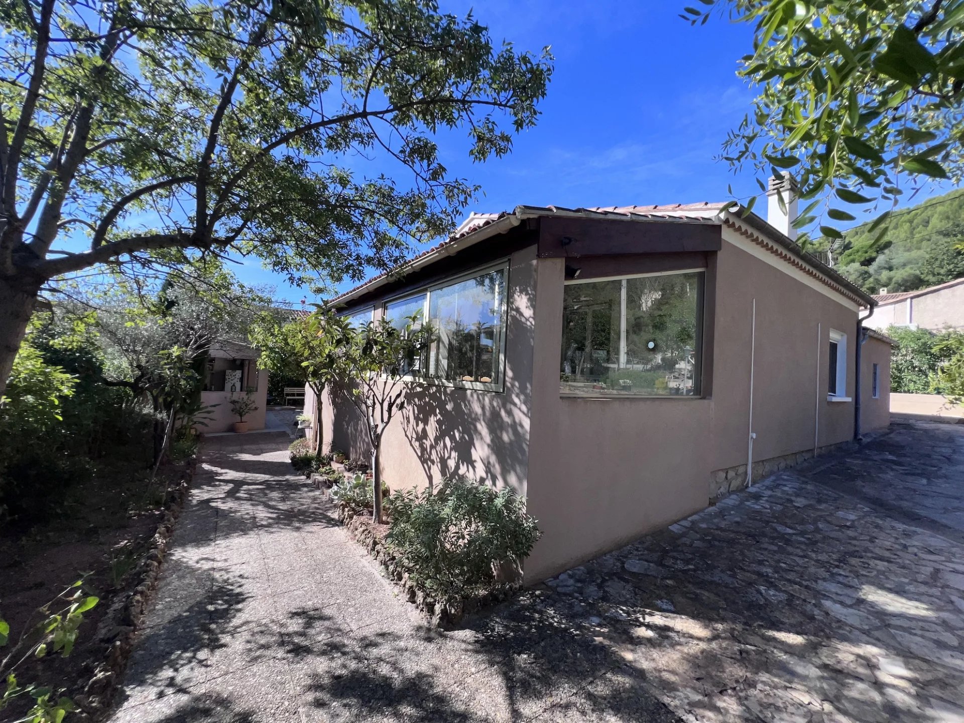 EXCLUSIVITÉ MAISON - CUERS, à proximité d'un village de caractère et de l’ensemble des commodités, dans un cadre campagne sans être isolée, adorable maison provençale de plain-pied entièrement rénovée récemment implantée sur 750 m² de terrain environ plat, en grande partie clôturé et planté de nombreuses essences méditerranéennes. Entrée, agréable salon / salle à manger avec cheminée à insert, jolie cuisine ouverte entièrement équipée, cellier attenant, spacieuse véranda, 1 chambre parentale avec dressing et bureau, 1 autre chambre avec rangements, salle d’eau, wc. Garage attenant. Bassin pour vous détendre avec de larges plages dallées et une petite terrasse ombragée, belle cuisine d’été, barbecue, auvent, abri jardin… Bénéficiant d’une exposition idéale, la maison est lumineuse et agréable à vivre. En excellent état général, décorée avec gout, au calme, sans vis à vis, elle dispose de nombreux atouts qui ne vous laisseront pas indifférent. Coup de coeur assuré en résidence principale ou secondaire. Excellent rapport locatif possible. Les informations sur les risques auxquels ce bien est exposé sont disponibles sur le site Géorisques : georisques.gouv.fr