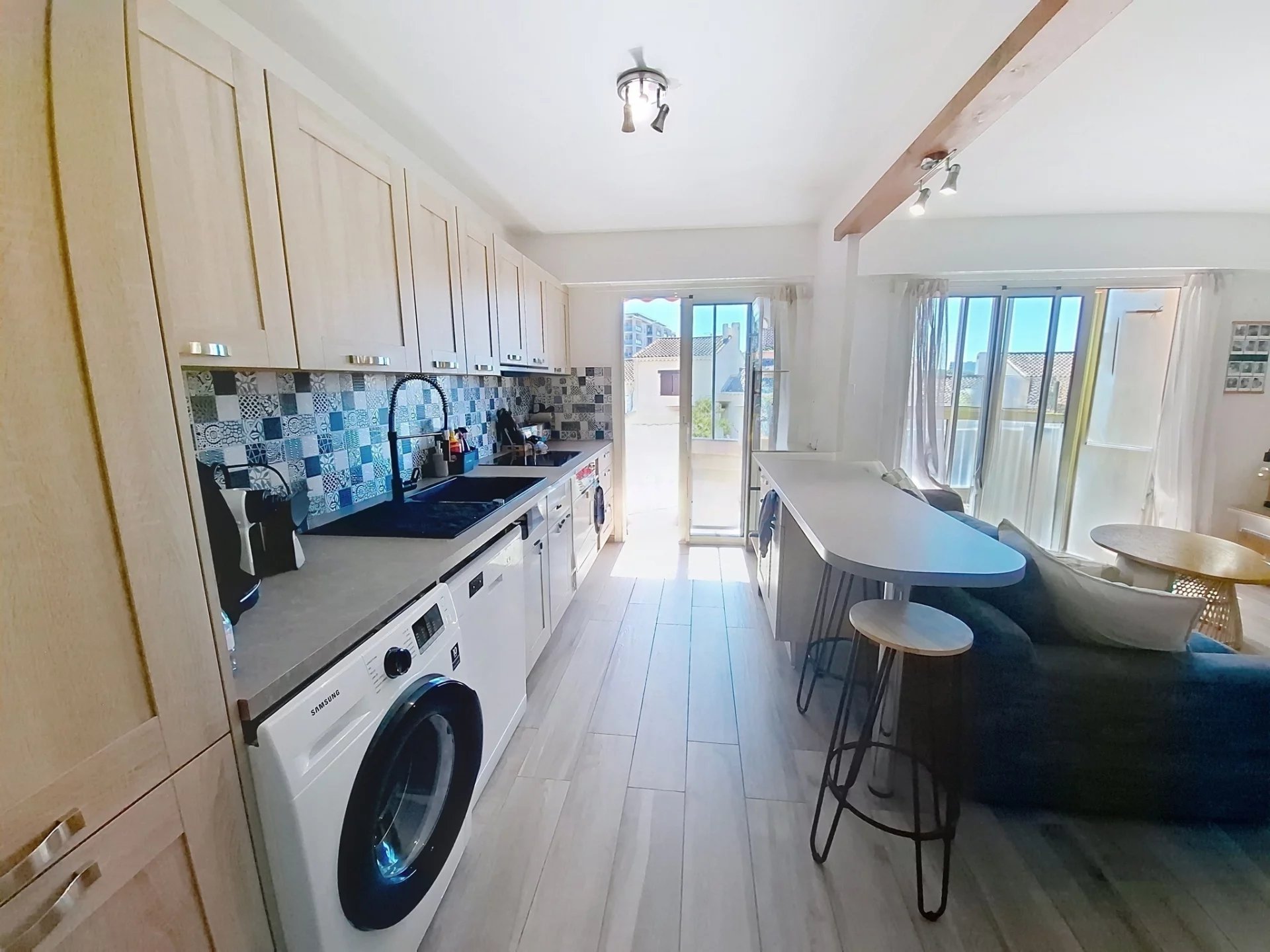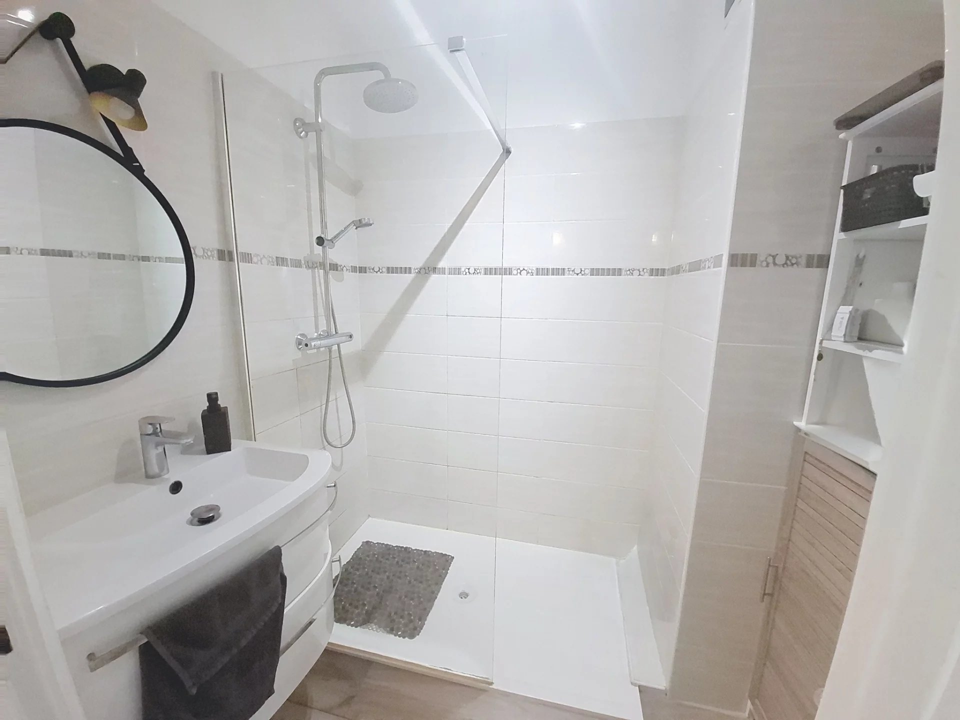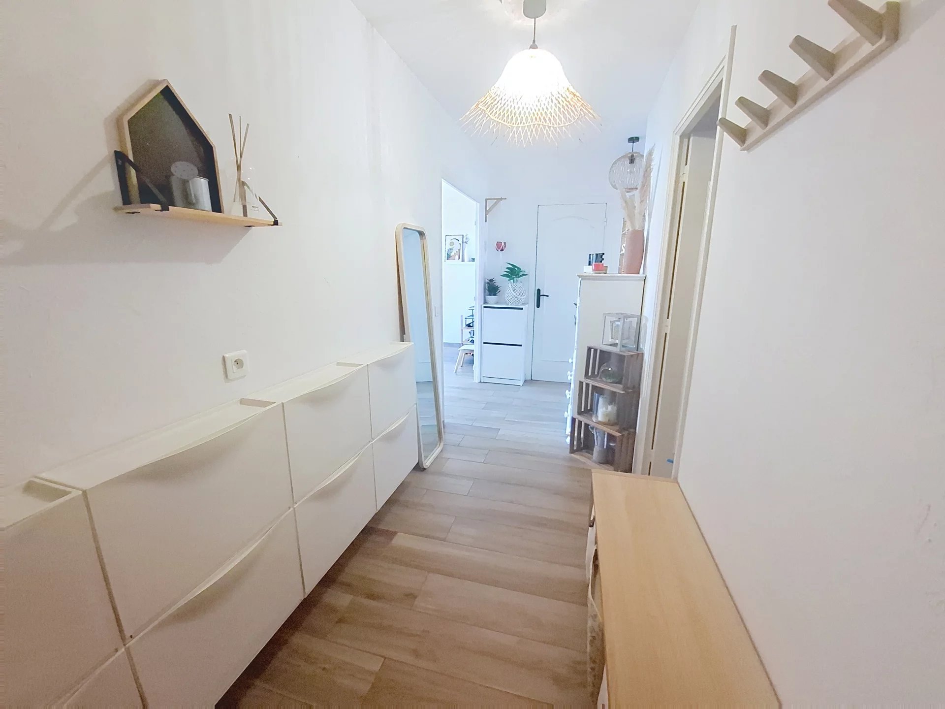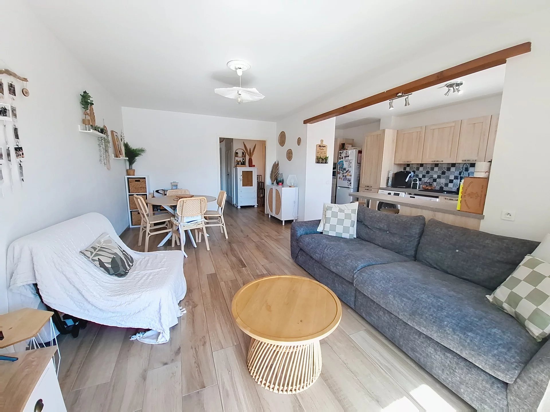 ANTIBES hauteurs dans petite résidence calme Bel appartement traversant de 3 Pièces composé d'une grande entrée séjour cuisine américaine 2 chambres salle d'eau et wc séparés. nombreux placards. parfait état le tout ouvrant sur grande terrasse fermée en véranda. cave et grand garage de plain-pied possibilité de garer une deuxième voiture facilement. à visiter