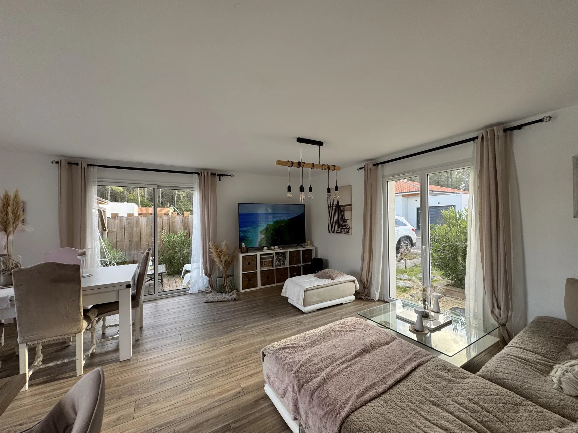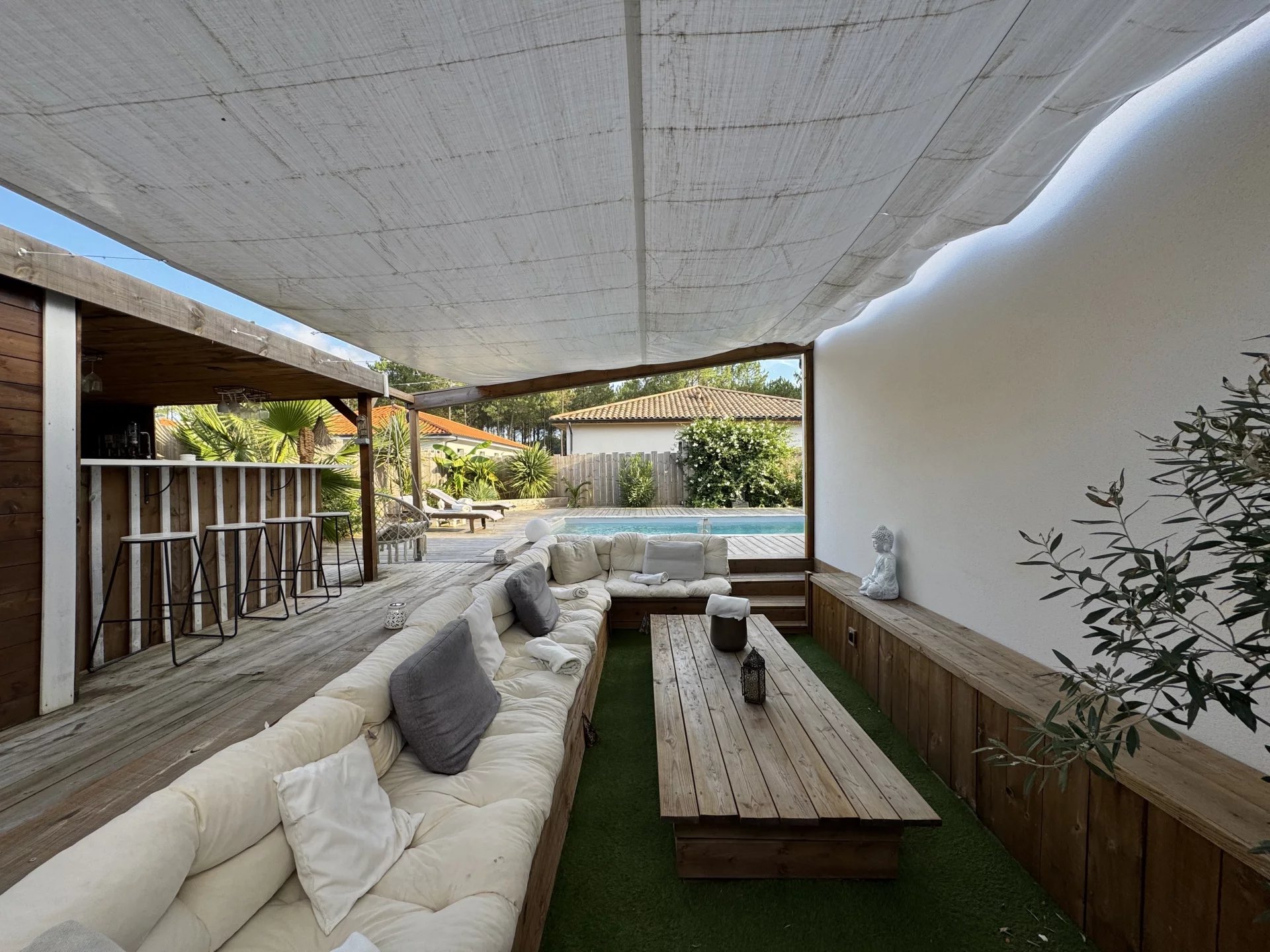 Découvrez cette superbe villa contemporaine alliant luxe, confort et modernité, idéalement située entre l’océan et le lac, dans un cadre verdoyant et apaisant. Conçue avec des matériaux de qualité et équipée des dernières technologies domotiques, cette résidence d’exception offre des prestations haut de gamme : 3 chambres spacieuses et lumineuses, Une salle d’eau moderne et une baignoire pour vos moments de détente, Une cuisine américaine entièrement équipée et ouverte sur un vaste séjour, Une piscine avec son pool house et un jacuzzi pour profiter pleinement des beaux jours. Les espaces extérieurs paysagers invitent à la détente et à la convivialité, tout en préservant une ambiance intime et sereine. À proximité immédiate de toutes les commodités, cette villa incarne l’équilibre parfait entre élégance, confort et qualité de vie. Un véritable havre de paix à Mimizan. Laissez-vous séduire !