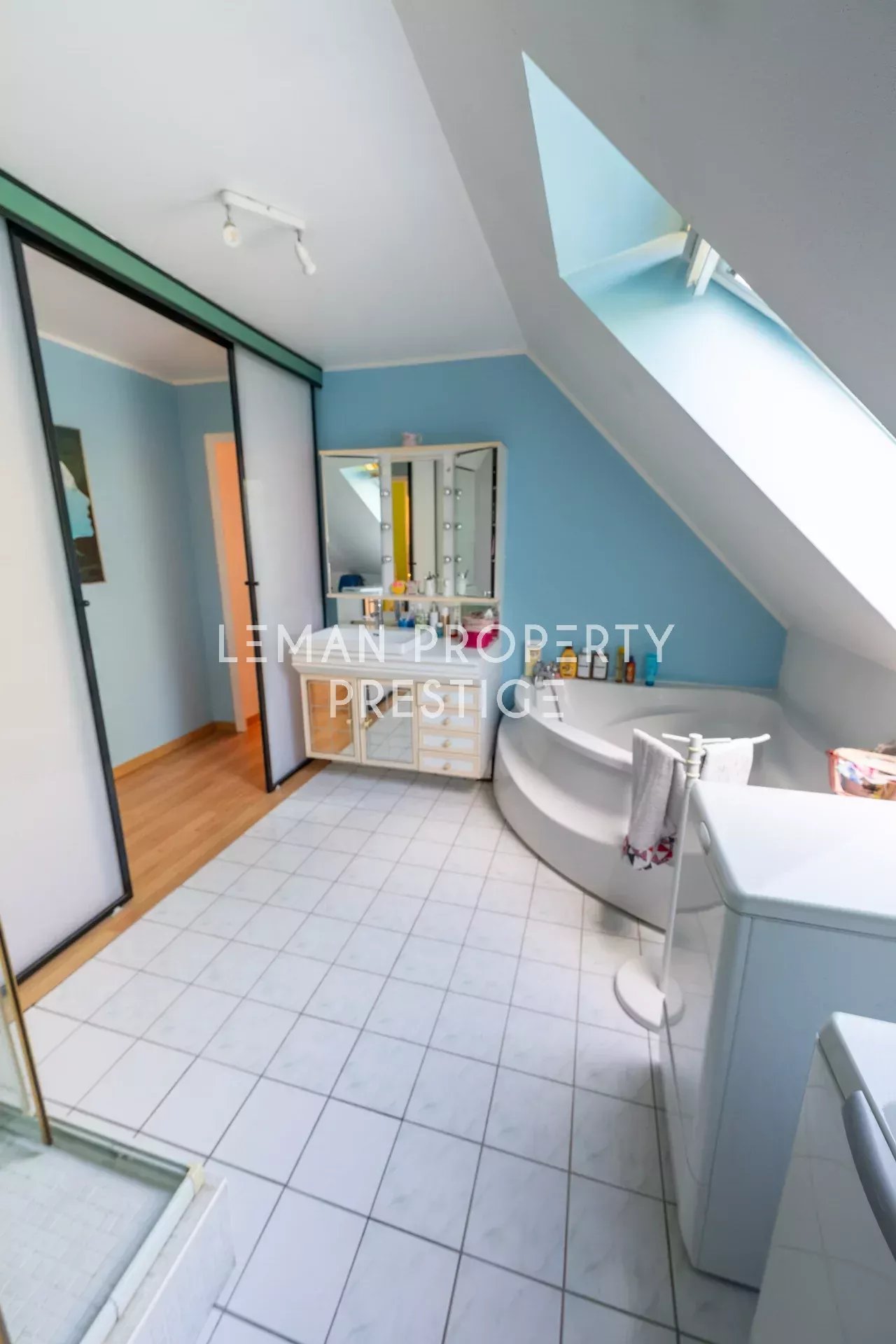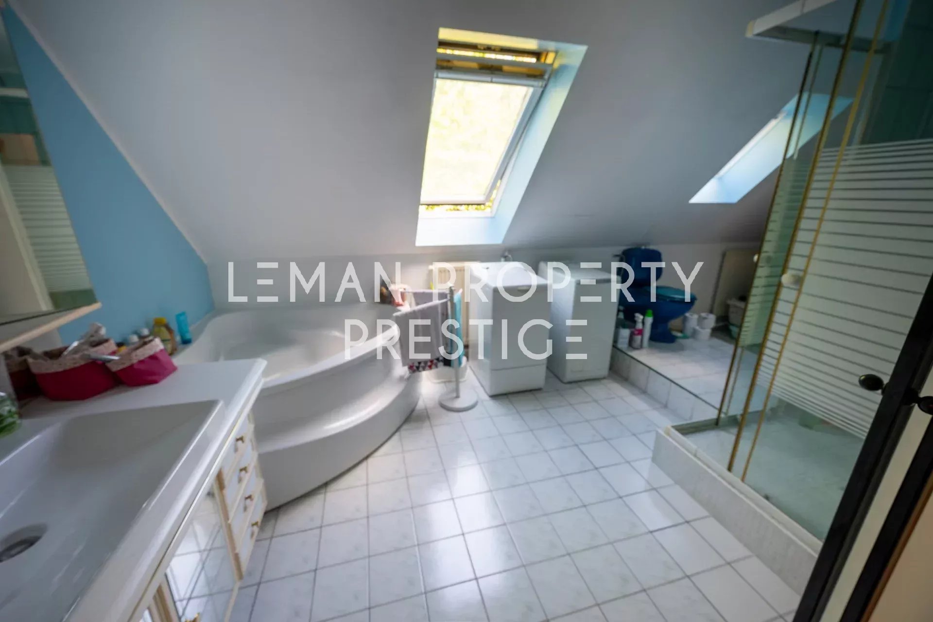 Un garage double carrelé, directement accessible depuis la cuisine, complète ce bien aux prestations fonctionnelles et soignées.