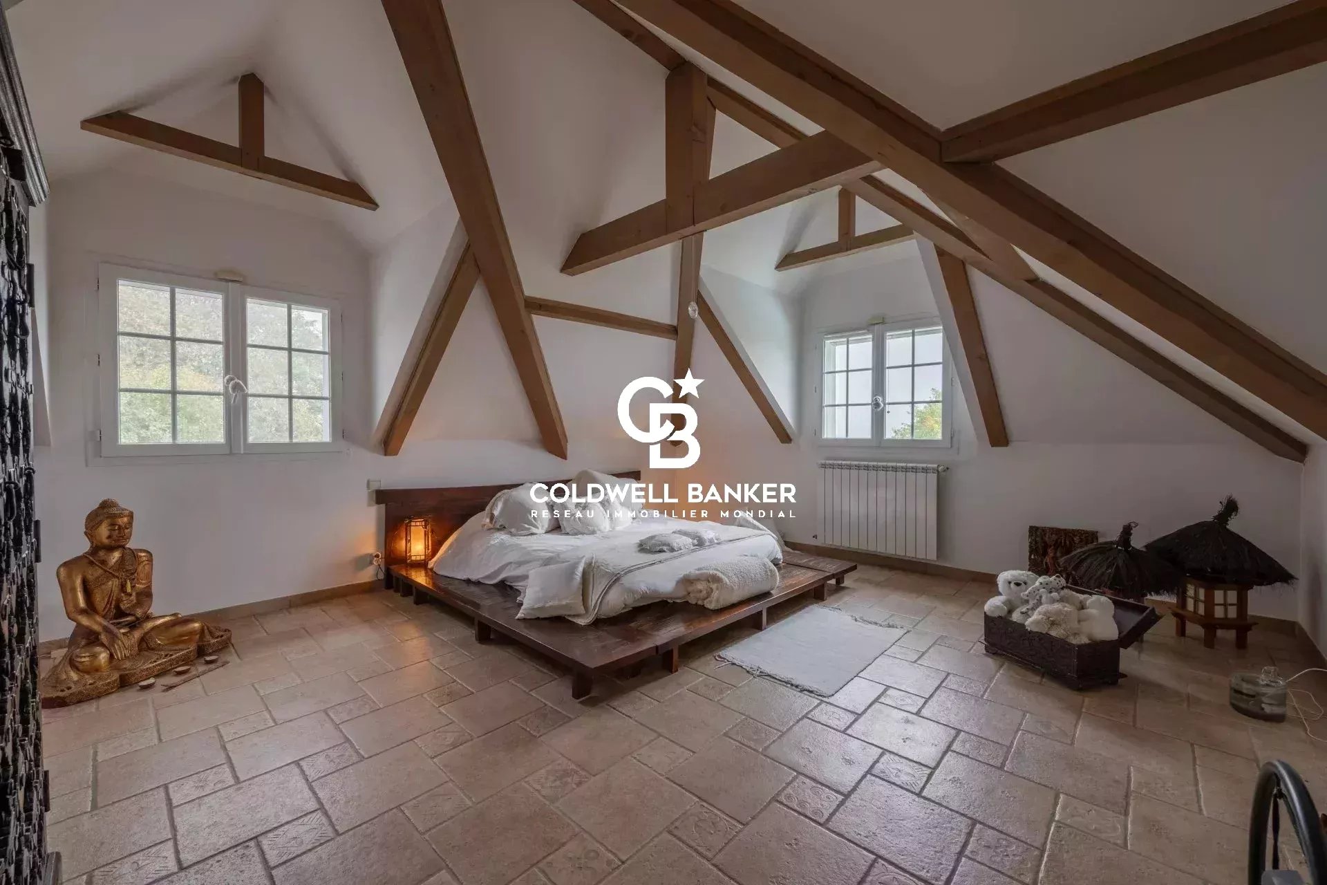 Imaginez une magnifique maison de 313 m² sur une parcelle de 2871 m² située dans un cadre idyllique, à proximité du golf de Mornex. Dès l'extérieur, le grand jardin impeccablement entretenu invite à la détente avec ses pelouses verdoyantes, ses parterres de fleurs colorées, et des arbres soigneusement taillés, offrant une atmosphère de tranquillité. En entrant, le vaste séjour baigné de lumière s'ouvre devant vous avec ses baies vitrées qui donnent sur la terrasse et une véranda et offrent une vue imprenable sur les montagnes environnantes. Au centre de cette pièce, une belle cheminée ajoute une touche chaleureuse et élégante à l'espace. La maison dispose d'une suite parentale spacieuse avec des poutres apparentes, ainsi que de 2 chambres confortables. Une salle d'eau et une charmante mezzanine avec un poêle complète cet espace nuit. Au sous-sol un espace dédié au bien-être et au sport : un sauna, un bain à vapeur, ainsi qu'une salle de sport. Il dispose également d'une grande pièce supplémentaire pouvant être un atelier, une buanderie, une cave à vin et la chaufferie. À l'extérieur, la grande terrasse et sa piscine chauffée deviennent un lieu de convivialité avec une vue époustouflante vue sur les montagnes. Un appartement autonome de 30 m² peut accueillir des invités ou offrir un espace privé pour d'autres usages. Cette demeure, avec ses prestations de qualité et son emplacement privilégié proche de la frontière suisse, incarne le luxe et le confort en harmonie avec la nature. Pour obtenir des informations détaillées sur les risques auxquels ce bien est exposé, veuillez consulter le site Géorisques : www.georisques.gouv.fr.