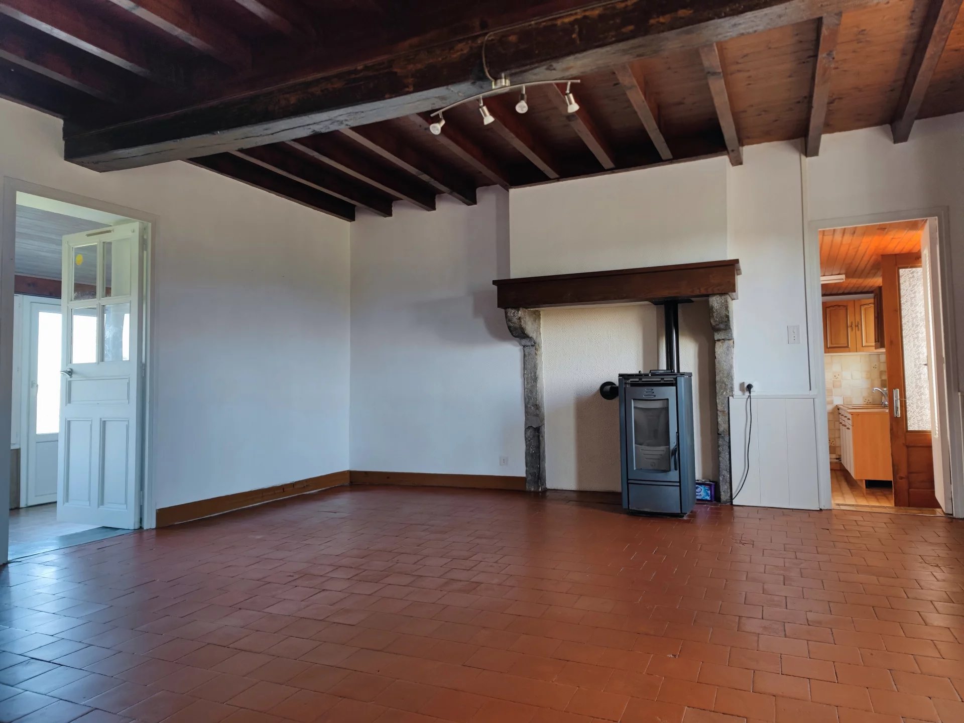 La maison se compose d’une partie habitable de 72m2 avec un beau séjour de 25m2 avec poêle à granulés, suivie de deux chambres, d’une cuisine, d’une salle d’eau et d’un WC. Un espace véranda est également présent donnant sur le jardin à l’arrière. Dans le prolongement de la maison, vous pourrez profiter de diverses dépendances avec un vaste grenier au-dessus offrant un très beau potentiel de rénovation.