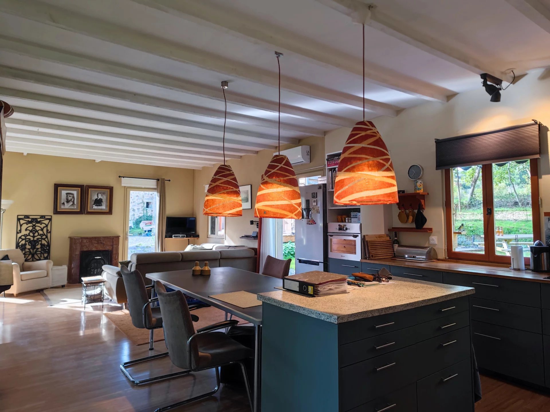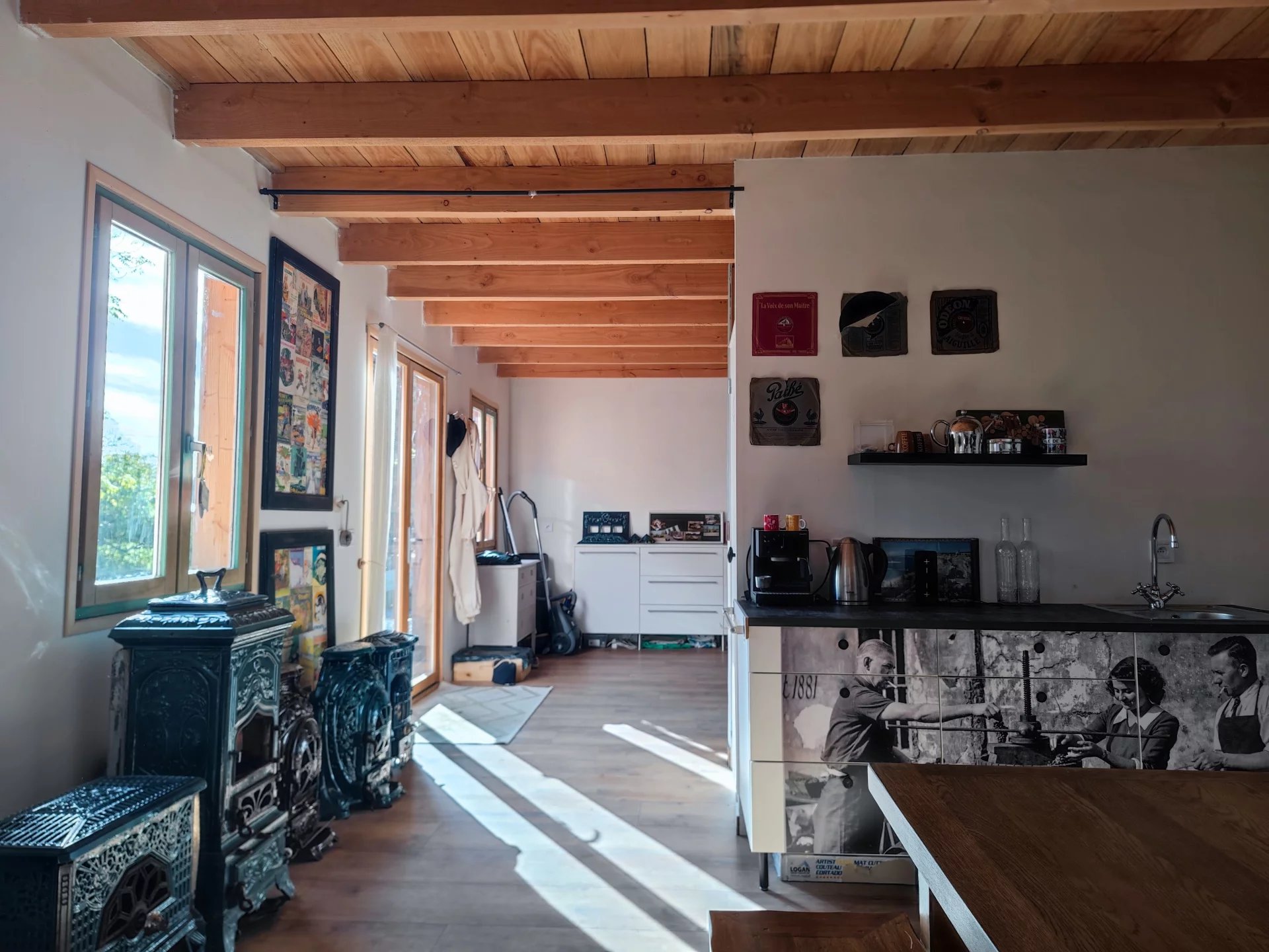 La maison principale, d’une superficie habitable de 94m2 est entièrement de plain-pieds. Elle se compose d’une entrée desservant une vaste pièce de vie de 60m2 accueillant une belle cuisine entièrement équipée et ouverte sur le séjour. Dans le prolongement, vous trouverez une chambre, une salle d’eau ainsi qu’un WC indépendant. L’ensemble bénéficie de nombreuses ouvertures pour un rendu très lumineux. Un grand grenier de 45m2 est également présent pour un potentiel agrandissement.