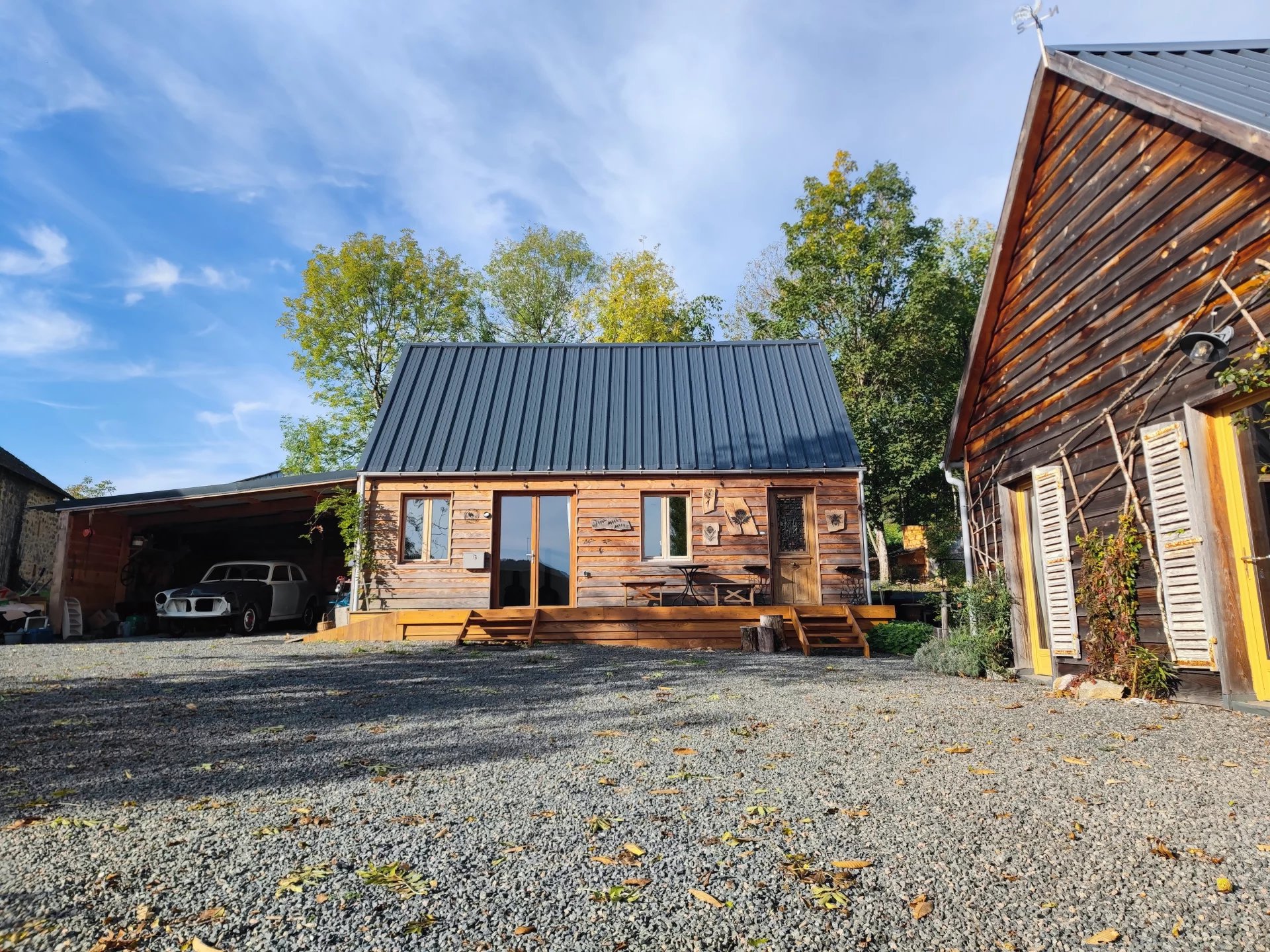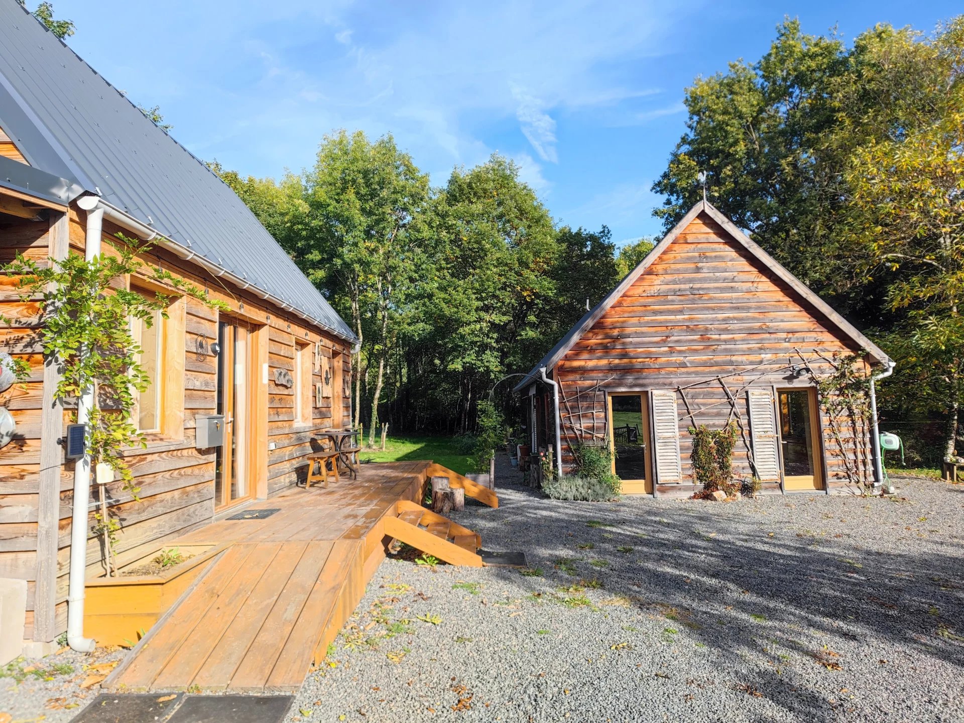 Ensemble immobilier composé de deux maisons en bois récemment construites. Cette belle propriété est située au cœur du Morvan, dans un petit lieu-dit de la commune de Villapourçon.