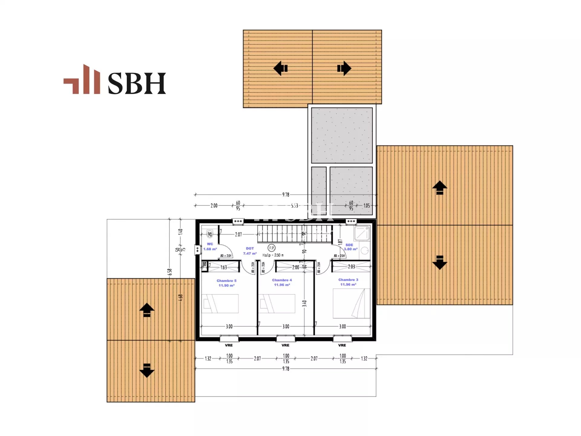 Dans sa continuité, une suite parentale confortable offre un espace nuit intimiste avec accès direct à la terrasse. À l’étage, trois chambres supplémentaires partagent une salle d’eau et des toilettes indépendants.