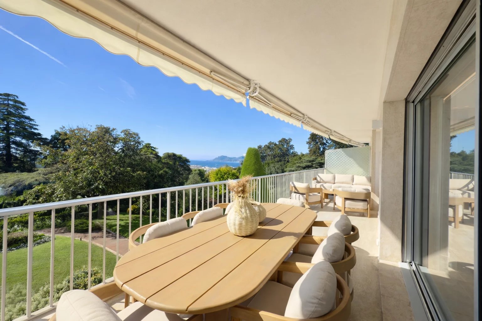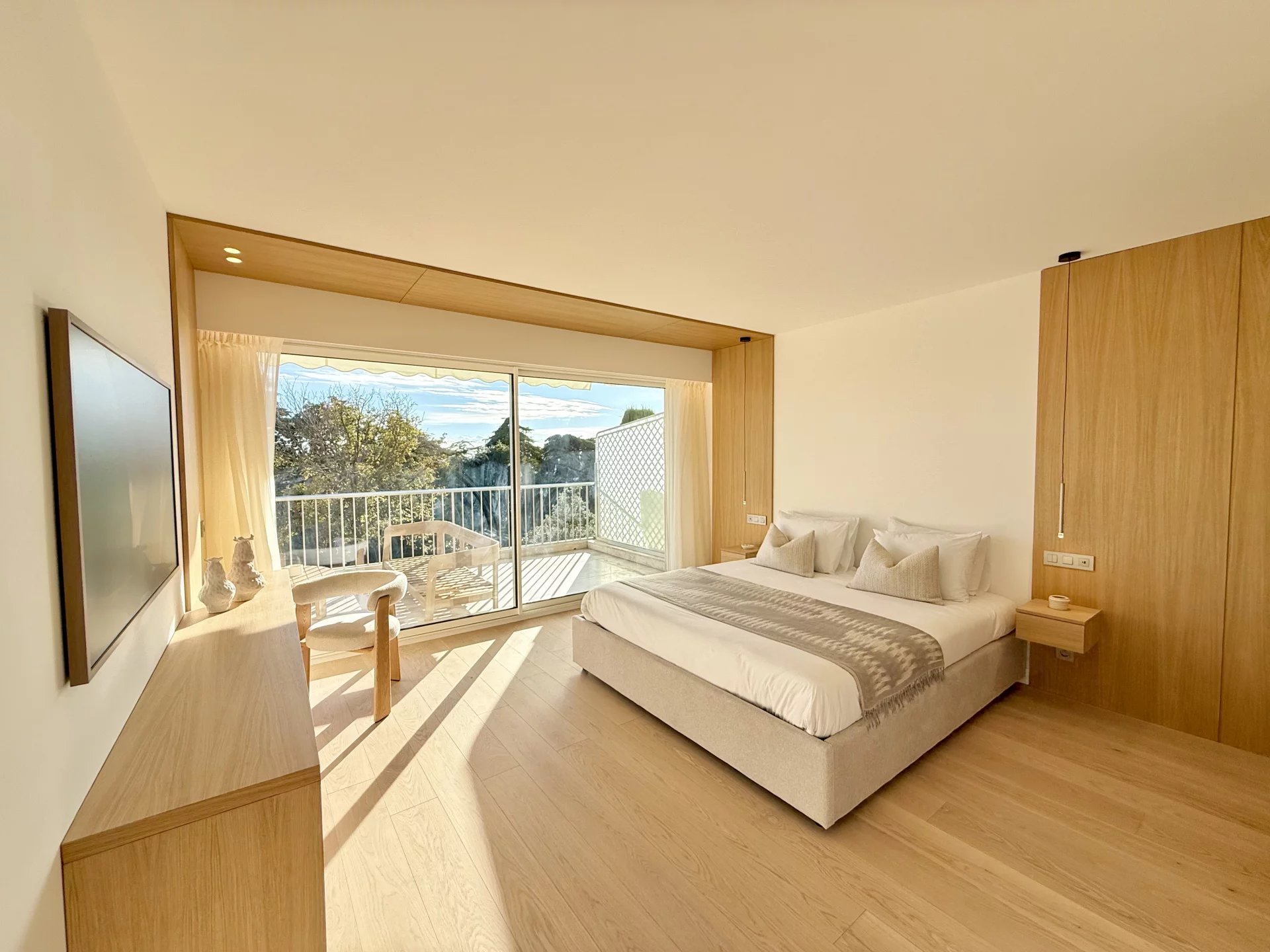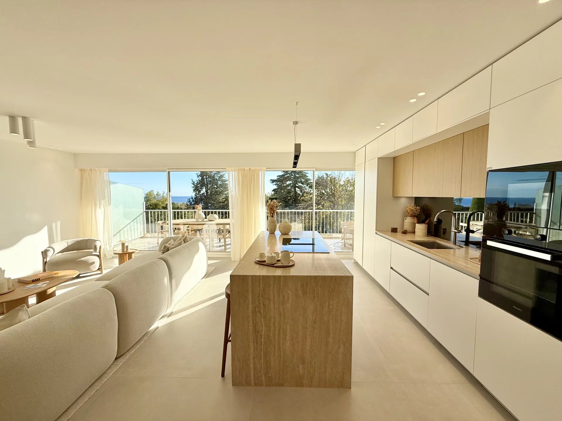 Exclusivité ! Au cœur du quartier Californie, sur la prestigieuse avenue du Roi Albert, dans la plus belle résidence de Cannes, classée monument historique, C’est dans ce cadre unique qu’est proposé ce somptueux 4 pièces de 131,08 m², entièrement rénové avec des prestations de très grande qualité. Chaque détail de cet appartement a été conçu pour offrir un confort absolu et un raffinement incomparable. Les matériaux de standing, les finitions haut de gamme et le mobilier tout équipé et luxueux créent une atmosphère où élégance et sophistication se rencontrent à chaque espace. L’appartement s’ouvre sur une grande pièce à vivre somptueuse et luxueuse, baignée de lumière naturelle grâce à de larges baies vitrées offrant une vue spectaculaire sur la mer et le parc. Cette pièce exceptionnelle intègre une cuisine sur mesure entièrement équipée, conçue avec des matériaux nobles et pierres précieuses, alliant fonctionnalité, confort et raffinement absolu. L’appartement comprend trois chambres en suite, chacune dotée de sa salle de bain privative, un dressing sur mesure entièrement équipé, ainsi qu’une buanderie pratique et raffinée, garantissant un confort optimal au quotidien. Les larges ouvertures offrent une vue spectaculaire sur la mer et le parc, baignant l’espace de lumière naturelle et mettant en valeur la qualité des matériaux et le soin apporté à chaque détail. Un grand garage et une cave, offrant un cadre de vie complet et privilégié