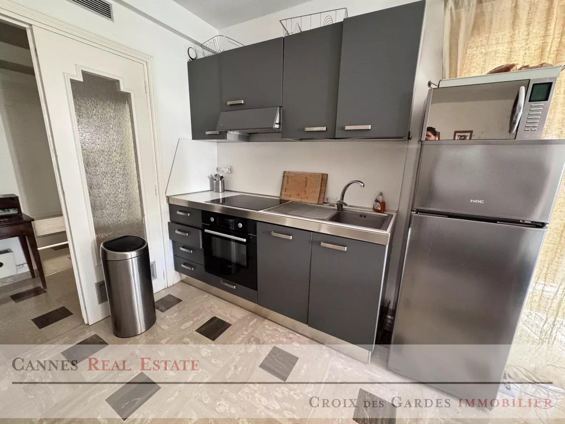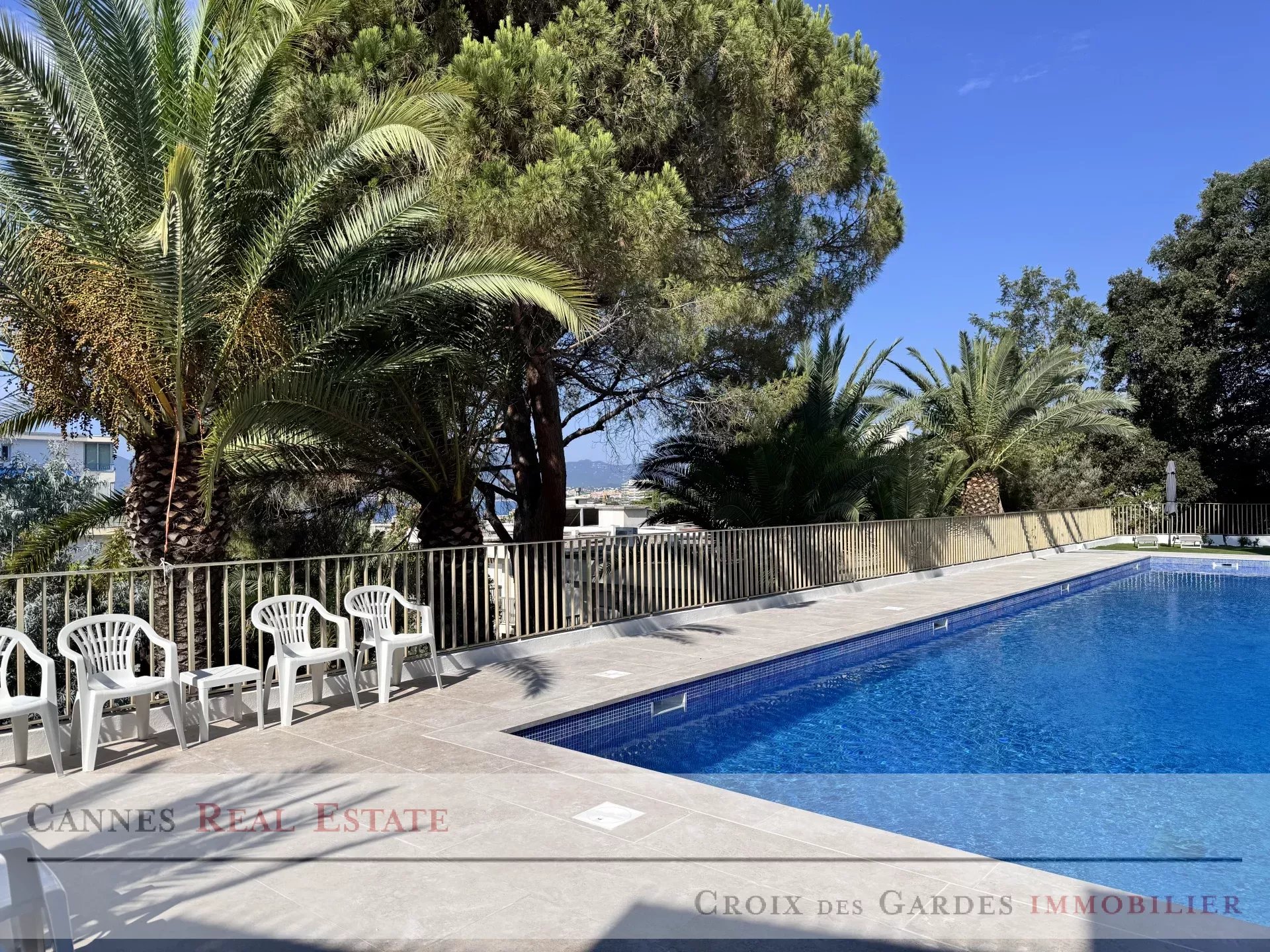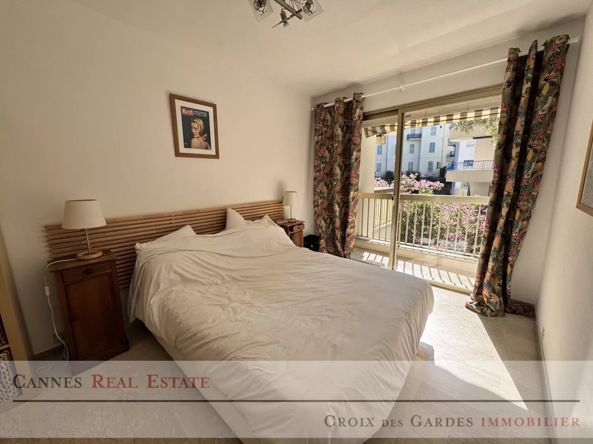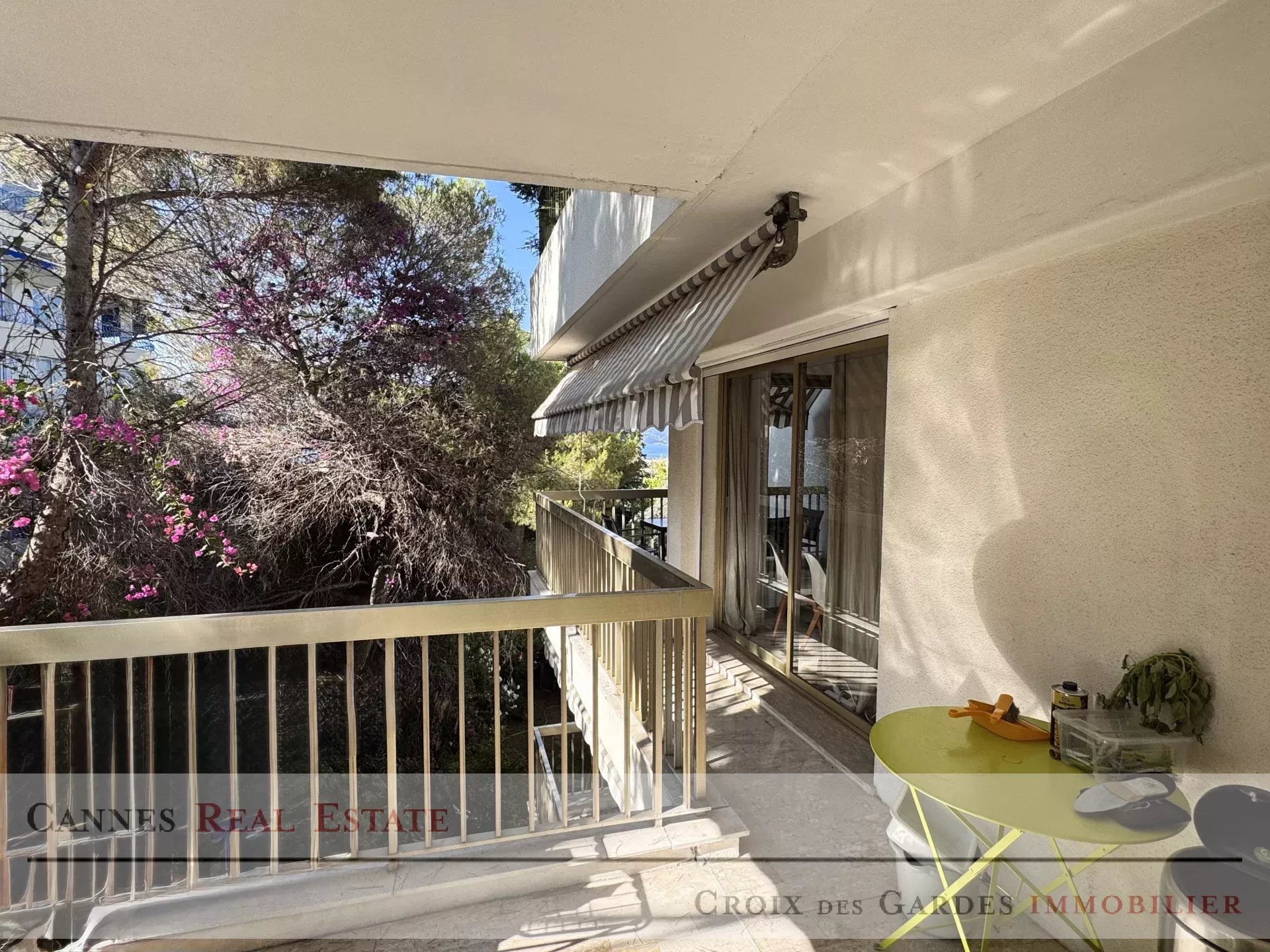 Cannes, secteur Croix des Gardes, plages du midi, à louer, 3 pièces de 52,92m2 meublé, comprenant une entrée, un séjour avec cuisine équipée donnant sur une terrasse, une chambre avec lit double et sa salle de bains, une seconde chambre plus petite, et un wc séparé. Vous profiterez d'une terrasse de plus de 20m2 accessible depuis toutes les pièces de l'appartement.