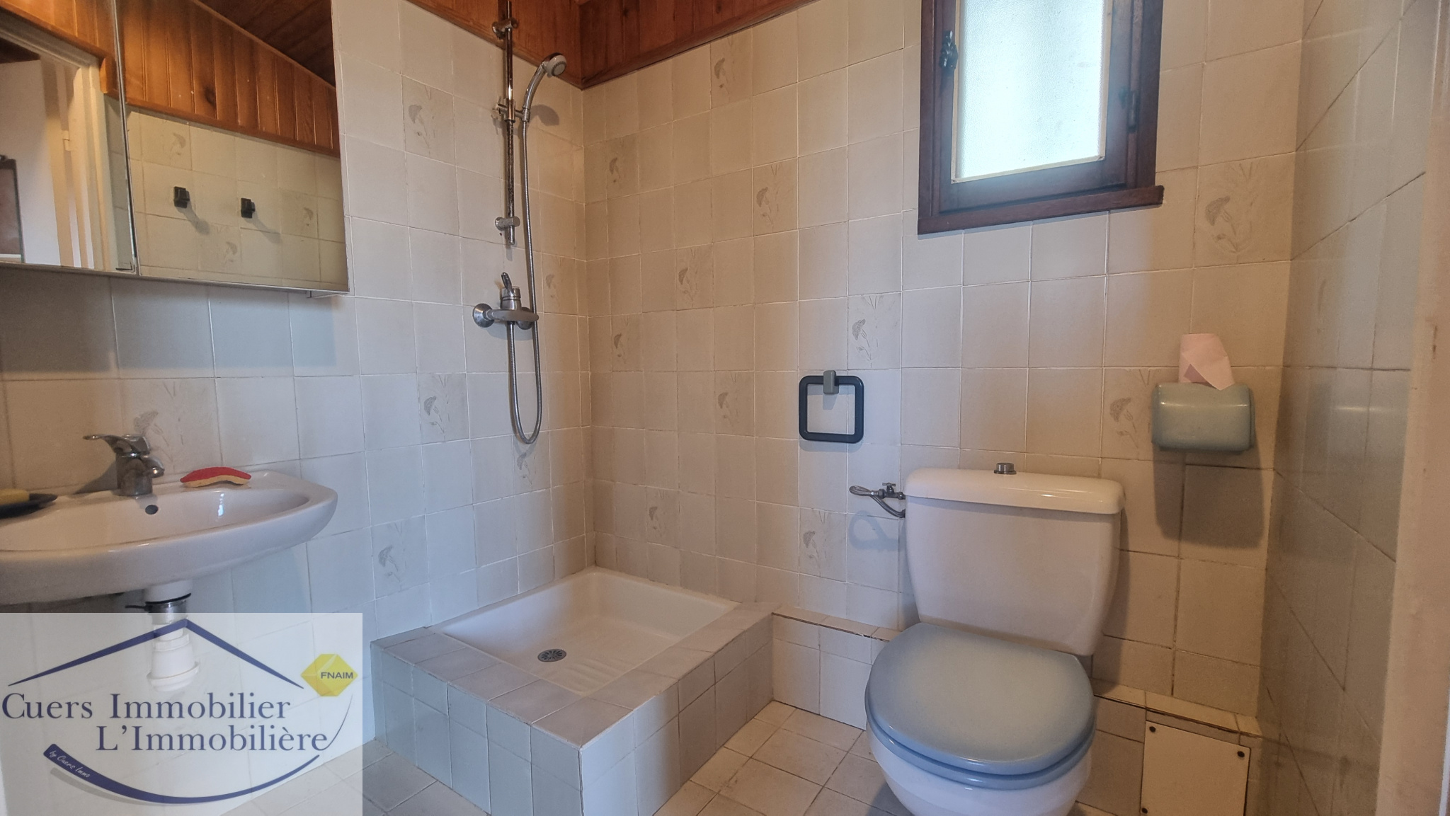 Idéale pour un peu d'intimité pour les parents ou un ado, à l'étage, une chambre avec placard, SDE et WC, terrasse solarium d'environ 12m2.