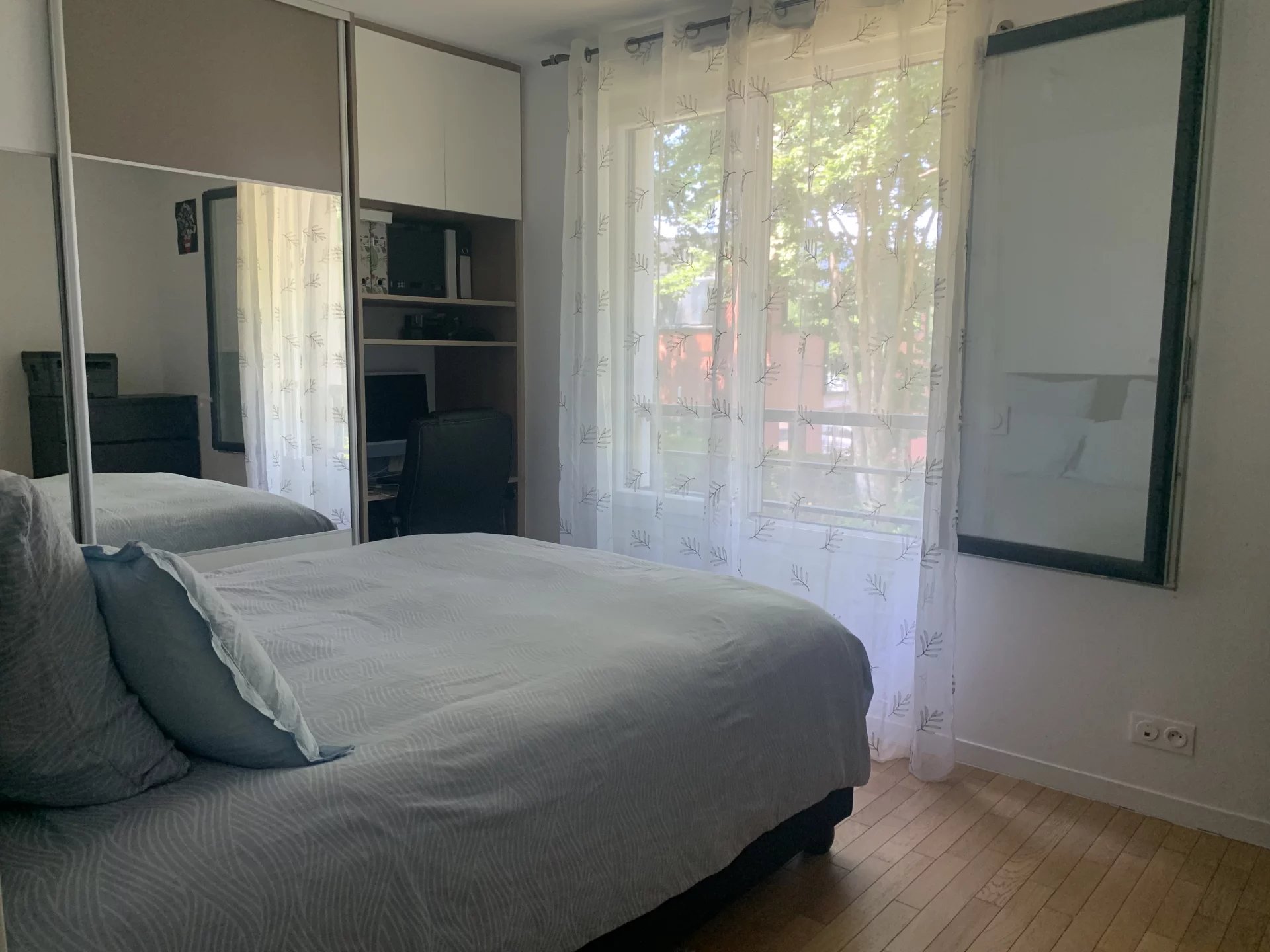 Il se compose d’une entrée, d’une cuisine équipée ouverte sur séjour, d’une chambre avec placard, d’un dégagement avec placard desservant deux autres chambres, d’une salle de bains aménagée et de WC séparés.