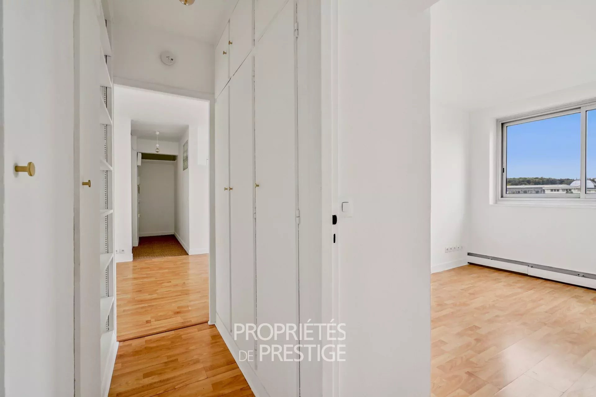 Situé au 8ème étage, exposition ouest, sans vis à vis, il offre une superbe vue dégagée sur le parc de Saint-Cloud.