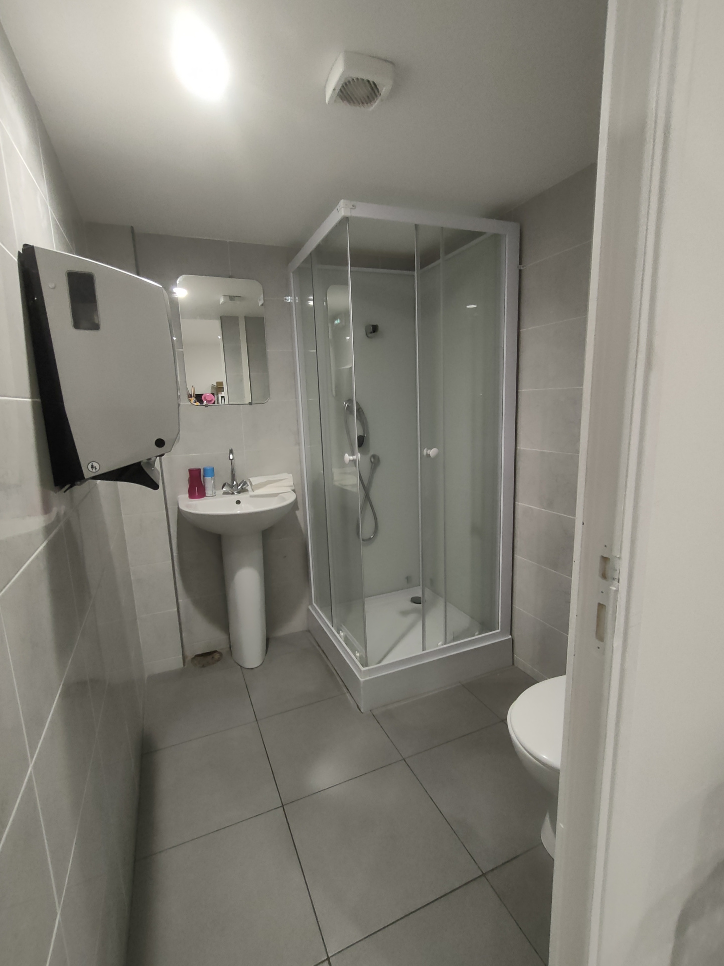 Il est équipé d'une salle de bain avec douche, lavabo et WC.