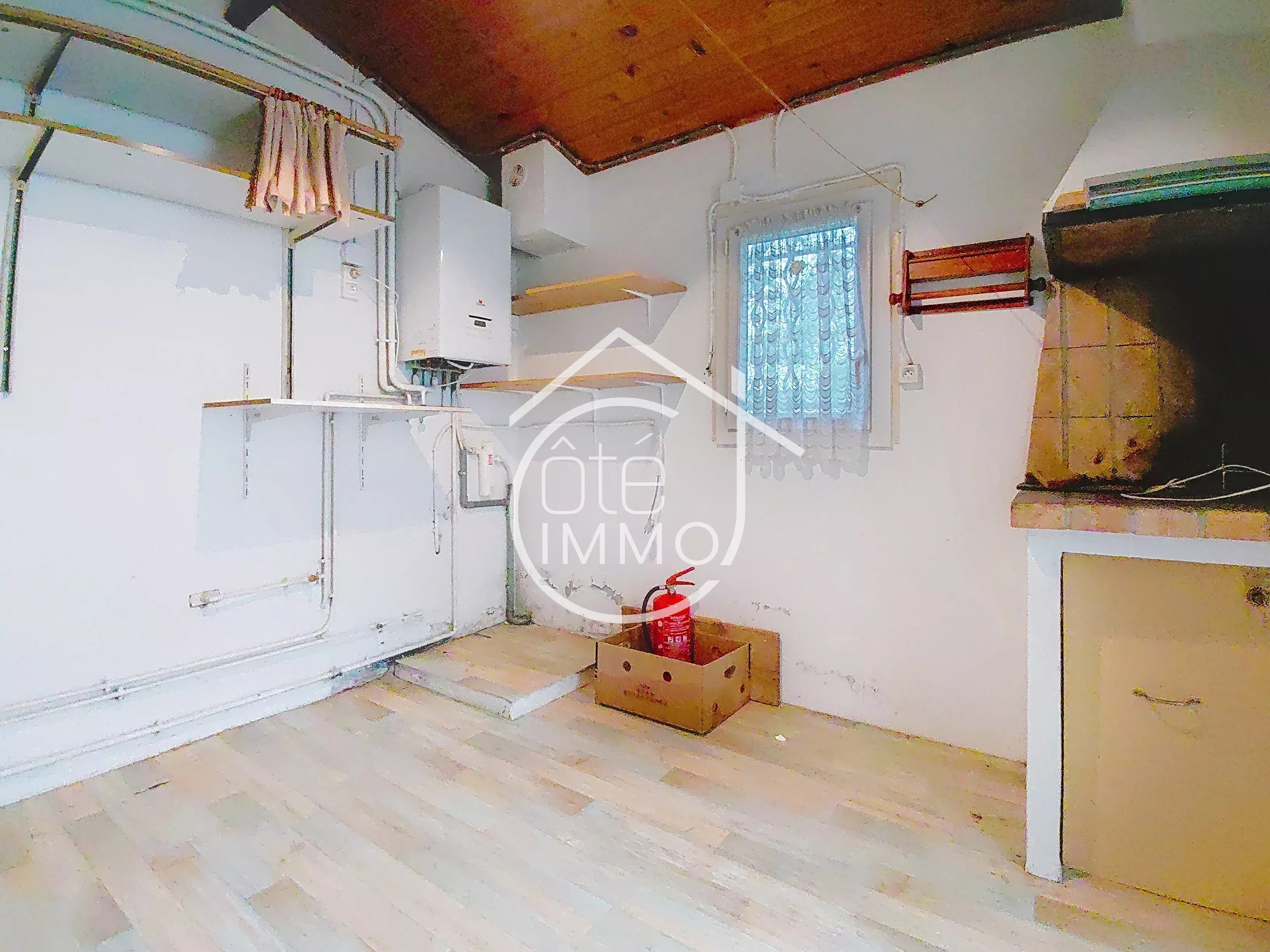 Côté confort, la maison est équipée du tout-à-l’égout conforme, du gaz de ville avec chaudière à condensation, du double vitrage, ainsi que de volets roulants et bois.