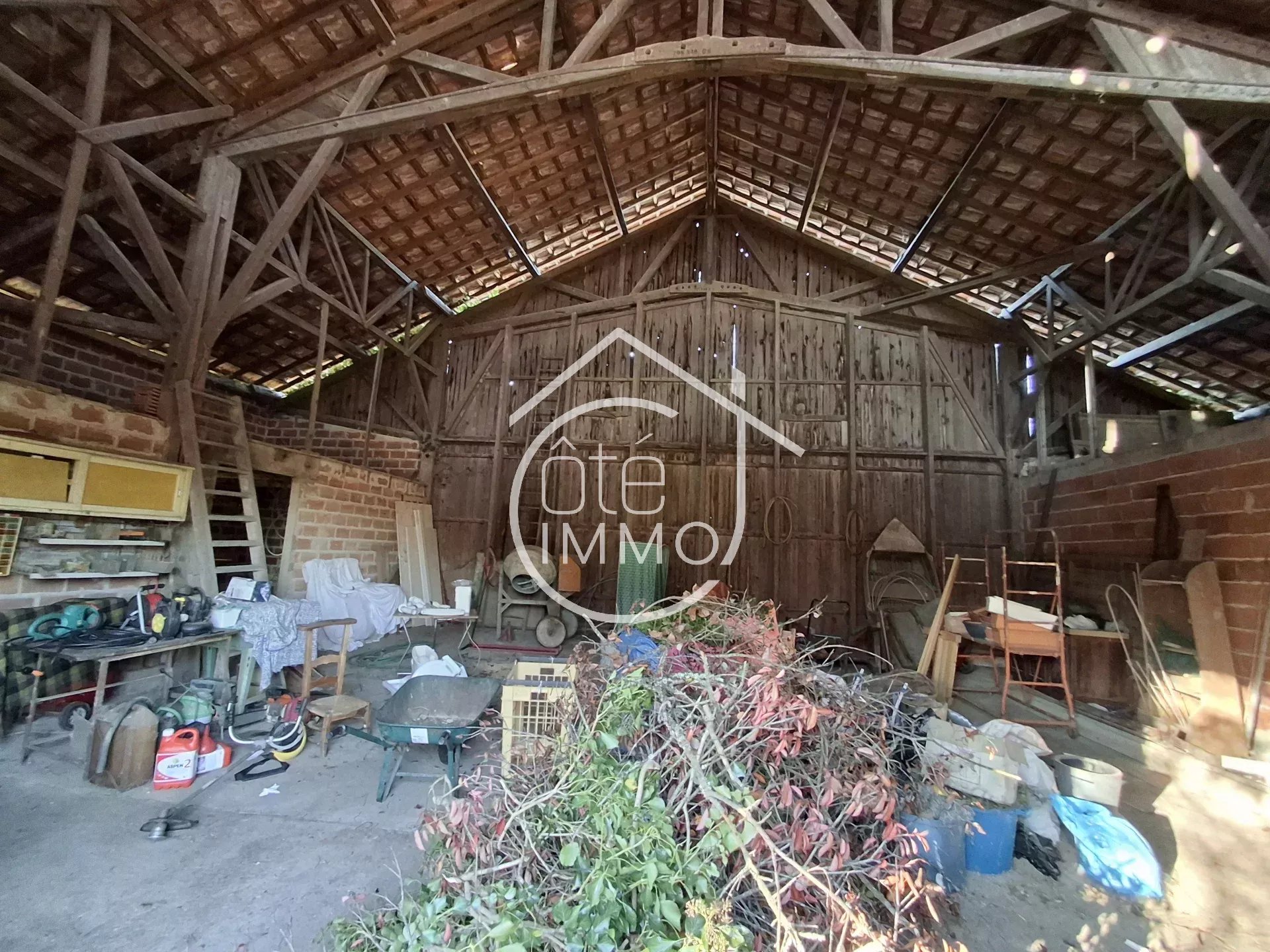Côté Immo PRIGONRIEUX vous invite à découvrir cette propriété empreinte de charme et de caractère, située dans un environnement calme et paisible. Située à deux pas du centre-ville de Mouleydier et de Cours-de-Pile, elle bénéficie d'une localisation idéale pour tous ceux en quete d'un projet immobilier plein de charme. Cette propriete comprenant une maison d'habitation principale de 121, une longere de 75m2, une grange et un sechoir a tabac offre de tres belles perspectives d'evolution avec de nombreuses possibilites d'amenagement , ideal pour des acquereurs souhaitant developper une activite touristique, professionelle ou artisanale. D’une superficie de 121m², l'habitation principale comprend : Une cuisine de 15m² avec cheminée s'ouvrant sur une véranda de 9m² offrant une vue plongeante sur le jardin, un spacieux salon/salle avecpoutres apparentes, ses boiseries et son imposante cheminée. Côté nuit, la maison dispose de trois chambres aux volumes généreux comprises entre 19m² et 20m². Une salle de bains fonctionnelle de 5,6m² vient compléter l'ensemble. Situé sur la propriété, un séchoir à tabac d'une superficie de 150m², une grange de 100m2 avec mezzanine amenageable de 95m2, ainsi qu'une longere de 72m2 amenagee avec entree, sejour de 19m2, une cuisine de 12m2, 3 chambres d'environ 10m2, salle d'eau, garage attenant et combles amenageable. L'ensemble offre un beau potentiel d'évolution avec de nombreuses possibilités d'aménagement, idéal pour des acquéreurs souhaitant développer une activité touristique, professionnelle voire artisanale. Cette propriété dispose d'un vaste jardin arboré qui invite à la relaxation avec sa belle vue dégagée sur la campagne environnante et ses alentours. Ce bien saura séduire les amateurs de charmes authentiques et de volumes généreux. Ne manquez pas l'opportunité de venir le découvrir. Points techniques : - Chauffage par chaudière au fioul - Simple vitrage - Tout à l'égout