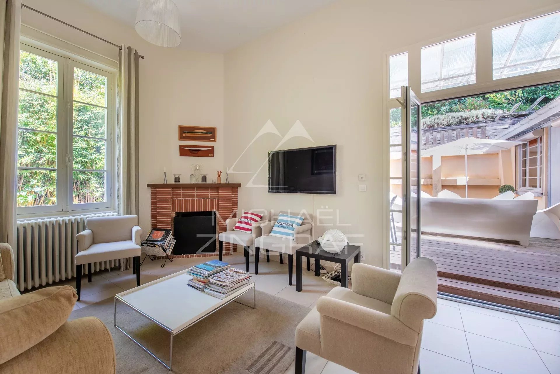 Michaël Zingraf Real Esate vous présente cette nouveauté: Située dans l’un des secteurs les plus recherchés du Bassin, cette maison de plain-pied mêle charme local et confort moderne. À quelques minutes à pied du centre-ville et de la plage, elle offre une qualité de vie rare dans un environnement privilégié. L’intérieur dévoile une pièce de vie traversante, baignée de lumière, qui s’articule autour d’un salon spacieux et d’une cuisine ouverte à l’esthétique contemporaine. La transition avec l’extérieur se fait naturellement grâce à une large terrasse boisée, idéale pour les repas en plein air ou les moments de repos à l’ombre des pins. La partie nuit propose quatre chambres bien agencées, ainsi que deux salles d’eau et des toilettes séparées, pour une organisation fluide du quotidien. En fond de parcelle, une annexe indépendante accueille un espace bien-être avec jacuzzi, salle d’eau, WC et couchage en mezzanine — parfait pour héberger famille ou amis en toute autonomie. Le jardin paysager, orienté est/ouest, procure calme et intimité sur une parcelle de plus de 500 m². Deux places de stationnement privées et un local à vélos viennent parfaire les prestations de cette maison où chaque détail a été pensé pour une vie douce et sereine à Arcachon.