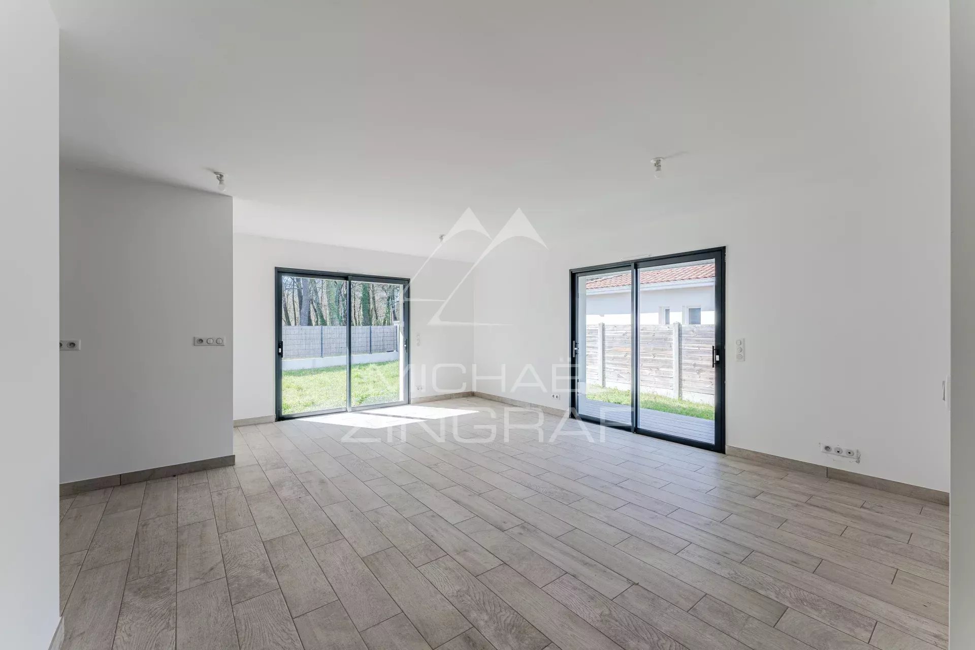 Michael Zingraf Real Estate présente cette maison située à La Teste-de-Buch, offrant 100 m² habitables sur une parcelle de 400 m². Fonctionnelle et bien agencée, elle dispose de trois chambres, d’un salon de 30 m² ouvert sur le jardin, d’une cuisine attenante et de deux salles d’eau. Le garage complète l’ensemble.