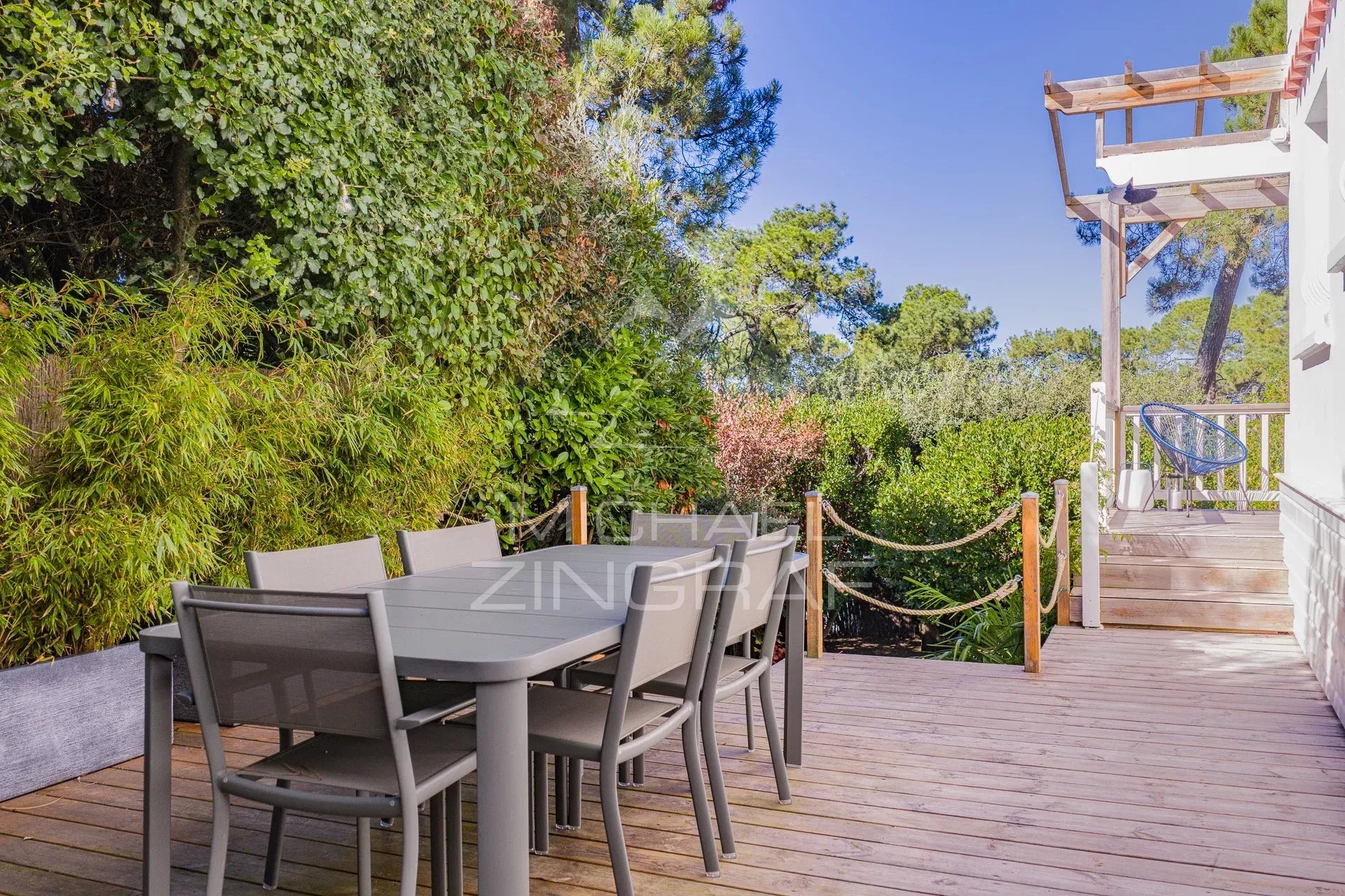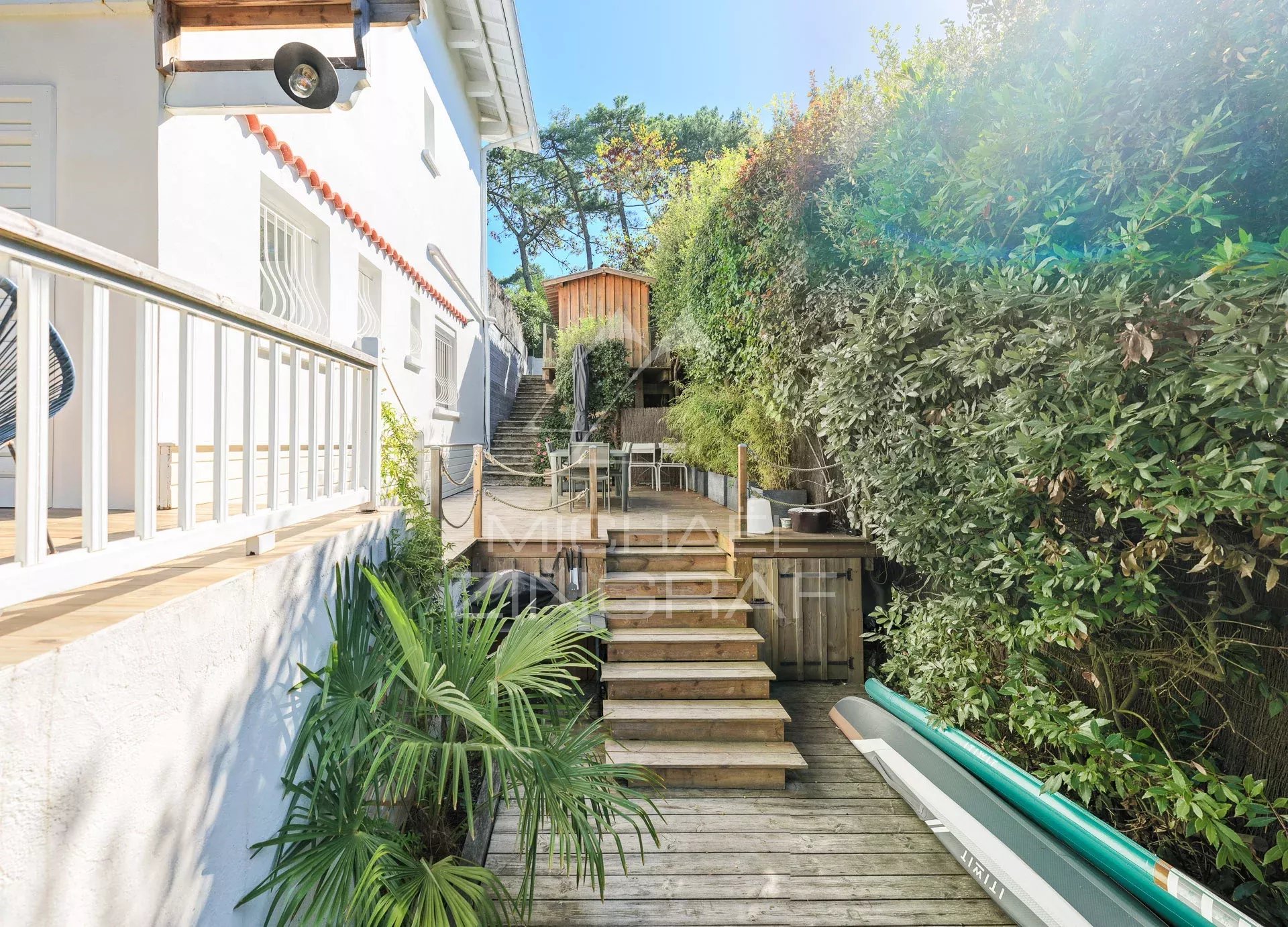 Michaël Zingraf Real Estate vous propose à la vente ce nouveau bien: Située dans le quartier du Cercle de Voile, découvrez cette maison mitoyenne pleine de charme, idéale pour profiter de la douceur de vivre du Bassin d’Arcachon. D’une surface d’environ 59 m², elle offre une distribution parfaitement optimisée : un séjour et salon lumineux ouvert sur le jardin, une cuisine fonctionnelle, deux chambres confortables et une salle d’eau. À l’extérieur, le plaisir se prolonge avec un jardin paysager d’environ 300 m², sans vis-à-vis, où l’on profite pleinement du calme et de la verdure. Vous y trouverez une terrasse couverte pour les repas d’été, ainsi qu’une terrasse ensoleillée pour les après-midis farniente. Un abri de jardin permet de ranger aisément les vélos — parfaits pour rejoindre en quelques minutes le Moulleau déguster une glace, ou longer le bord du bassin lors de belles balades. Les atouts : Maison facile à vivre, sans entretien particulier Ambiance paisible et environnement verdoyant Situation privilégiée, à deux pas du Bassin Idéale en résidence secondaire ou principale Un bien où l’on pose ses valises et où les vacances commencent aussitôt. Coup de cœur assuré pour les amoureux du Pyla et du Bassin d’Arcachon !