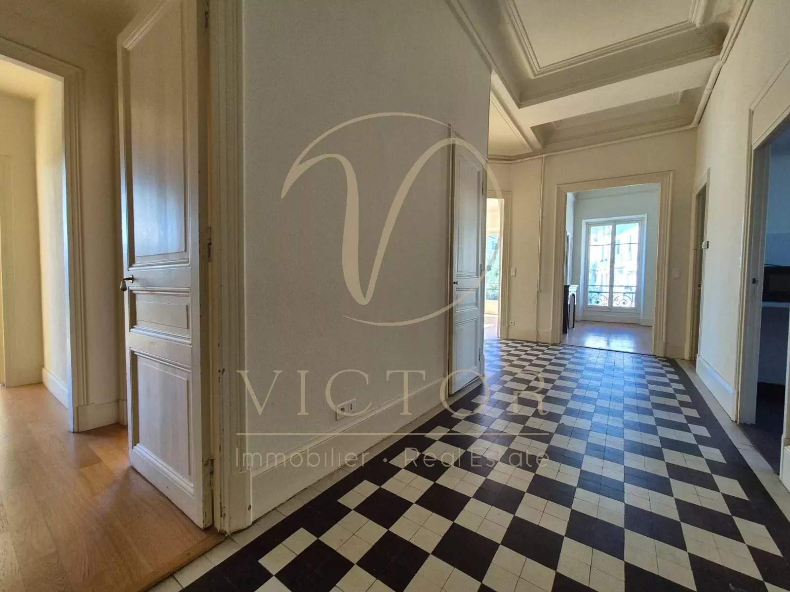Nice || Rue D'Angleterre || Paul Déroulède Appartement de type 6 pièces || Bourgeois Derrière le Boulevard Victor Hugo, proche des commerces, transports et restaurants, Dans un immeuble bien tenu, en avant dernier étage avec ascenseur, appartement de 170,46m2 se composant d'une entrée, d'un séjour avec cheminée, un salon, une cuisine indépendante, 4 chambres, 2 salles de douches, 2 toilettes. Fort potentiel. Belle hauteur sous plafond. Cheminées. Moulures. Une cave. Les honoraires sont à la charge du vendeur. Aucune procédure en cours (articles 29-1A/29-1 loi 65-557, L.615-6 du CCH) Bien en copropriété: Oui Les informations sur les risques auxquels ce bien est exposé sont disponibles sur le site Géorisques : georisques.gouv.fr