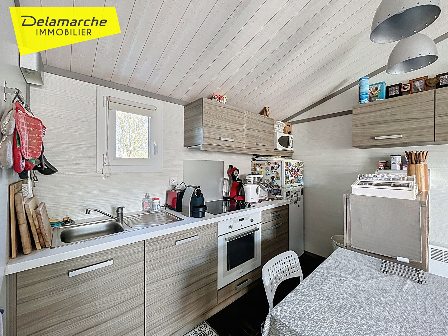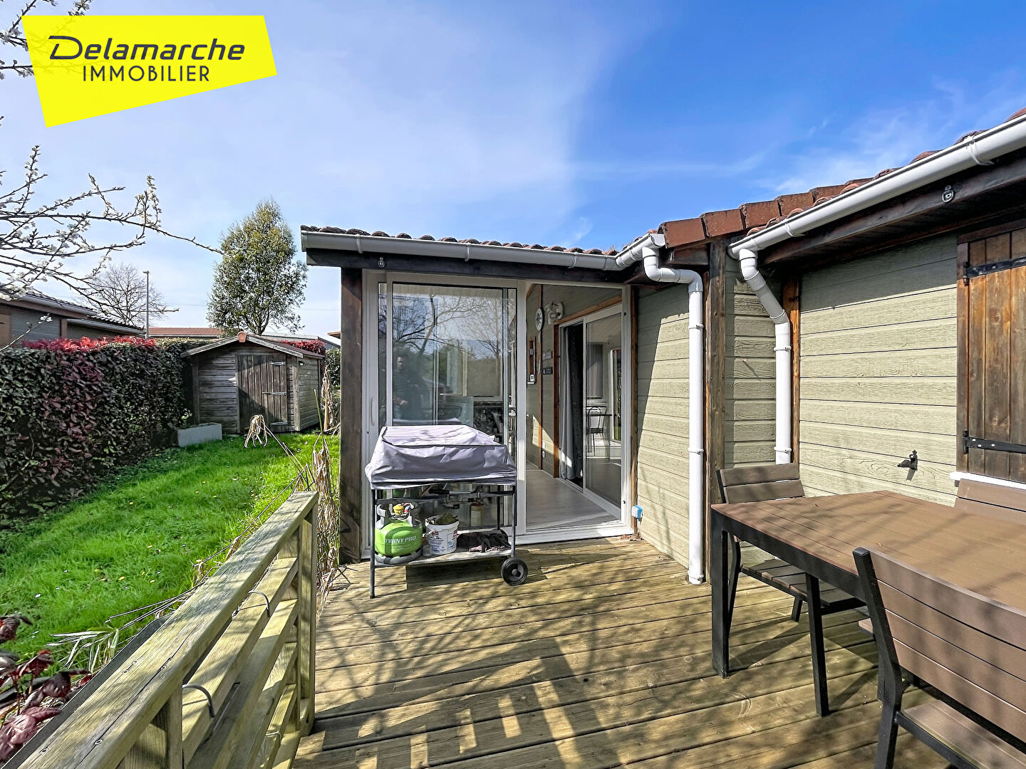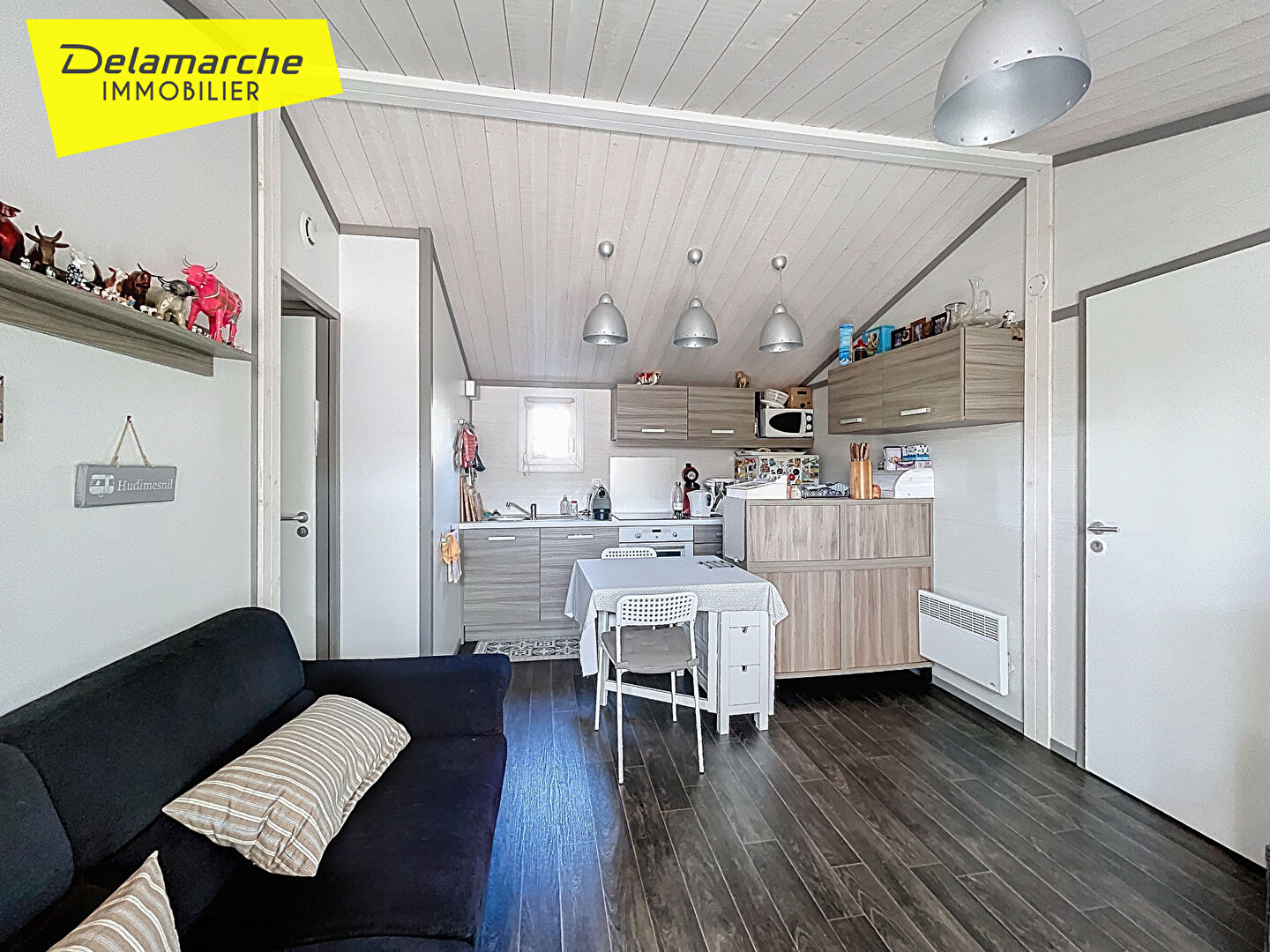 A vendre chez DELAMARCHE IMMOBILIER, Un joli chalet habitable à l'année, situé sur la commune d'HUDIMESNIL, dans un parc résidentiel de loisir "Camping des Iles *****", comprenant : Une véranda, avec accès à une terrasse, une pièce de vie composée d'un salon-séjour ouvert sur une cuisine aménagée et équipée, une suite parentale composée d'une chambre avec placard et une salle d'eau avec toilettes, dégagement desservant deux chambres avec petits placards, une salle d'eau et toilettes avec placard buanderie. Le chalet vendu meublé et équipé. Petite terrain paysagé avec un abri de jardin, et une place de stationnement. Loisirs du camping : -Deux piscines (couverte et chauffée et non couverte) avec des tobogans aquatiques, -Bar/restaurant, -Une épicerie, -Une laverie, -Un étang de pêche privé, -Une zone trampolines avec aire de jeux, -Un mini ferme -Terrains de pétanque. Charges annuelle du camping : 1972 euros par an (accès aux infrastructures et entretien des espaces verts dont les haies et tonte de la parcelle). Idéal un investissement locatif saisonnier. PRIX : 165000 euros Honoraires à la charge du vendeur. Classe énergie : D (237) Classe climat : B (7) Montant estimé des dépenses annuelles d'énergie pour un usage standard : entre 1040 euros et 1460 euros / an Date de référence des prix de l'énergie utilisés pour établir cette estimation : 01/01/2021 "Les informations sur les risques auxquels ce bien est exposé sont disponibles sur le site Géorisques : www.georisques.gouv.fr" Pour visiter : Agence DELAMARCHE IMMO.COM Aurélien Etard au 06.29.76.85.09