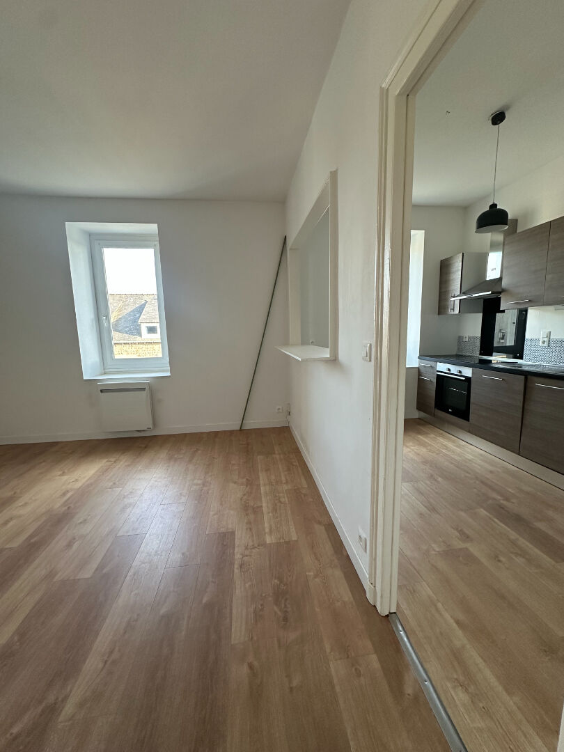 A LOUER SAINT-BRIEUC - GARE SNCF- Appartement de type II au 2ème étage sans ascenseur composé d'une pièce de vie avec cuisine aménagée/équipée (four, plaque, hotte, frigo), une chambre avec placard, une salle de douche avec WC. Chauffage électrique. Charges comprenant l'entretien des parties communes. LUMINEUX !