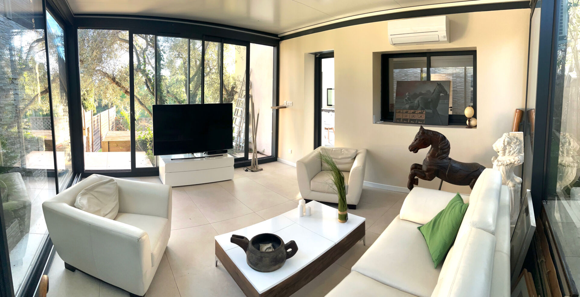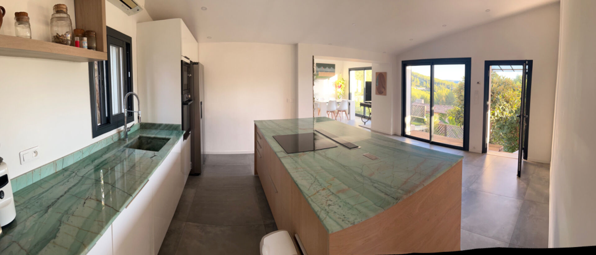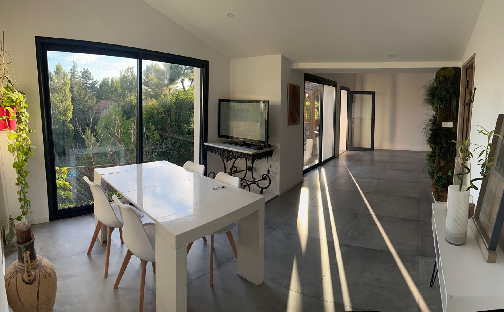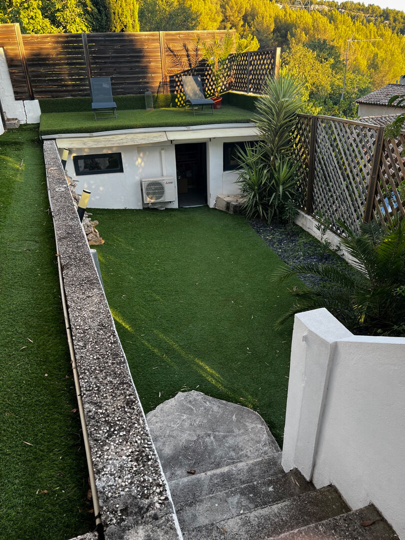 Maison T3/T4 La Treille En exclusivité, cette villa exposée plein sud vous séduira par sa vue imprenable sur la vallée ! Découvrez cette superbe maison d'environ 100 m2 sur une parcelle de 450 m2 située dans le quartier recherché de la Treille-Allauch. Elle se compose d'un séjour/cuisine contemporaine entièrement équipée de 39 m2, baignée de lumière grâce à de larges baies vitrées en aluminium, d'un grand salon de 19 m2 entièrement vitré. L'espace nuit offre deux chambres avec placard de 14 et 11 m2, d'une salle d'eau et toilettes. En complément de ce bien atypique une dépendance de 13 m2. Plusieurs coins détente et terrasses ont été aménagés sur deux niveaux : une terrasse en bois, abritée sous une tonnelle, et un peu plus bas une piscine chauffée. Les équipements sont de qualités : avec volets roulants électriques centralisés et climatisation réversible. Possibilités de stationner un véhicule à l'intérieur. Taxe foncière : 900 euros/an Diagnostics : classe énergétique C et classe climat A Yvette Espinos (EI) Agent Commercial - Numéro RSAC : - .