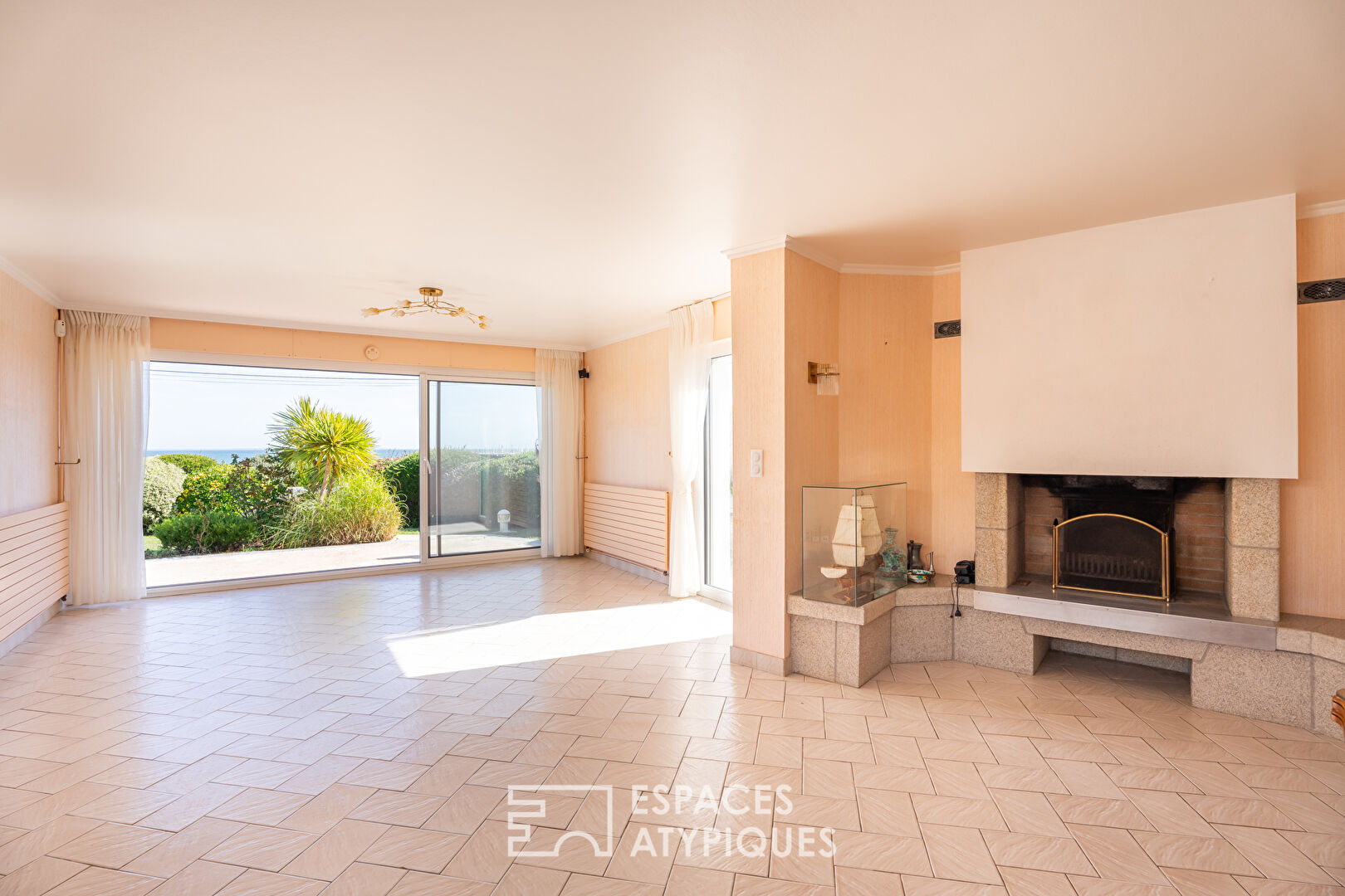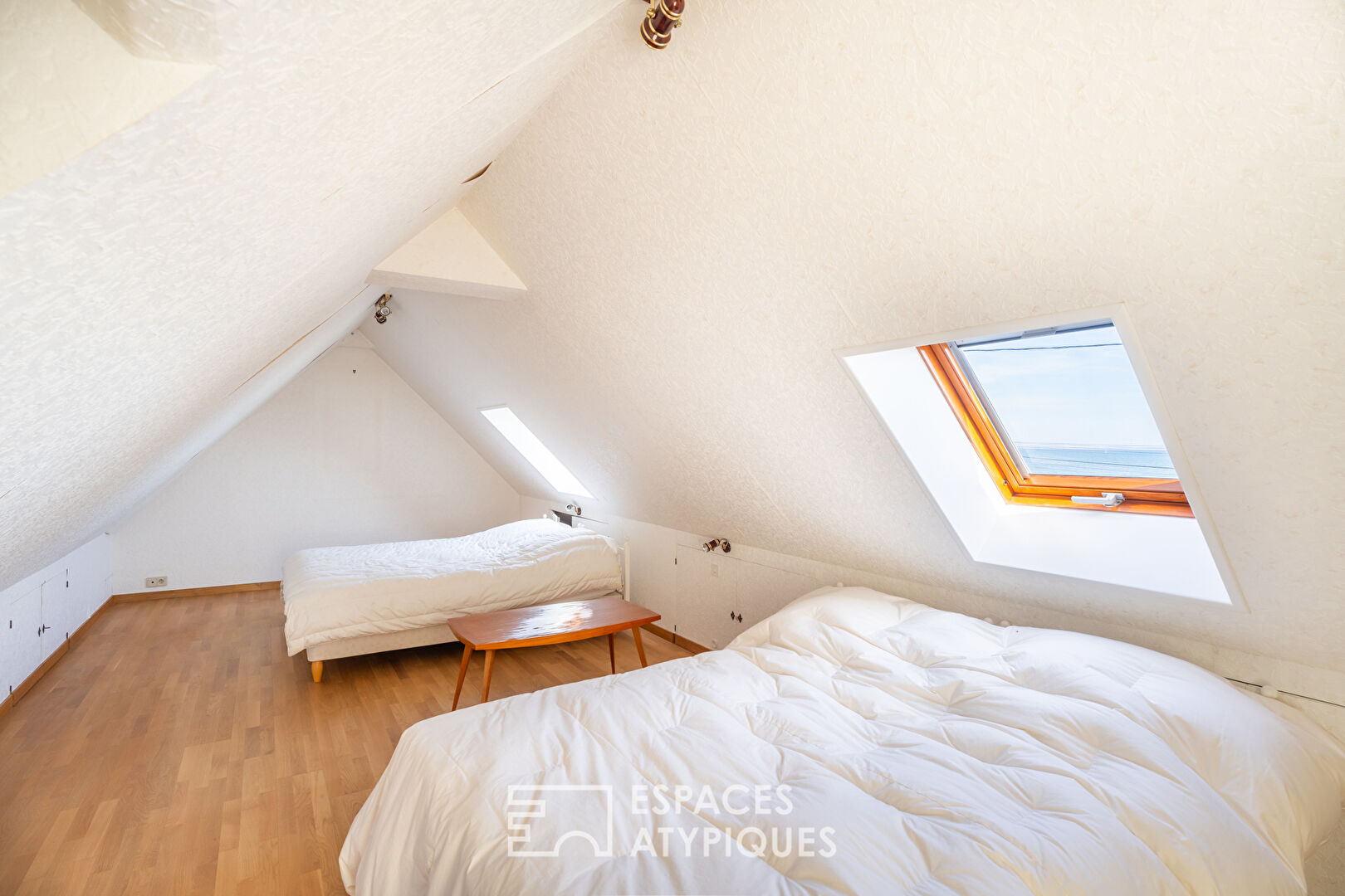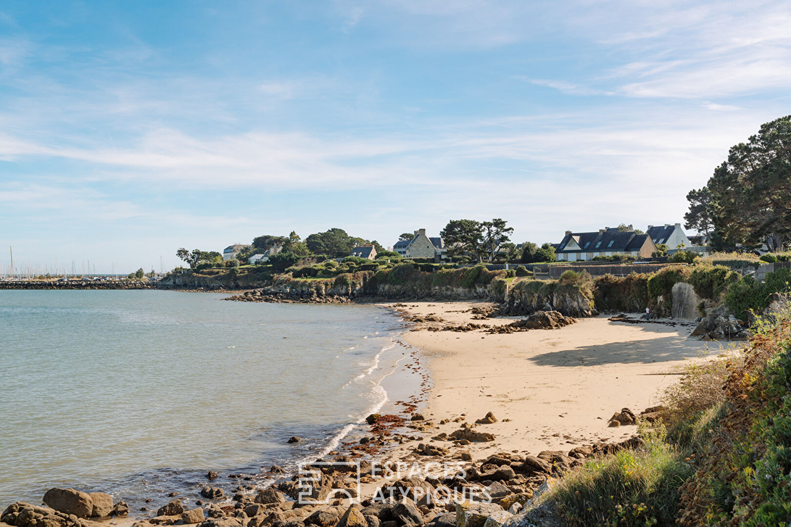 L'excellence de l'immobilier atypique se découvre sur la presqu'île de Quiberon. Cette maison face mer de 160 m² s'érige sur un terrain clos de 903 m², un véritable bien d'exception en première ligne. Le portillon côté Est offre un accès direct aux plages situées à seulement 20 mètres, promettant une vie rythmée par les embruns et l'horizon. Les volumes intérieurs séduisent dès le rez-de-chaussée. La pièce de vie principale, baignée de lumière, est articulée autour d'un salon chaleureux rehaussé par un foyer ouvert en granit. Dans le prolongement, la salle à manger dévoile une grande baie vitrée offrant une vue majestueuse sur la mer et le ballet des voiliers. A ce niveau, on trouve également une cuisine équipée, une chambre, une salle d'eau et un WC, complétés par une lingerie et un atelier pratique. L'étage, caractérisé par son charme sous pente, accueille trois autres chambres, une salle d'eau et un WC, constituant l'espace nuit idéal pour une grande famille ou l'accueil d'hôtes. L'ensemble bénéficie d'une chaudière au gaz de ville récente (2022) . Les extérieurs sont un atout majeur de ce bien haut de gamme. Le jardin engazonné offre un espace de détente et de verdure en face de l'océan. La sérénité est palpable dans cet environnement soigné et très recherché. La toiture est en bon état, et la majorité des ouvertures ont été remplacées, assurant une bonne isolation et une luminosité optimale. L'assainissement a été contrôlé et est aux normes. Idéalement située , cette propriété permet de jouir d'un cadre de vie unique tout en restant proche des commodités de la ville. Cette maison face mer à Quiberon est une opportunité rare sur le marché de l'immobilier de prestige. Un coup de coeur se profile pour qui recherche un lieu de vie singulier, une adresse emblématique. L'équipe invite à découvrir tout le potentiel de cette demeure atypique et de son emplacement privilégié. DPE : CLASSE ÉNERGIE D CLASSE CLIMAT D Le montant moyen estimé des dépenses annuelles d'énergie pour un usage standard, établi à partir des prix moyens des énergies indexés sur les années 2021, 2022, 2023, se situe entre 2240 euros et 3090 euros. Les informations sur les risques auxquels ce bien est exposé sont disponibles sur le site Géorisques : www.georisques.gouv.fr. AURELIE TATARD 07 62 98 22 96 RSAC Vannes 803 683 606 Aurélie TATARD (EI) Agent Commercial - Numéro RSAC : 803683606 - vannes.