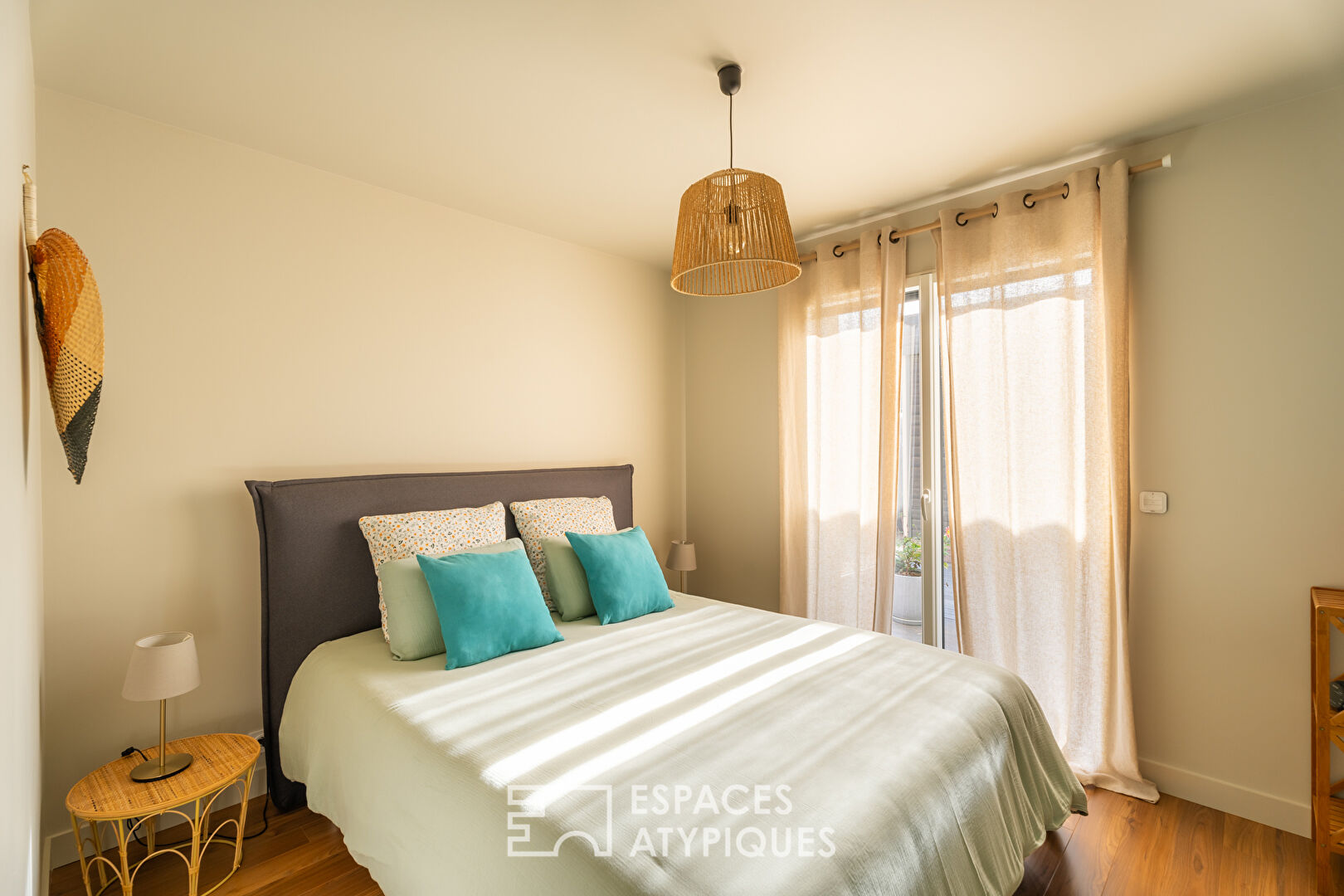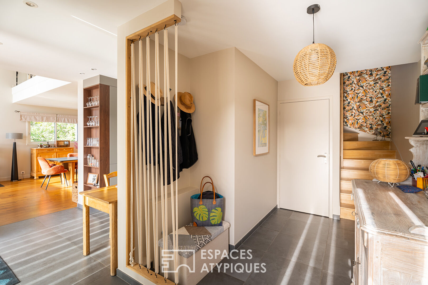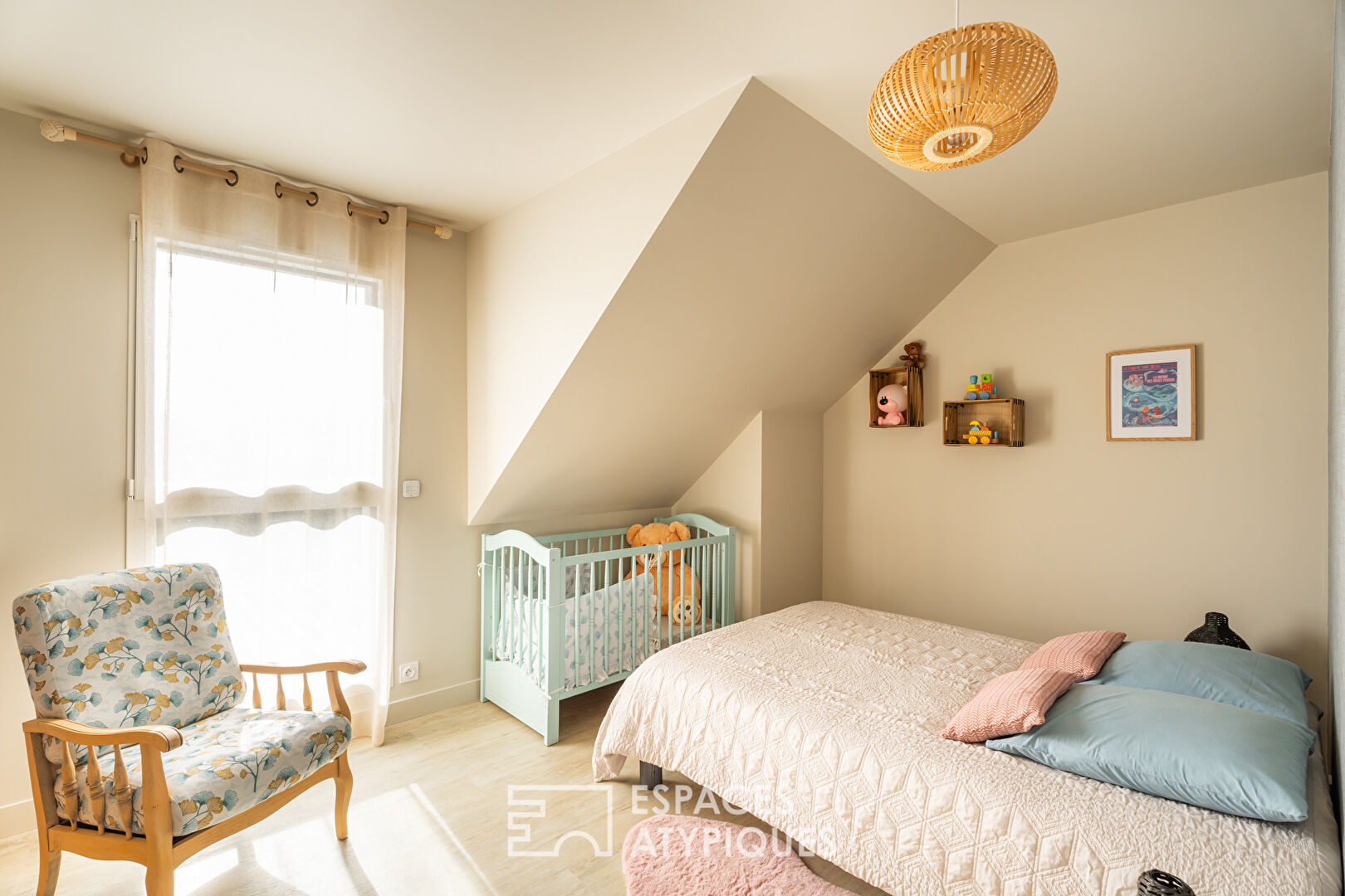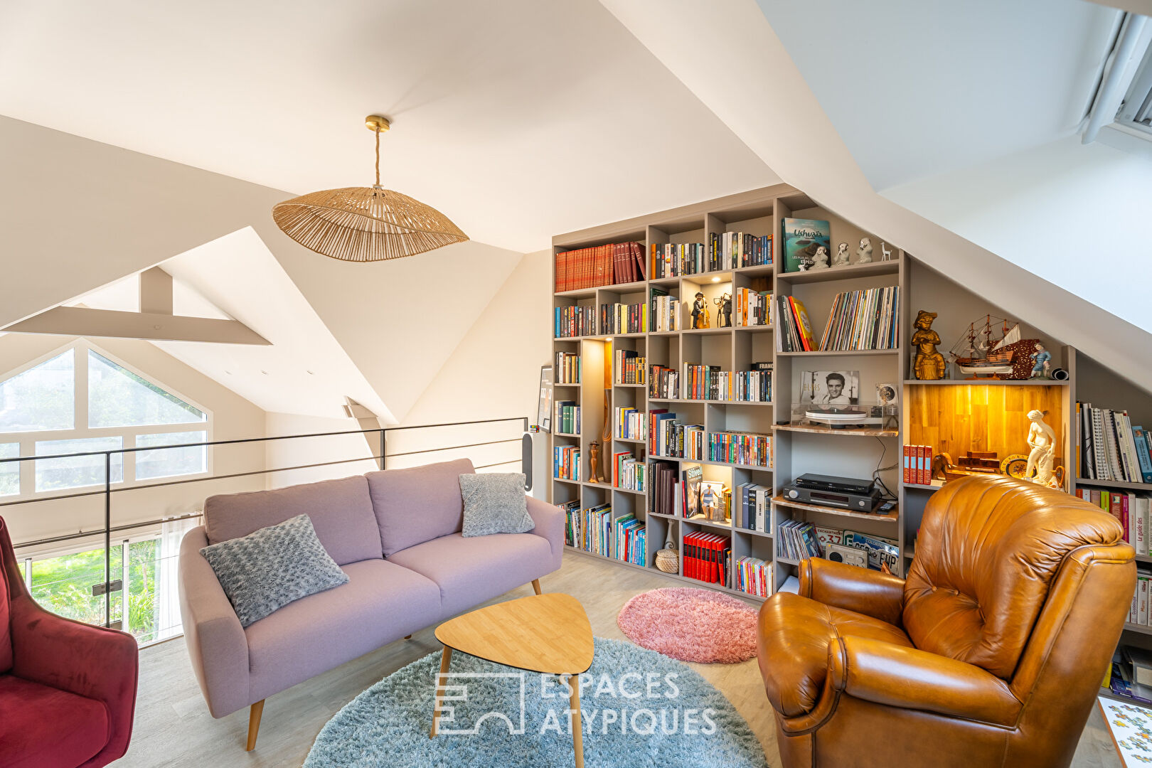 EXCLUSIVITÉ ESPACES ATYPIQUES Découvrez cette magnifique contemporaine d'environ 160m2 entièrement rénovée, située dans un cadre paisible à Saint-Armel au bord du golfe du Morbihan proche des sentiers côtiers et du centre bourg. A seulement 15 minutes de Vannes et 10 minutes de Sarzeau, ce bien allie confort moderne et proximité avec les commerces. Dès l'entrée, vous serez séduit par la lumière naturelle qui baigne cet espace de vie. Le rez-de-chaussée comprend une vaste entrée, une cuisine aménagée et équipée, ainsi qu'un grand salon séjour avec plafond cathédrale, idéal pour accueillir vos proches et profiter de moments conviviaux. Une suite parentale vient compléter ce niveau pour une vie de plain-pied. A l'étage, vous trouverez deux chambres, une salle de bain avec douche et baignoire, ainsi qu'une mezzanine ouverte sur le salon, apportant une atmosphère chaleureuse à cette maison. A l'extérieur, cette propriété propose une pergola bioclimatique, parfaite pour profiter des doux moments de lumière en soirée. Le jardin paysager et arboré est un véritable havre de paix, incluant une cuisine d'été et un espace jacuzzi pour des instants de détente privilégiés. Un garage accessible depuis le cellier, des dépendances ainsi qu'une serre viennent compléter cette propriété. Un lieu idéal pour allier confort, sérénité et commodité. CLASSE ENERGIE : A / CLASSE CLIMAT : A Montant moyen estimé des dépenses annuelles d'énergie pour un usage standard : 364 euros pour 2019 Les informations sur les risques auxquels ce bien est exposé sont disponibles sur le site géorisques : www.georisques.gouv.fr Denise Muteau RSAC Vannes 503 556 045 Contact : 06 12 71 52 43 Denise Muteau (EI) Agent Commercial - Numéro RSAC : 503 556 045 - VANNES.