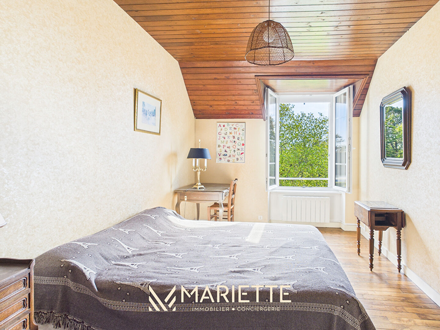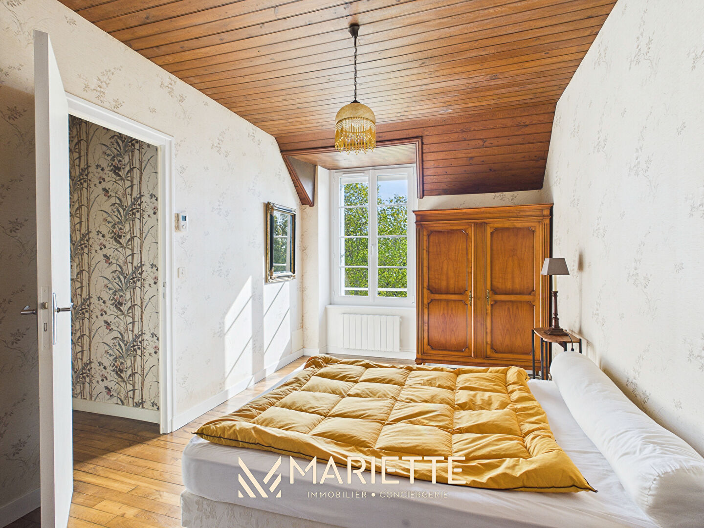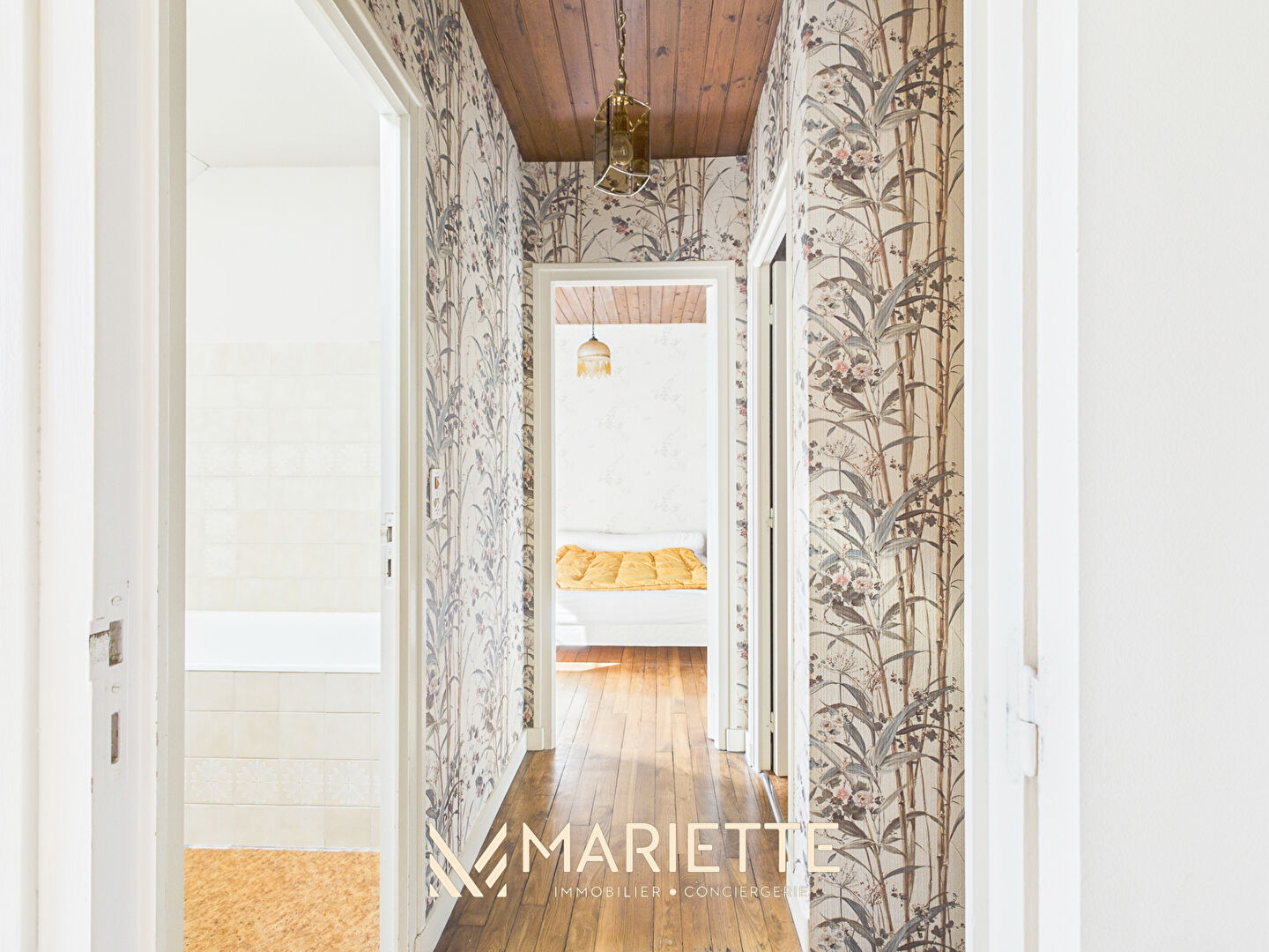 "MADELEINE" Est cette charmante maison située à proximité de la plage de Tahiti. Cette ravissante demeure des années 1930, où l'élégance d'autrefois s'allie harmonieusement au confort moderne, dévoile de belles hauteurs sous plafond, des parquets massifs et une cheminée authentique, autant de détails rappelant le raffinement des constructions d'antan. Continuellement entretenue avec soin, elle conserve toute son âme en offrant de lumineuses pièces de vie et un jardin verdoyant invitant à la détente et aux moments partagés. Sa parcelle de plus de 3500m² constructible lui laisse entrevoir d'autres projets. Une nouveauté à l'agence Mariette Immobilier Trégunc La distribution : -au rez-de-chaussée : entrée, deux chambres avec points d'eau -au 1er niveau : entrée, WC avec lave main, salon-séjour, cuisine -au 2ème niveau : deux chambres, salle de bains, WC Annexes : jardin, terrasse, garage, cabanon de jardin Ce que l'on aime : La proximité de la mer, l'environnement verdoyant, le calme, le cachet de la maison, la parcelle constructible Points d'intérêts: A 900m de la plage de Tahiti A 3 km du bourg de Nevez A 2.8 km des écoles Mariette Immobilier Conciergerie soutient la SNSM de Trévignon - Concarneau en leur reversant 1 % de chaque commission d'agence, afin de contribuer à leurs actions de prévention et de sauvetage en mer. (4.00 % honoraires TTC à la charge de l'acquéreur.)