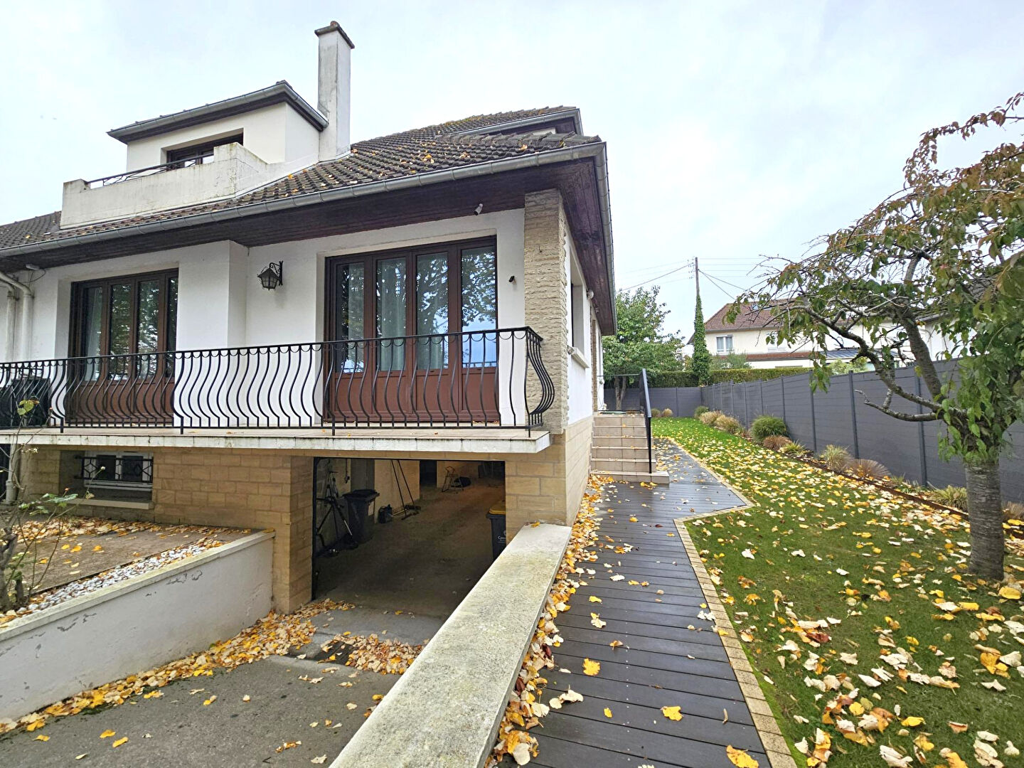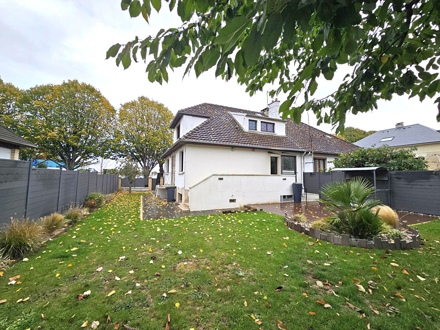 Caen quartier Hastings/St Gabriel, proche hyper centre, charmante maison de ville de 5 pièces principales rénovée, comprenant: entrée séparée, séjour/salon d'environ 36 m² parqueté avec cheminée, cuisine équipée/aménagée, chambres et salle d'eau au rez-de-chaussée. Etage: palier, deux chambres dont une avec accès balcon, superbe salle de douche, nombreux placards. Sous-sol: grand garage, buanderie, chaufferie, cave et bureau aménagé. Terrasse et jardin clos paysagé. Honoraires charge acquéreur 5.2%. Classe énergie E (5.23 % honoraires TTC à la charge de l'acquéreur.)