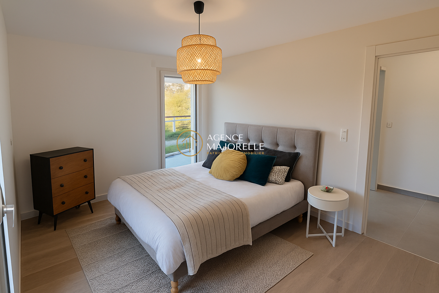 A seulement quelques minutes de la Cité des Images, à 2h de TGV depuis Paris, au bord d'un lac entouré de nature et de forêt, découvrez cet appartement de haut standing. Situé au premier étage d'une résidence récente, sécurisée et élégante, ce bien neuf et jamais habité offre des prestations d'exception pour un confort absolu. Dès l'entrée, l'atmosphère est épurée et contemporaine : grandes surfaces vitrées, lignes modernes, placards intégrés et chauffage au sol qui libère totalement les espaces de vie. Chaque détail a été pensé pour conjuguer esthétique et fonctionnalité. L'appartement se compose de deux chambres, chacune bénéficiant de sa propre salle d'eau privative au design actuel et raffiné. La spacieuse pièce de vie, baignée de lumière naturelle, s'ouvre sur une terrasse exceptionnelle de 60 m², partiellement végétalisée, offrant une vue imprenable sur le lac et la forêt : un cadre rare, apaisant et inspirant, en parfaite communion avec la nature. Un garage privatif vient compléter ce bien d'exception. Venez découvrir cet appartement perché en pleine nature et laissez-vous séduire par son cadre unique et ses prestations haut de gamme. Copropriété de 30 lots - dont 11 lots habitation. (Pas de procédure en cours). Charges annuelles : 1592 euros.
