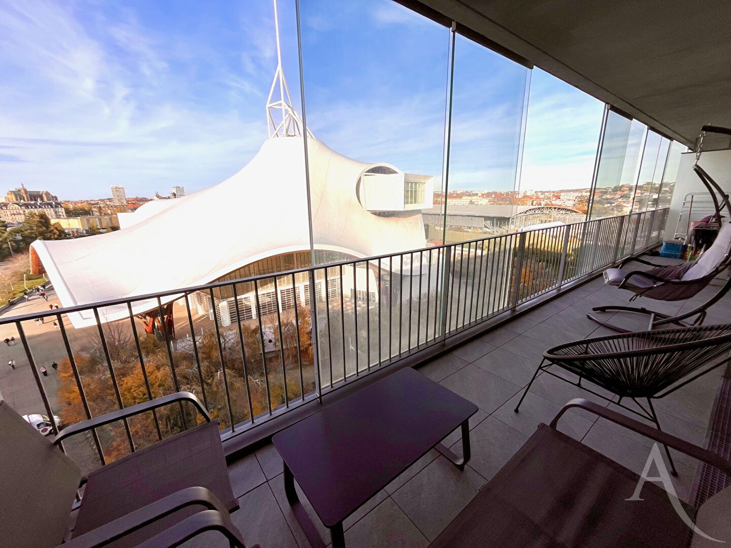 A VENDRE - Avenue François Mitterrand à METZ A deux pas de la gare, du centre MUSE et des commodités, Venez découvrir dans la résidence récente FIRST de standing (2018) un appartement F3 avec une vue imprenable sur la cathédrale, la gare et le centre Pompidou. Situé au dernier étage avec ascenseur, l'appartement se compose d'une entrée avec placard, d'une belle pièce de vie lumineuse avec sa cuisine équipée et son accès direct sur la terrasse, deux chambres dont une avec placard, une salle de bains, wc indépendant et une buanderie. Belles prestations (cuisine BULTHAUP, vrai parquet, grandes portes, volets motorisés) Domotique avec tableau de bord Salle de sport Boites aux lettres connectées Double vitrage Chauffage urbain DPE C Possibilité d'acquérir un parking en sous-sol en sus. Besoin de la proximité gare ? Cet appartement est fait pour vous. Pour plus d'informations ou organiser une visite, contactez-nous! Les informations sur les risques auxquels ce bien est exposé sont disponibles sur le site Géorisques : https://www.georisques.gouv.fr/ Pour plus de renseignements contacter l'agence L'ADRESSE METZ au 03.87.32.15.15, sur metz@ladresse.immo ou directement en agence 5 rue des Messageries 57000 METZ ** Honoraires à la charge du vendeur Votre agence immobilière L'ADRESSE Metz : ACHAT VENTE LOCATION GESTION d'appartements et maisons. Copropriété de 48 lots - dont 48 lots habitation. (Pas de procédure en cours). Charges annuelles : 1800 euros.