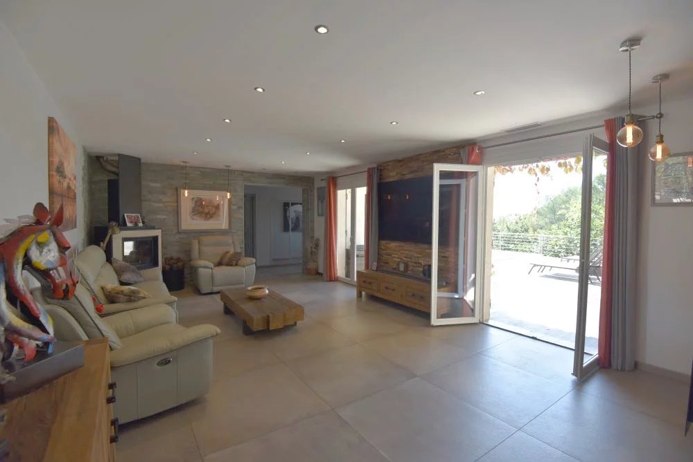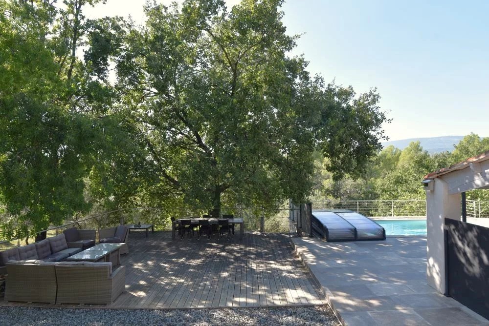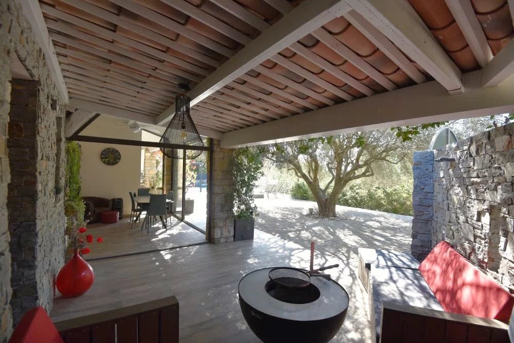 Élégante villa de charme avec piscine chauffée – Cadre naturel d’exception à Tourrettes À seulement quelques minutes du village de Fayence, dans un environnement résidentiel recherché, au calme absolu et sans aucun vis-à-vis, cette propriété séduit par son cadre naturel préservé, son atmosphère paisible et ses prestations de qualité. Implantée au cœur d’un magnifique terrain paysager de 6 559 m², agrémenté d’essences méditerranéennes et de beaux espaces de détente, cette villa d’environ 170 m² offre un art de vivre rare entre élégance provençale et confort contemporain. Une maison lumineuse et parfaitement agencée comprenant : Au rez-de-chaussée : Une entrée, un vaste séjour de 50 m², baigné de lumière avec cheminée à insert, ouvert sur les terrasses, une grande cuisine équipée, conviviale et fonctionnelle, accès direct à la véranda et à une agréable terrasse couverte, deux chambres avec salles d’eau privatives, un bureau. À l’étage : Trois chambres dont une actuellement aménagée en dressing, une salle de bains. Les volumes sont harmonieux, les matériaux soignés et les ouvertures nombreuses, créant une belle continuité entre intérieur et extérieur. La propriété dispose de superbes espaces extérieurs : Piscine chauffée avec large plage et vue dégagée sur la nature cuisine d’été idéale pour recevoir Grandes terrasses ensoleillées Espaces ombragés sous les arbres Ambiance intimiste et sereine Un cadre parfait pour profiter du climat varois en toute saison. Confort et dépendances Climatisation Cheminée insert Buanderie et cellier Garage Atelier Abri voiture