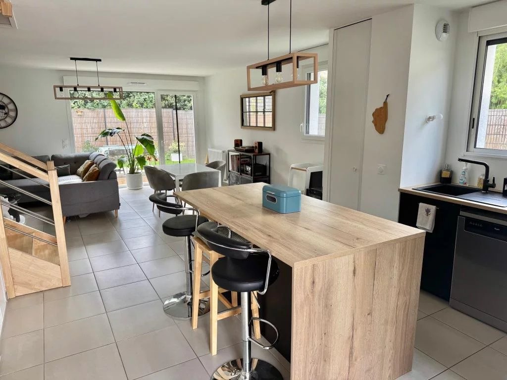 VILLENAVE D'ORNON, maison récente de 2024, d'une superficie habitable d'environ 88 m² avec jardin. Elle se compose comme suit : Au rez-de-chaussée : une grande pièce de vie avec cuisine us équipée et une buanderie avec wc. A l'étage : un dégagement, trois chambres et une salle de bains avec wc. Jardin d'environ 100 m² et abris vélo. La maison fait partie d'une petite copropriété et dispose de deux emplacements de parking privatifs juste devant la maison. Bon emplacement, à proximité de la rocade, des commerces, écoles et transports en commun.