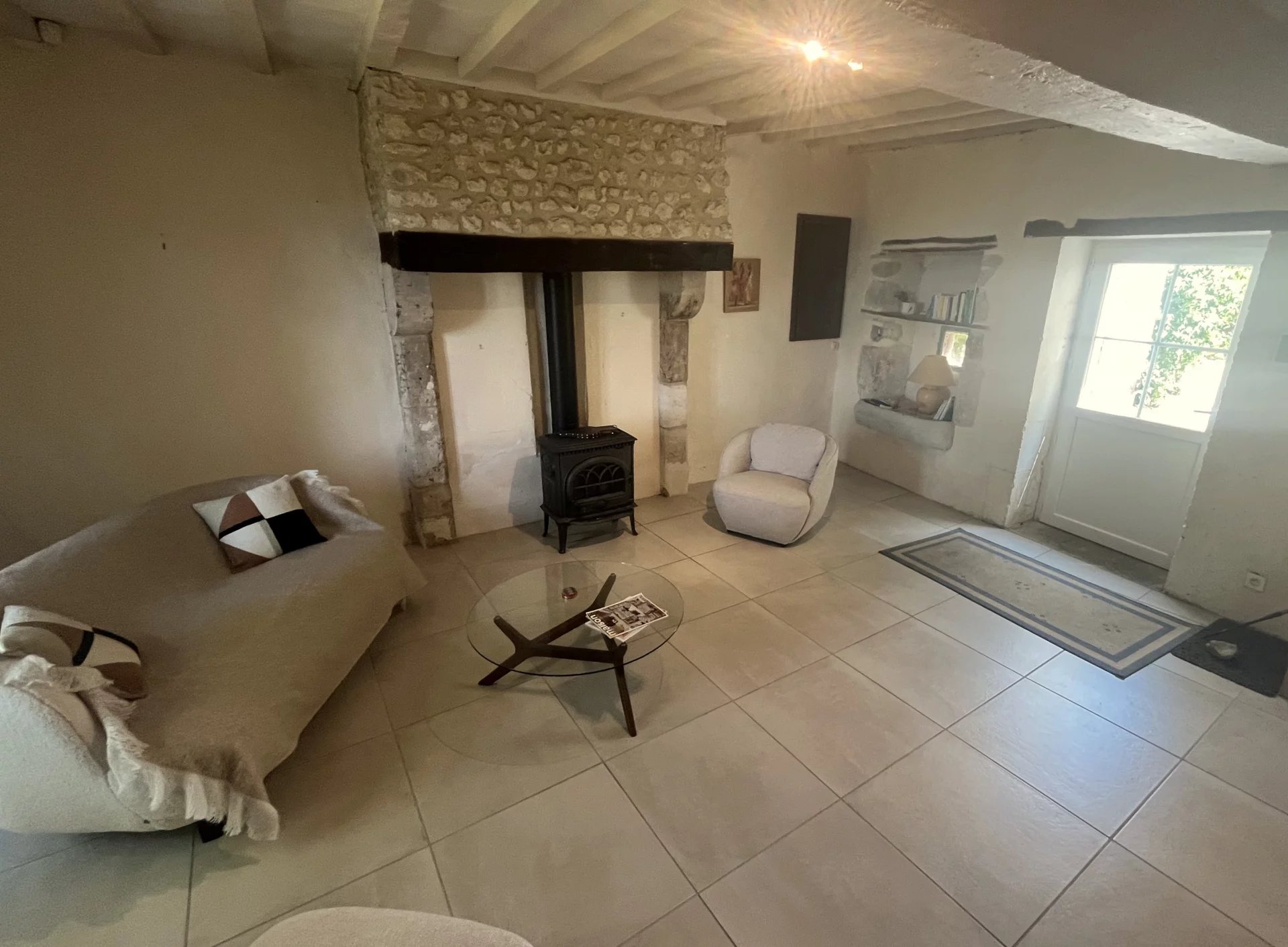 À 5 minutes en voiture de toutes les commodités que Montmoreau offre, se trouve cette authentique maison de 168 m², répartis sur 3 étages. Ce petit bijou, situé au pied de l'église St Amant datant du XVIe siècle, offre le confort de 3 (voire 4) chambres, 3 douches et toilettes. Avec ses belles poutres, ses pierres charentaise traditionnelles et son sol carrelé récemment posé, vous profiterez toute l'année d'une ambiance de vacances. Le poêle à bois dans le salon apporte une touche de convivialité supplémentaire. La propriétaire actuelle a également investi dans une nouvelle cuisine, des radiateurs électriques flambant neufs à la pointe de la technologie et une isolation supplémentaire, notamment en faisant installer des menuiseries à double vitrage. Les murs centenaires de 70 cm d'épaisseur complètent le tableau du confort. Depuis la cuisine, vous accédez directement à la terrasse adjacente, où vous pouvez profiter de la plus belle vue panoramique du sud de la Charente !