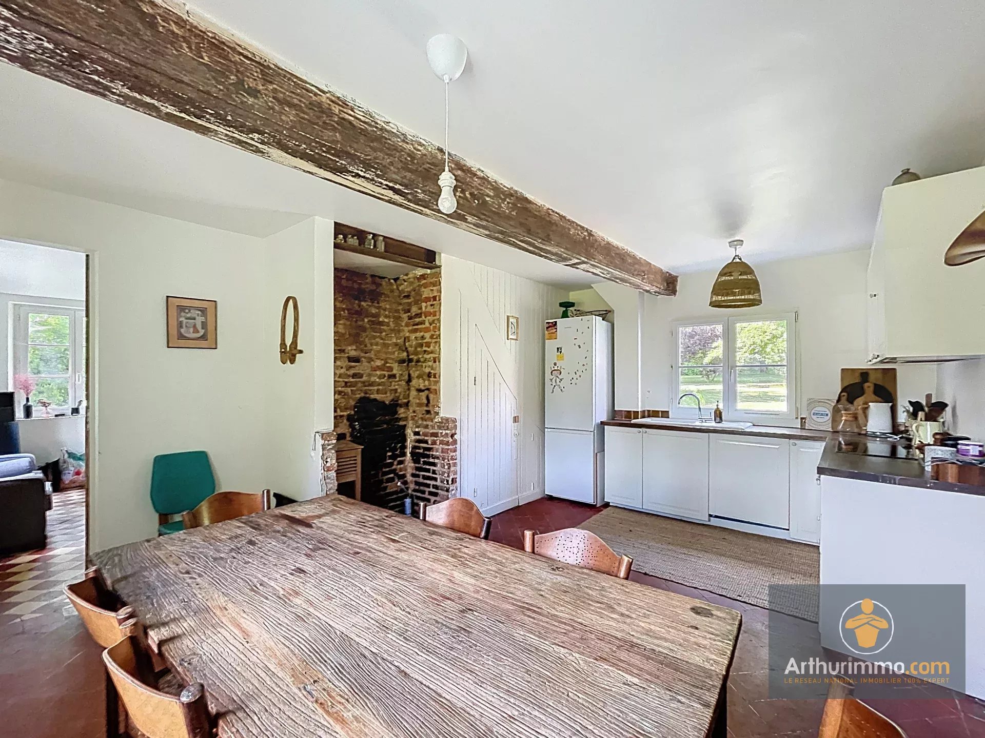 A visiter sans tarder ! Charmante longère de 143m² à 1h15 de Paris, sur un terrain arboré de 2000m², au calme et à 5min de l'AI. Elle offre 2 salons, cuisine dinatoire, 4 chambres, 2 salle d'eau, poêle à granulés neuf, dépendance de 13m². Aucun vis-à-vis, nature et sentier pédestre accessible. Huisserie PVC double vitrage. Taxe foncière: 719€