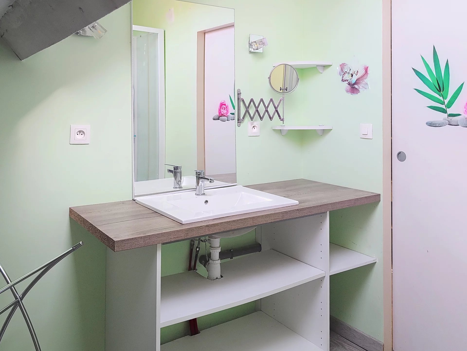 L’extérieur complète parfaitement l’ensemble avec un jardin clos, idéal pour profiter des beaux jours, jardiner ou simplement se détendre en toute intimité.