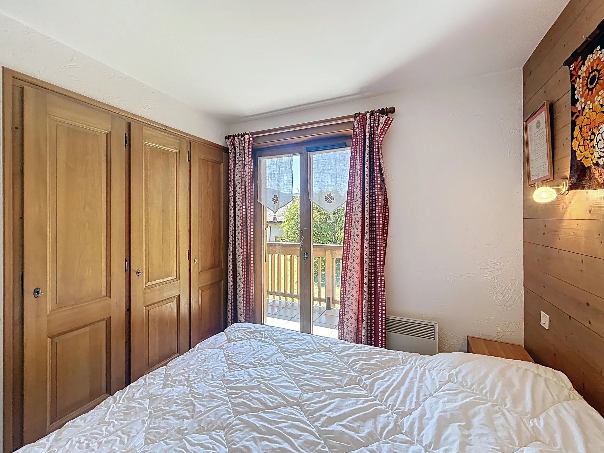 Situé dans une résidence de standing à proximité du Domaine Skiable Les Portes du Mont Blanc à Combloux, bel appartement comprenant une entrée, placard une chambre avec 2 lits superposés (90x190) placard, une salle de bain, une chambre avec un lit double (140x190), une pièce de vie avec coin repas salon avec accès sur un balcon d'angle avec une très belle vue sur le Mont Blanc et sommet environnant, Exposé Sud Est, une cuisine équipée (lave-vaisselle, four, bouilloire, micro-ondes, réfrigérateur-congélateur…). Annexes : casier à skis et place de parking en sous-sol. - A régler lors de votre arrivée : Taxe de séjour et caution logement par carte bancaire uniquement. Services en option à prévoir avant l’arrivée (la semaine précédente) : - Linge de maison - Ménage fin de séjour - Location mini box wifi : 39.00 € la semaine dans la limite des stocks disponibles.