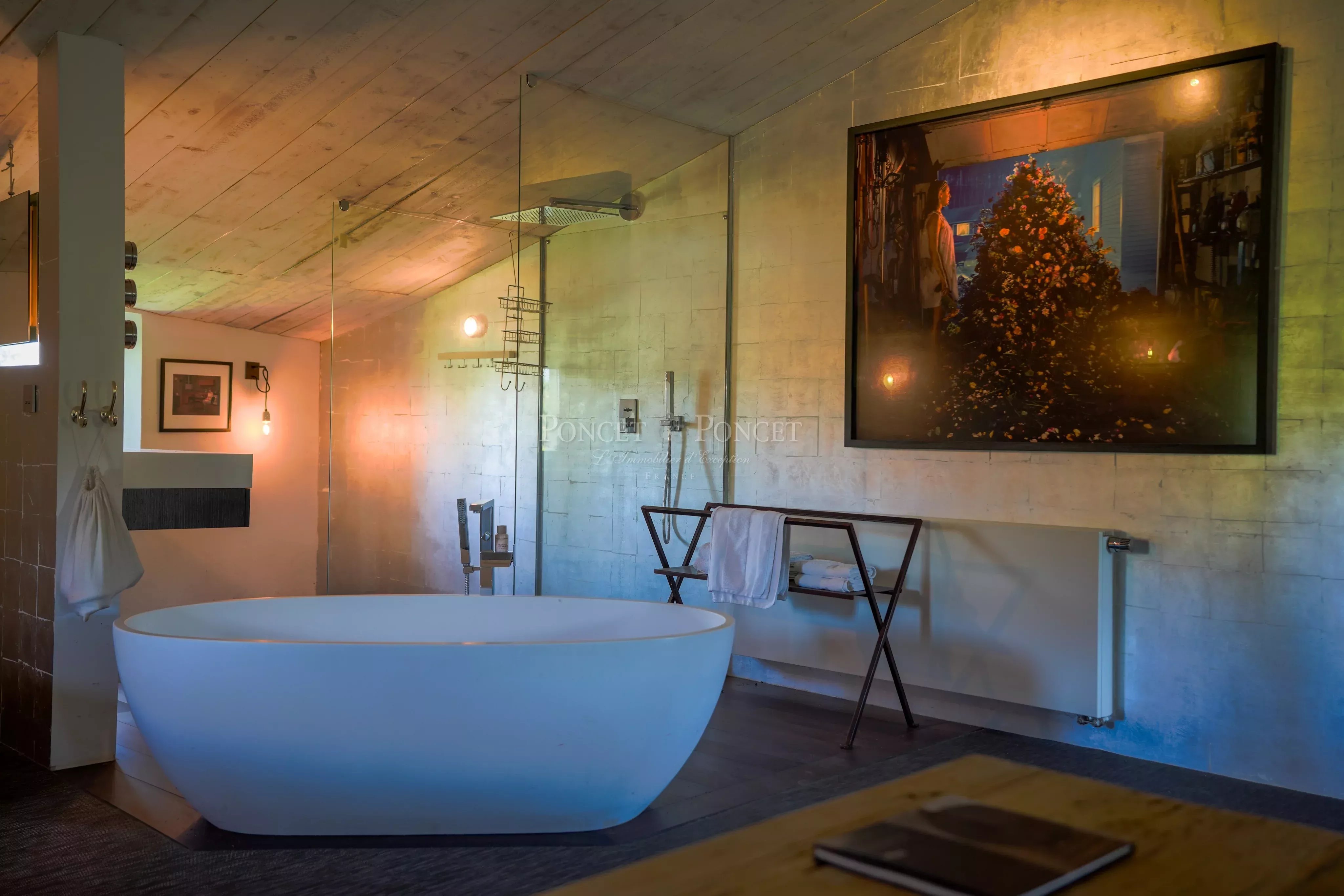 Un lieu chargé d’histoire, entre tradition et élégance Niché aux portes d’Uzès, ce domaine d’exception, dont l’histoire s’étend du XVIᵉ au XVIIIᵉ siècle, incarne tout le raffinement d’une demeure ancestrale sublimée par une rénovation prestigieuse.Il fut autrefois un haut lieu de la culture de la lauze, cette pierre calcaire typique du pays uzétien, utilisée pour les toitures et les bâtisses de caractère. Témoin du riche passé architectural et artisanal de la région, le domaine a su préserver son âme et son authenticité, tout en intégrant des prestations haut de gamme pour un confort absolu. Derrière ses imposants murs de pierre se déploie un véritable havre de paix : plus de 1 000 m² habitables, répartis sur deux ailes, offrant une enfilade de pièces de réception et de suites au cachet intemporel. Un pari audacieux a guidé la rénovation de ce lieu : préserver son histoire tout en offrant modernité, élégance et luxe. Chaque espace a été pensé dans les moindres détails : climatisation dans toutes les pièces, salles de bains luxueusement équipées avec douche, baignoire et WC séparés, et une conception unique où chaque chambre devient un véritable cocon de confort. La plupart sont dotées d’une kitchenette, et certaines bénéficient même d’une terrasse ou d’un jardin privatif. Quatre nouvelles suites prestigieuses, récemment aménagées, viennent enrichir cet ensemble raffiné. Un art de vivre alliant gastronomie et bien-être Pensé comme un véritable lieu de vie et d’expérience, ce domaine offre des prestations uniques qui en font une adresse d’exception. Un restaurant gastronomique, où les repas sont servis dans un cadre enchanteur. En été, le service se fait dans un magnifique jardin, à l’ombre des arbres centenaires, offrant une atmosphère unique et conviviale. Un espace bien-être raffiné, comprenant : - Une piscine intérieure chauffée, idéale pour se détendre en toute saison - Un hammam traditionnel, invitant à une relaxation profonde - Une salle de massage, dédiée au lâcher-prise et à la sérénité - Une salle de sport équipée, pour les amateurs de bien-être et de remise en forme Un vaste espace extérieur, agrémenté d’une piscine chauffée, de grandes terrasses et d’un jardin méditerranéen arboré, où oliviers et lauriers roses composent un décor idyllique. Chaque recoin de ce domaine a été conçu pour offrir une expérience sensorielle et émotionnelle inoubliable, où le bien-être et l’art de vivre se rejoignent harmonieusement. Une situation privilégiée au cœur du Gard provençal Idéalement situé, ce domaine bénéficie d’un accès rapide aux grandes villes et infrastructures : Uzès à pied, un atout rare pour profiter du charme et de l’animation de la première duché de France. Accès rapide aux grandes villes : Nîmes (35 min), Avignon (50 min), Montpellier (1h15), Marseille (2h00). Gares TGV à proximité : Avignon (45 min), Nîmes (35 min), Montpellier (1h30). Accès facilité aux grandes destinations : Paris (2h50), Bruxelles (5h00), Genève (3h00). Aéroports : Nîmes (40 min), Montpellier (1h00), Avignon (1h00), Marseille (1h30). Un lieu aux multiples possibilités Ce domaine, rare par son histoire et son cadre exceptionnel, se prête à de nombreux projets : - Une résidence privée de prestige, pour les amoureux des demeures historiques. - Un hôtel de charme ou une maison d’hôtes de luxe, avec des prestations haut de gamme. - Un lieu d’événements et de réception, idéal pour les mariages, séminaires et retraites bien-être. - Un espace alliant vie privée et activité professionnelle, parfait pour un projet d’envergure. Notre coup de cœur Bien plus qu’une propriété, ce domaine est une invitation à la douceur de vivre en Provence, où histoire, confort et modernité se fondent dans un décor d’exception. Ce que nous en pensons : Un bien rare et unique pour les amateurs de lieux empreints de caractère et de prestige. Nous tenons à votre disposition un dossier complet . Contact : Pierre Beghin : 06 07 09 01 21. Les informations sur les risques auxquels ce bien est exposé sont disponibles sur le site Géorisques : www.georisques.gouv.fr