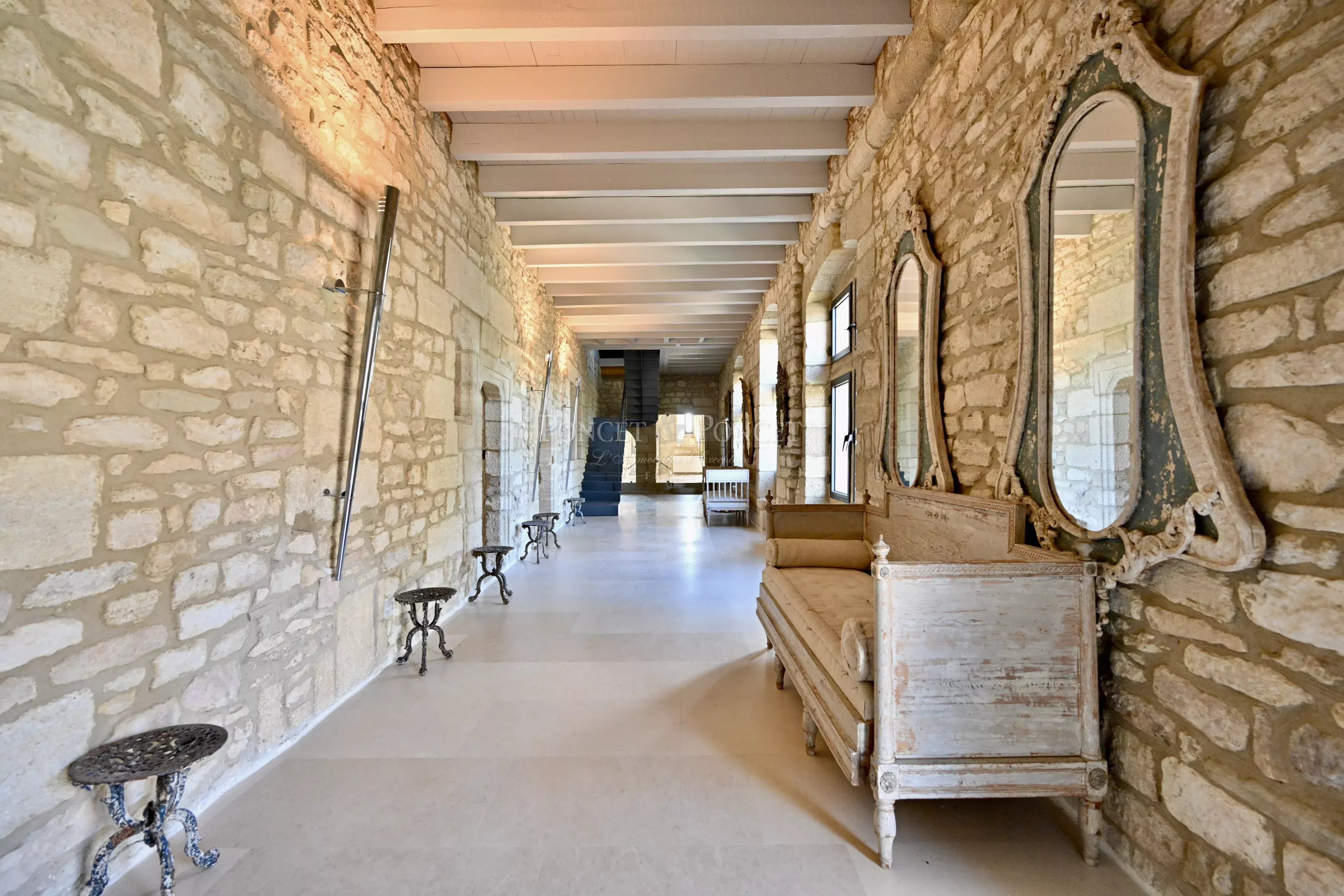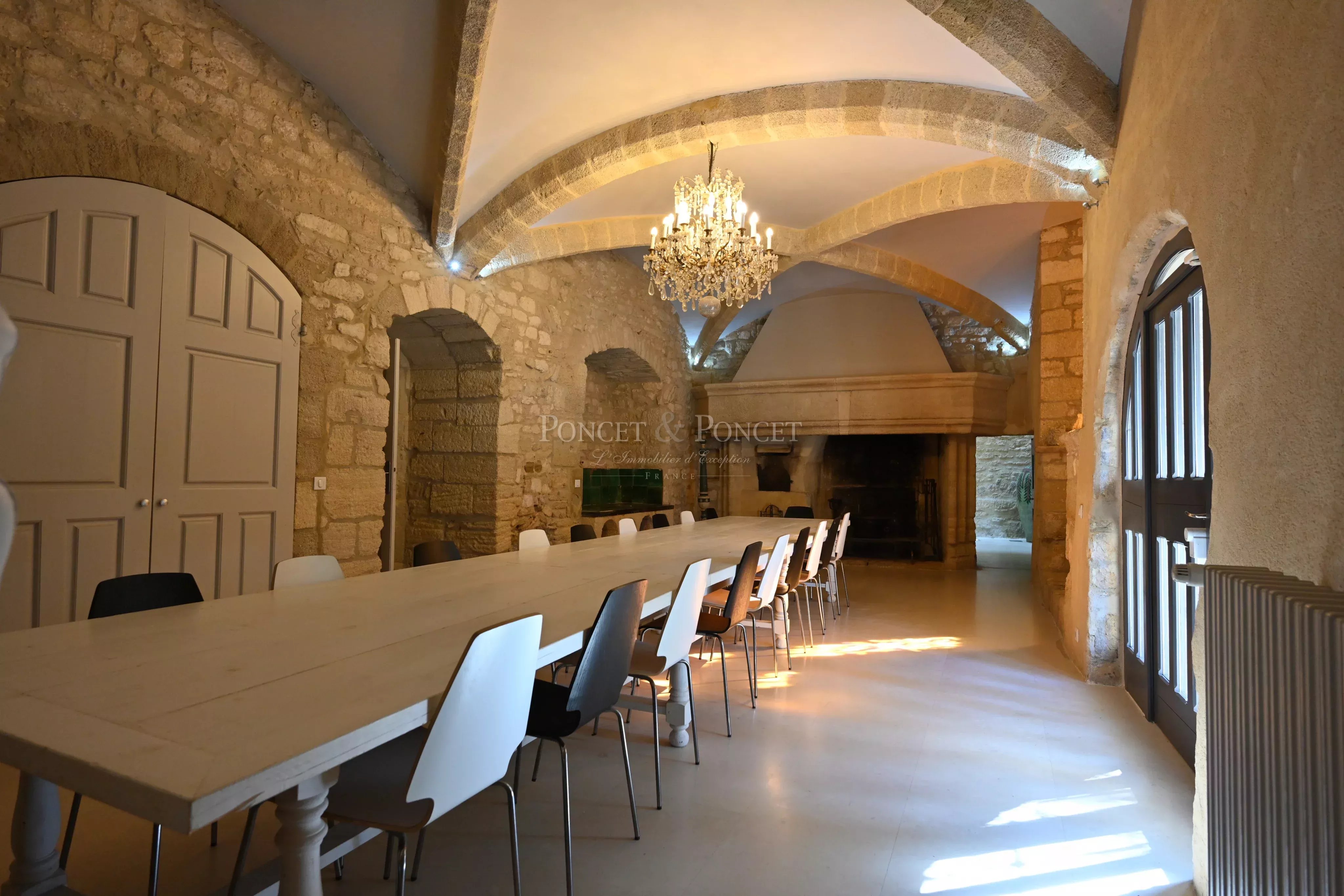 Au cœur du Gard, dans un village recherché à proximité immédiate d’Uzès, de Nîmes et d’Avignon, ce château du XII siècle, classé Monument Historique, offre une situation idéale. Entièrement rénové avec soin, ce château de 27 pièces marie harmonieusement le caractère authentique de son patrimoine architectural avec le confort et les équipements modernes. L’élégance de ses murs en pierre apparente, ses arcades, ses fenêtres à meneau croisé et ses salons voûtés en font un véritable joyau historique. D’une superficie généreuse, la propriété offre des espaces de réception grandioses, des salles de conférence, un bar/espace détente, et des prestations exceptionnelles : - Un magnifique escalier d’honneur en pierre, sublimé par une rambarde en ferronnerie d’art - 9 grandes chambres et 7 salles de bains, offrant un confort absolu - 2 cuisines dont une est équipée d’un piano de cuisson splendide, alliant charme ancien et équipements modernes - Espace bien-être avec hammam, jacuzzi sur le toit avec vue panoramique, piscine intégrée dans un cadre historique et salle de sport - Salle de cinéma, pour des instants de divertissement en toute intimité - Cave à vins, idéale pour les amateurs de grands crus - Une maison de gardien F2/3 avec balcon - Un double garage Le tout sur un terrain de 1 805 m², avec un jardin privé et une atmosphère à la fois élégante et sereine, où la lumière naturelle joue subtilement avec la texture des pierres et les touches de végétation. Ce que nous en pensons : Un bien d’exception pour les amoureux d’histoire et d’architecture, mais aussi une opportunité unique pour un projet familial prestigieux ou une activité événementielle haut de gamme. Grâce à ses espaces somptueux et à son potentiel illimité, ce château peut se prêter à l’organisation de réceptions, de séminaires ou encore de séjours touristiques exclusifs. Un véritable bijou dans un écrin de charme, où passé et modernité se conjuguent à la perfection. Un lieu unique, chargé d’histoire, qui ne demande qu’à écrire les prochaines pages de son prestigieux récit…… Contact : Barbara Heslop +33 6 21 76 51 90 Les informations sur les risques auxquels ce bien est exposé sont disponibles sur le site Géorisques : www.georisques.gouv.fr