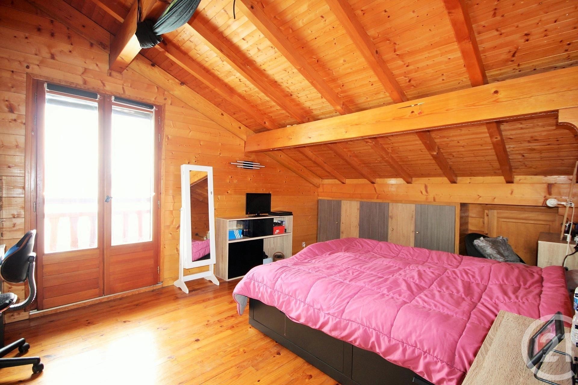HAUTEURS DE RUMILLY - Dans un environnement calme avec une magnifique vue panoramique sur la montagne et la vallée - Nous vous invitons à venir découvrir ce charmant chalet madrier de type 4 de 111 m². Il se compose au rez de chaussée d'une jolie cuisine moderne ouverte sur séjour de 42 m² et d'une agréable chambre de plain pied. Deux belles terrasses dont une couverte permettent de bénéficier de beaux espaces extérieurs et de sa vue imprenable. A l'étage, vous apprécierez le volume de ses deux chambres, son espace bureau ainsi que sa belle et grande salle de bains avec douche et baignoire . Un sous sol total avec garage double, caves et buanderie complètent les nombreux atouts de ce bien. Vous serez séduit par son agréable parc arboré, sa charmante terrasse couverte ainsi que par ses annexes (abris extérieurs). Un bien plein de charme et d'authenticité à visiter sans tarder