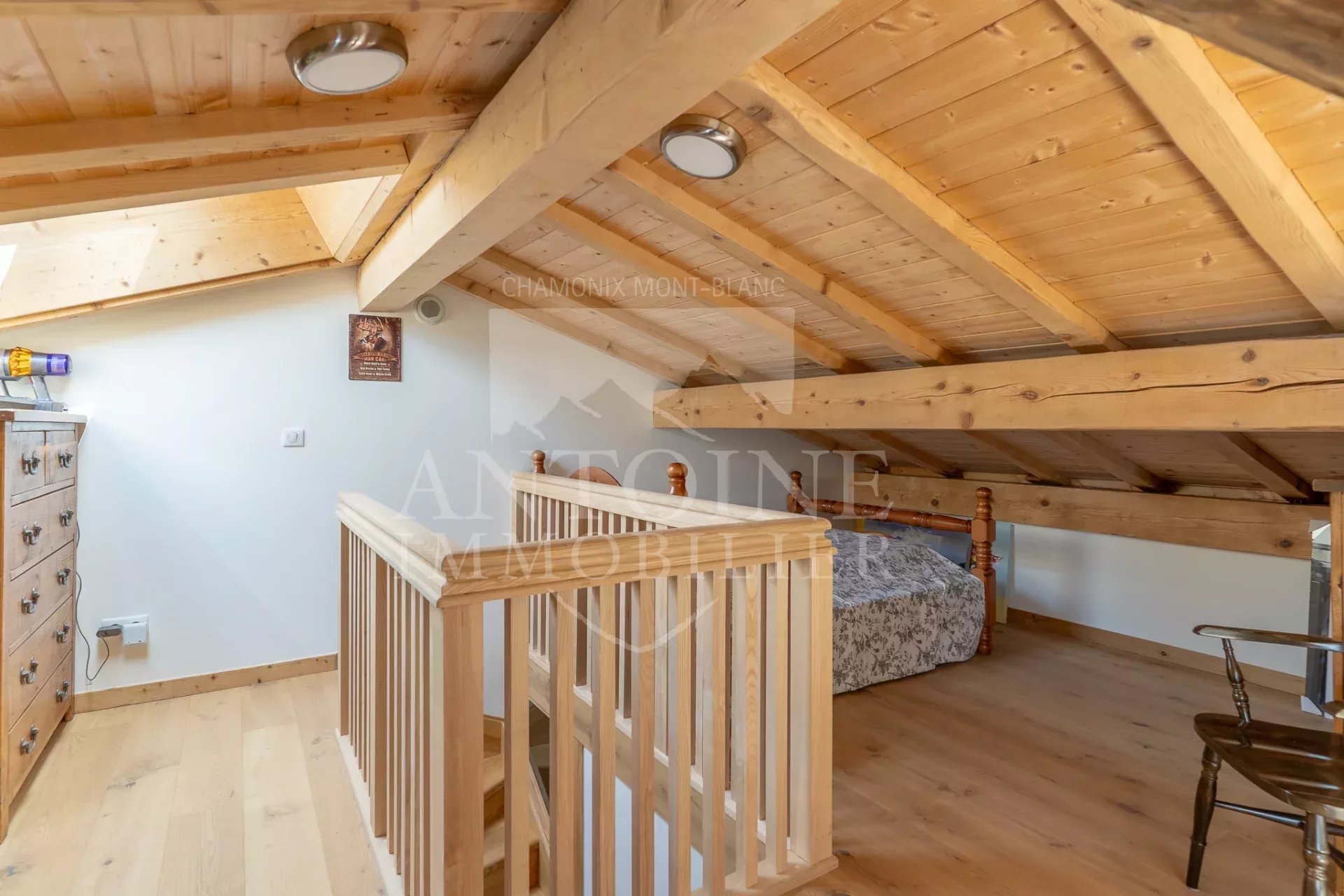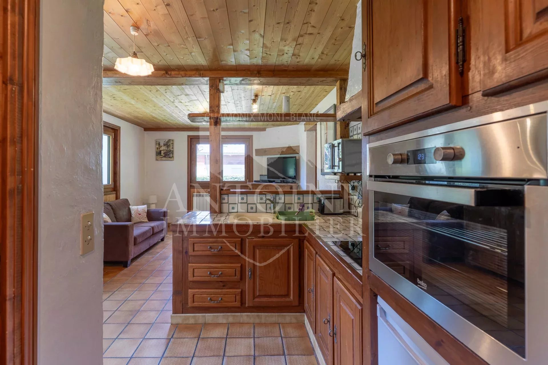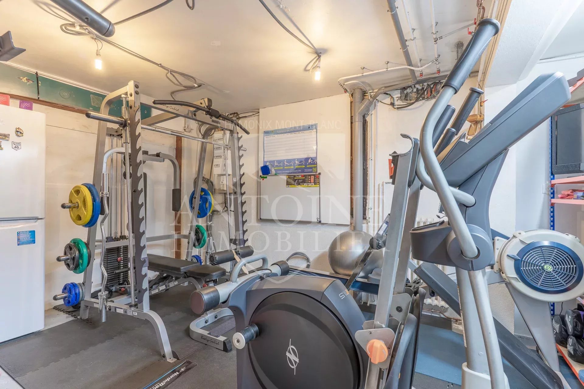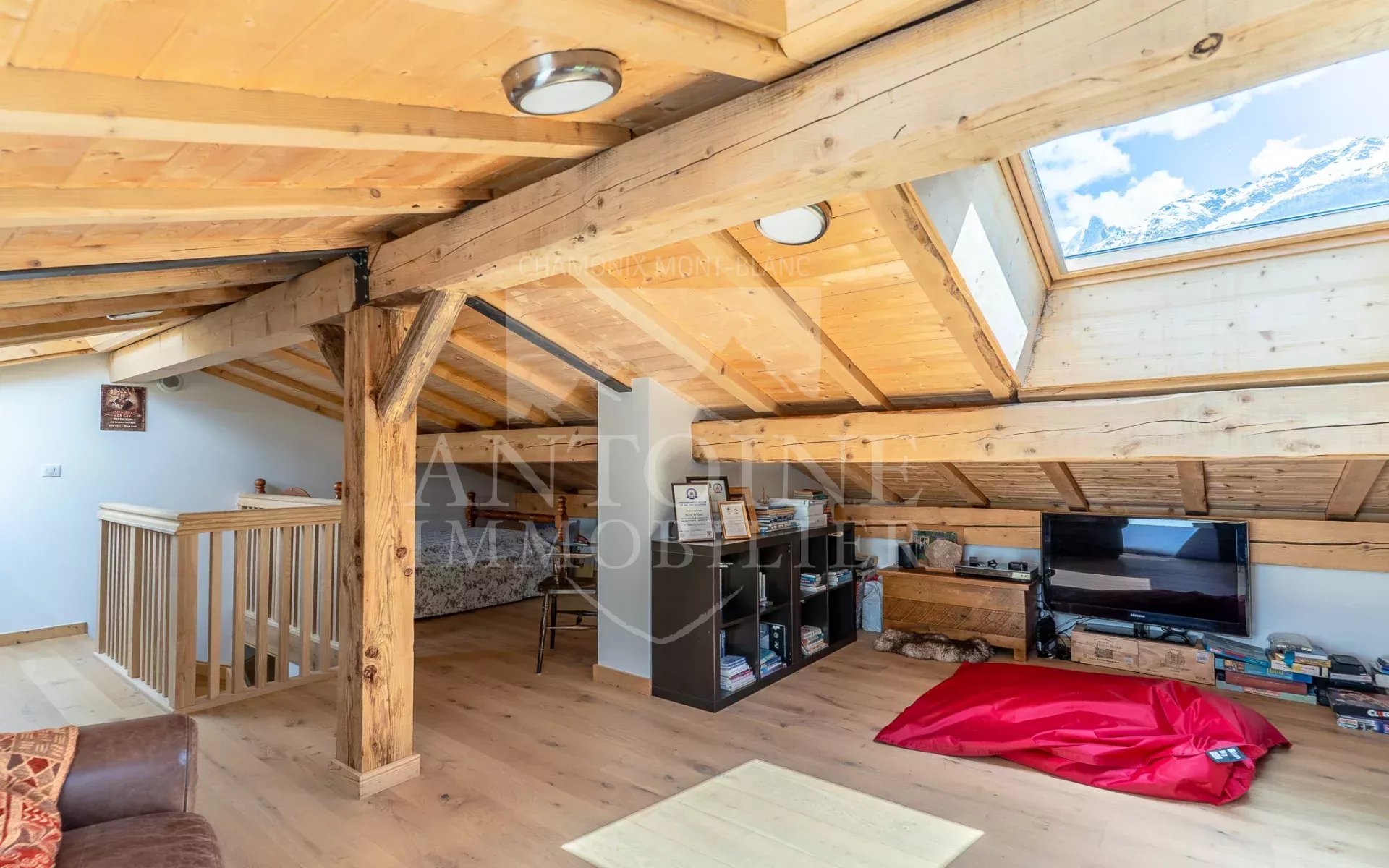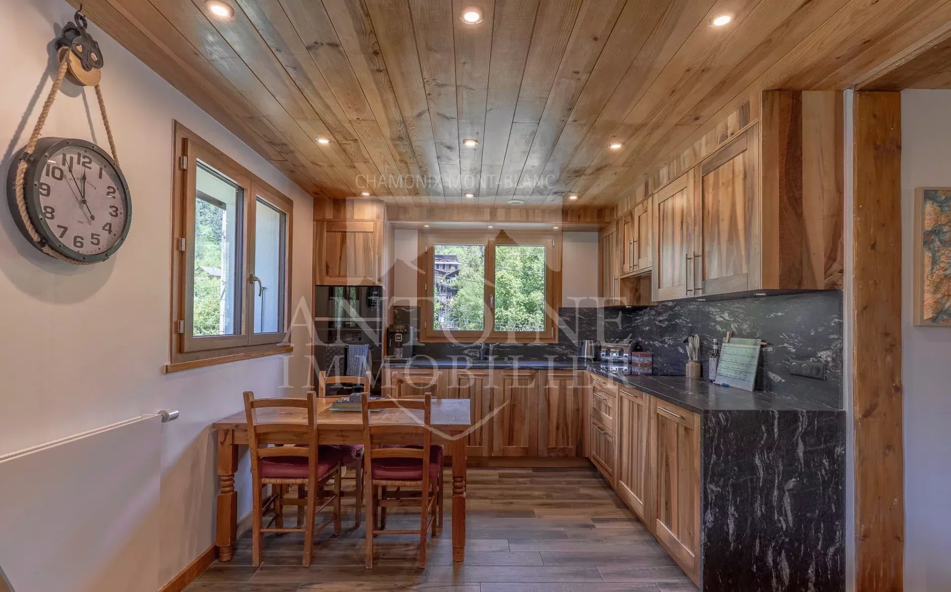 Rare opportunité à Chamonix : nichée dans un environnement calme et verdoyant à seulement un kilomètre de Chamonix, cette belle opportunité édifiée sur un terrain de 1 430 m2 accueille un chalet familial, un garage indépendant et un mazot. Entièrement clôturé, le terrain s'ouvre sur un portail élégant et un parvis en pierres de Luzerne menant au chalet édifié sur trois niveaux et parfaitement entretenu. Le rez de jardin abrite un appartement indépendant avec accès privatif de 40 m2 composé d'une entrée, d'un agréable séjour avec cuisine ouverte, une chambre double, d'un bureau, d'une salle d'eau et de WC. Cet espace de vie ouvre directement sur le jardin. Une salle de sport ainsi qu'une chaufferie/buanderie complètent ce niveau. A l'étage, la résidence principale offre un espace chaleureux et lumineux. On y découvre séjour avec une cuisine américaine moderne et entièrement équipée, trois chambres, une salle de bains, une salle d'eau. Ce niveau dispose d'un grand balcon orienté plein sud, offrant une vue imprenable sur la majestueuse chaine du Mont Blanc. Le dernier niveau sous combles forme un large volume de 48 m2 (surface partiellement en sous-pentes), baigné de lumière grâce à ses ouvertures en façade sud et à ses velux. Cet espace peut être utilisé en bureau, en chambre ou en salle de jeux selon vos besoins. Le chalet présente de très belles prestations : la toiture est neuve, les menuiseries récentes et de qualité, la VMC est à double flux. La surface totale du chalet est de 186 m2 incluant la salle de sports et la buanderie. Un garage récemment construit s'ajoute à cette propriété ainsi qu'un mazot (abri de jardin). Enfin, le jardin plat et arboré et bordé par la rivière L'Arve confère à la propriété une atmosphère bucolique et un charme rare dans ce secteur prisé de Chamonix.