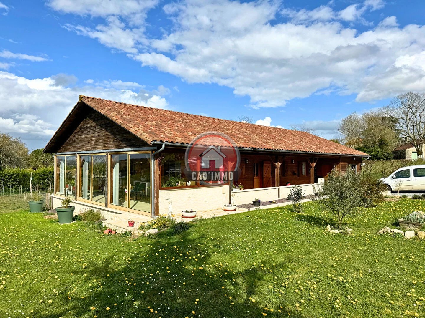 CAD IMMO vous propose proche SIGOULES village avec tous commerces, maison bois contemporaine de plain pied comprenant : une cuisine équipée, grand salon séjour avec poêle à bois , trois chambres dont une avec salle d'eau et wc,, véranda de plus de 42 m² avec vue, garage attenant , cabanon bois de 20 m², terrain clos de 1800 m² à voir rapidement. contact@cad-immo.com 0611512831/0553735735. Retrouvez toutes nos annonces sur notre site: www.cad-immo.com