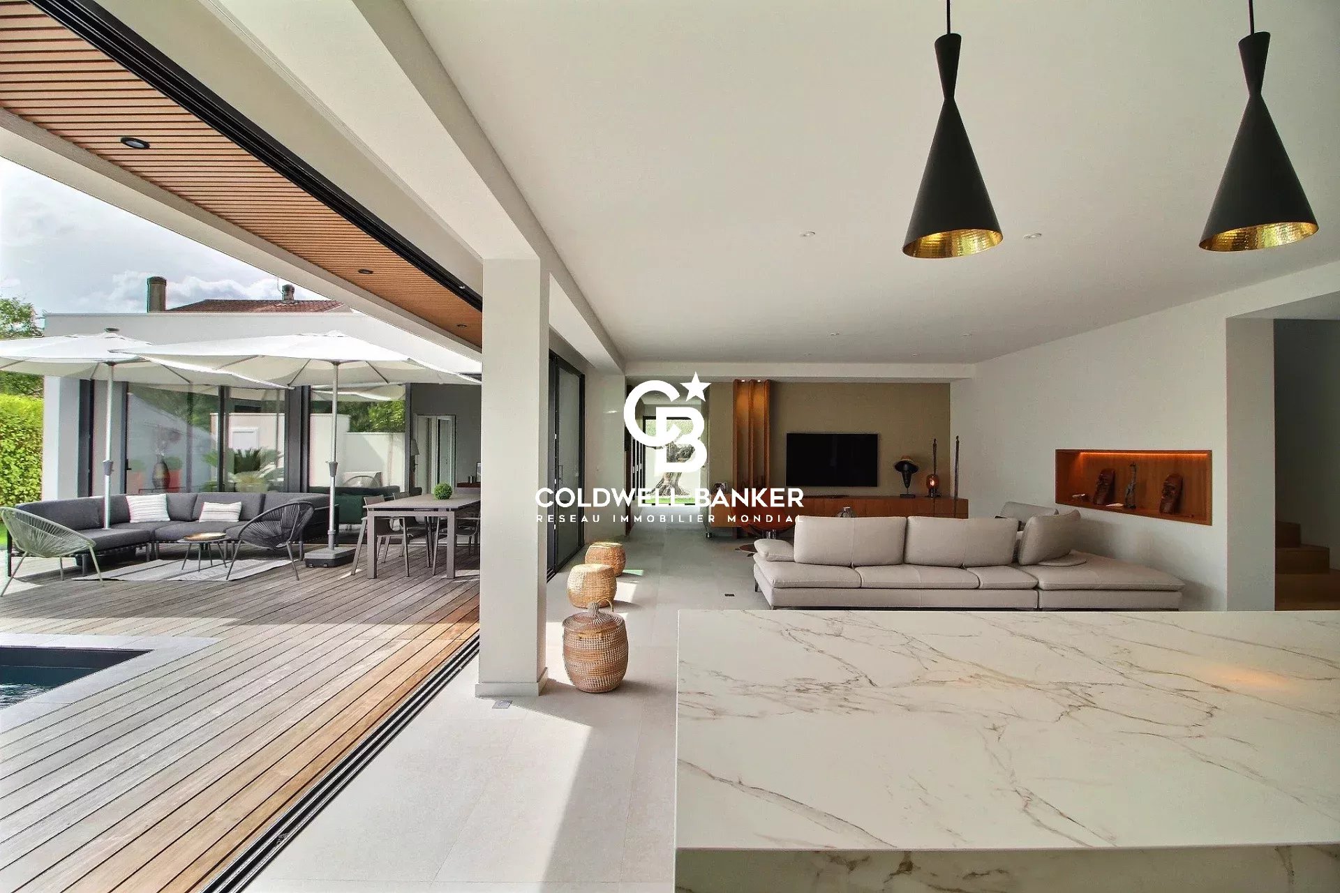 Coldwell Banker Immoba Realty, agence immobilière de Bordeaux, a le plaisir de vous présenter cette superbe maison contemporaine idéalement située dans le quartier vivant de Mérignac Capeyron, à la frontière de Caudéran. Elle propose un cadre de vie d’exception, où élégance, modernité et confort se conjuguent harmonieusement. Les volumes généreux de cette maison offrent un espace idéal pour la vie de famille. Le vaste séjour traversant, baigné de lumière grâce à de larges baies vitrées, s’ouvre sur un jardin paysagé offrant une vue dégagée et apaisante. La cuisine, à la fois design et fonctionnelle, illustre parfaitement l’alliance entre esthétisme contemporain et praticité. L’espace nuit accueille quatre chambres, dont une élégante suite parentale avec grand dressing. Deux des chambres sont situées de plain-pied, offrant ainsi un confort supplémentaire au quotidien. À l’extérieur, le jardin paysagé devient une véritable extension de la maison. Les belles journées s’apprécient autour de la piscine, dans une atmosphère conviviale et détendue. Pour un confort optimal, la propriété dispose également d’un garage, d’un espace de stationnement, d’une buanderie, d’un cellier ainsi que d’un cabanon de jardin. Enfin, la maison bénéficie d’une proximité immédiate avec toutes les commodités locales. DPE 65 (A) GES 2 (A) Estimation des coûts annuels d’énergie du logement entre 930 € et 1 320 € par an Honoraires à la charge du vendeur inclus. Consultez les risques auxquels ce bien est exposé sur : www.georisques.gouv Pour plus d'informations, contactez Aliona RAHACHOVA. Retrouvez tous nos biens sur www.immoba.fr