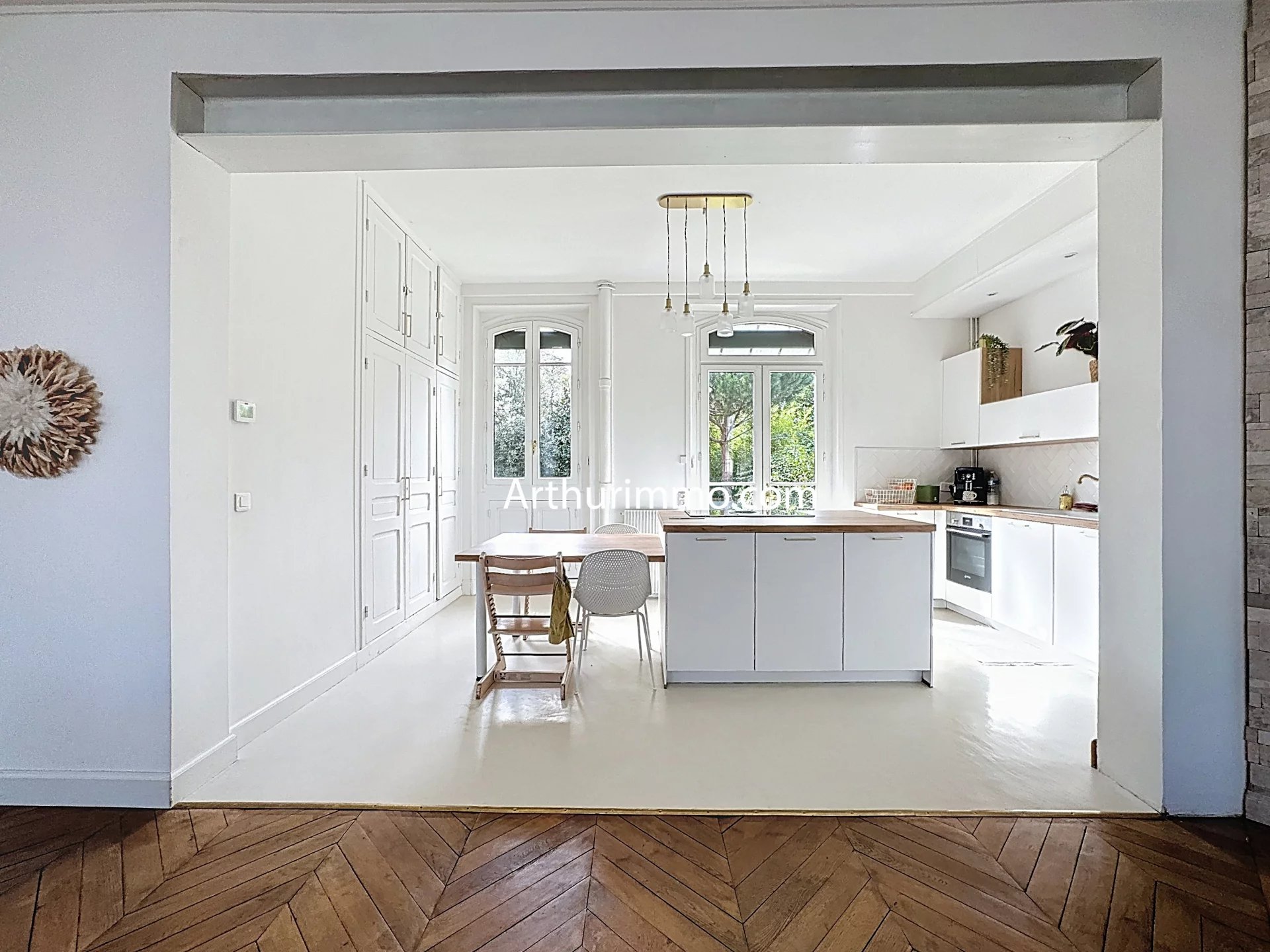 L’Agence a le privilège de vous présenter cette somptueuse maison de maître des années 1920, entièrement rénovée avec raffinement et des matériaux de grande qualité. Développant près de 280 m² habitables, elle incarne un subtil équilibre entre cachet d’antan et confort contemporain, au cœur d’un environnement calme et recherché. Dès l’entrée, un vaste hall vous accueille et mène à un lumineux salon aux volumes remarquables, sublimé par une hauteur sous plafond de trois mètres, présente à chaque niveau. Le parquet en point de Hongrie et les moulures d’époque confèrent une élégance intemporelle aux pièces de réception. La salle à manger, conviviale et réchauffée par un poêle à bois, s’ouvre sur une cuisine haut de gamme, aménagée et équipée, qui communique harmonieusement avec l’espace de vie et le jardin. Un espace sanitaire avec lave-mains complète ce niveau. À l’étage, trois chambres confortables, dont l’une actuellement aménagée en bureau, s’articulent autour d’une magnifique suite parentale de plus de 25 m². Celle-ci dispose d’une baignoire apparente, d’un dressing privatif. Cet étage est complété d’une salle d’eau à l’italienne avec WC suspendu. Une buanderie de 10 m² apporte un supplément de fonctionnalité. Le deuxième étage dévoile un espace exceptionnel de 52 m² au sol, idéal pour accueillir une salle de jeux, une bibliothèque, un home cinéma ou encore une seconde suite parentale, selon vos envies. Le sous-sol semi-enterré offre une cave complète avec un atelier, une pièce polyvalente, une cave à vins et une chaufferie équipée d’une chaudière à granulés, assurant un confort thermique exceptionnel et une consommation économique remarquable. L’ensemble repose sur un terrain arboré de 1 300 m², véritable écrin de verdure offrant un cadre de vie paisible et convivial. Une cour royale permet de multiples stationnements. Cette demeure rare et authentique conjugue charme historique et prestations modernes pour offrir un lieu de vie d’exception, idéal pour une famille en quête d’espace, de caractère et de sérénité.