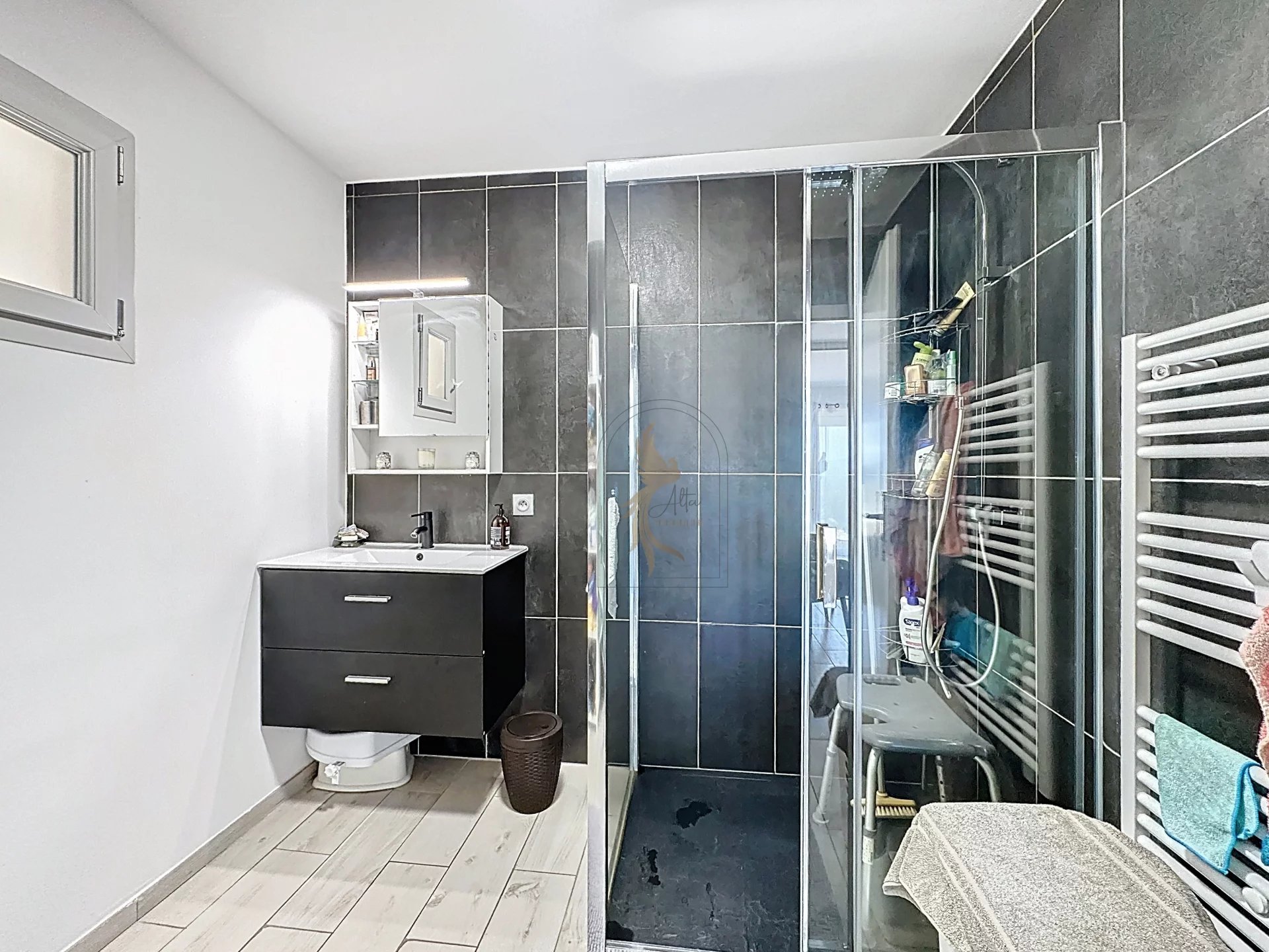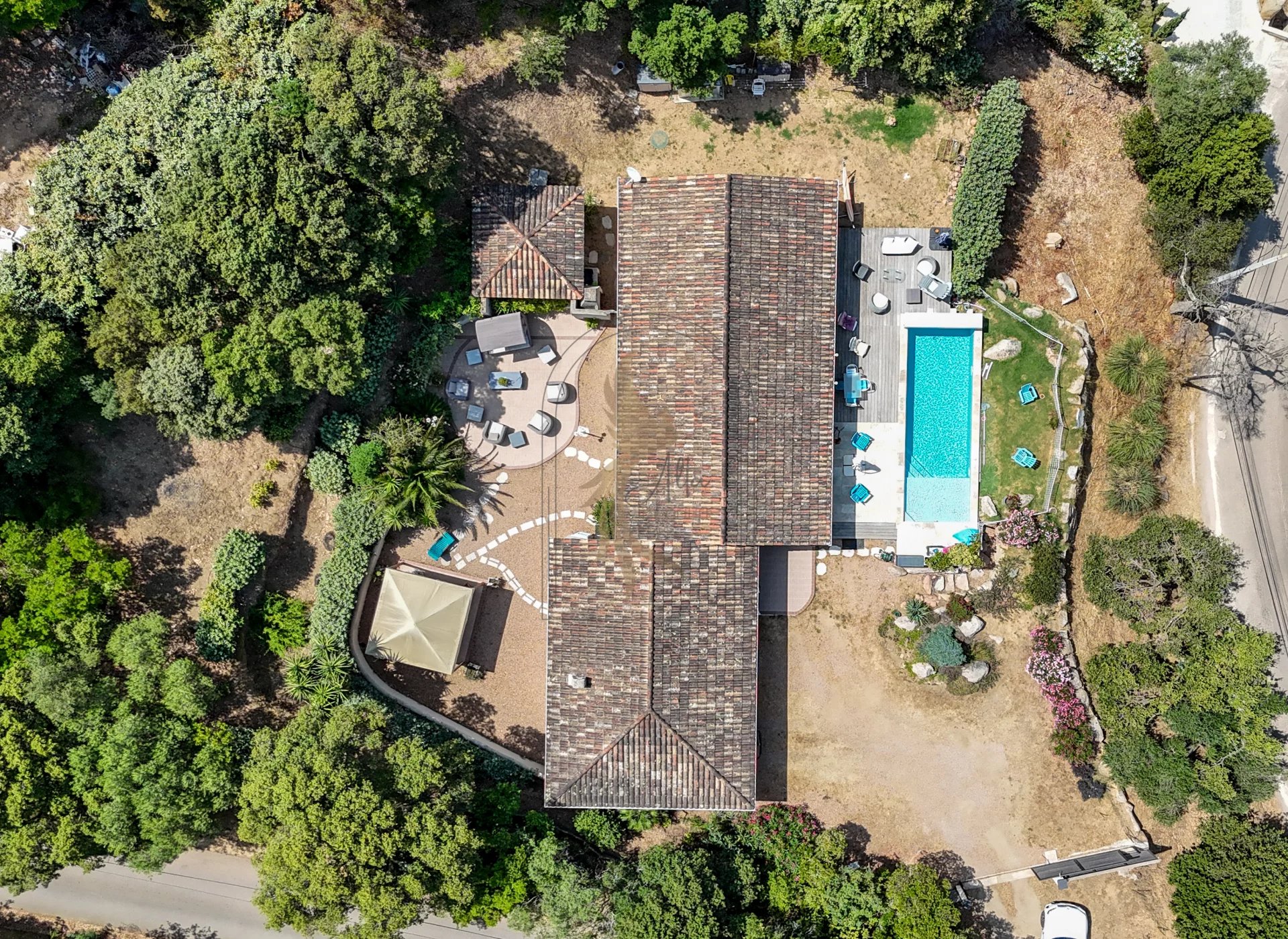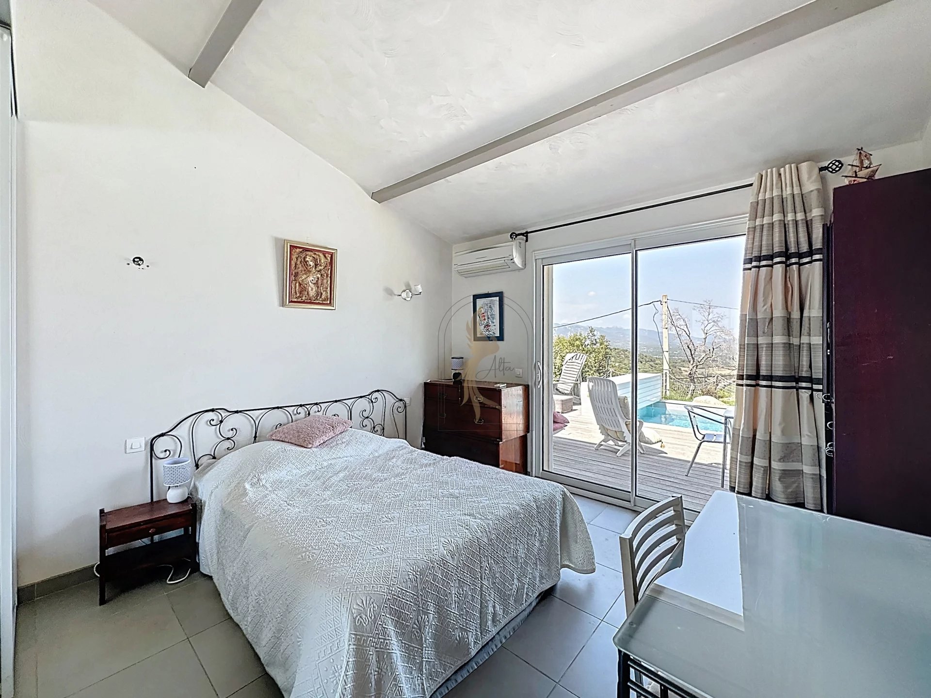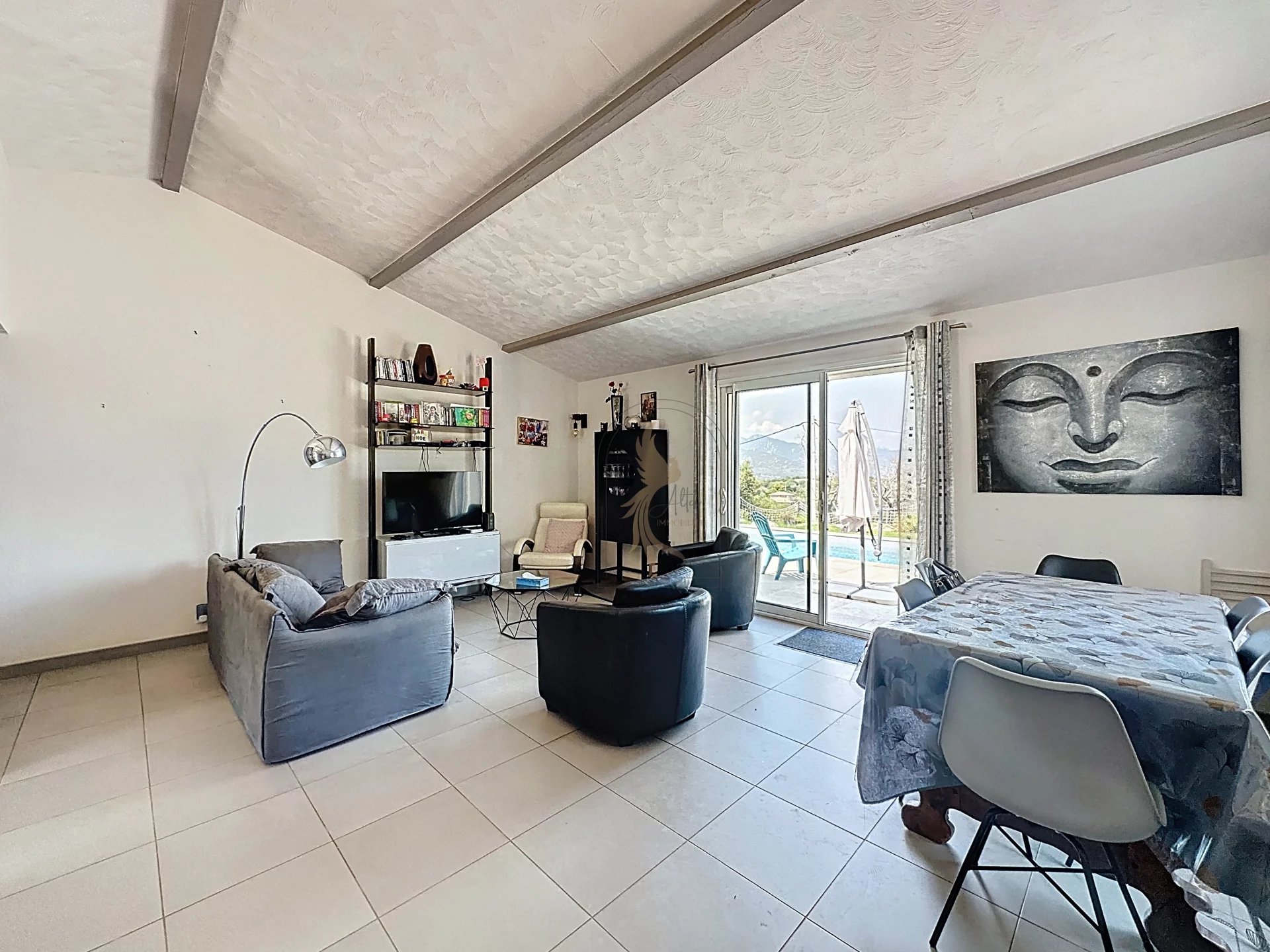 Nichée sur les hauteurs de Porto Vecchio, cette charmante villa d’environ 160 m² offre un cadre de vie paisible, tout en restant à proximité immédiate des commerces, des écoles et des principaux axes de circulation. Implantée sur un beau terrain de 1 796 m², elle séduit par sa vue panoramique sur les montagnes corses et son aperçu mer à l’horizon. L’espace extérieur est agrémenté d’une piscine au sel de 9 x 3 m, idéale pour se détendre. La propriété se compose aujourd’hui de deux espaces de vie distincts, reliés par un sas intérieur, pouvant facilement être réunis pour créer une seule et grande habitation selon les besoins. La partie principale, d’environ 107 m², dispose d’un vaste séjour lumineux avec salon et cuisine ouverte entièrement équipée, de trois belles chambres, d’une salle de bain et d’une salle d’eau. La seconde partie, entièrement rénovée, est un grand T1 bis de 45 m² comprenant un séjour avec cuisine ouverte, un cellier et un espace nuit en mezzanine, parfait pour accueillir famille, amis ou générer un revenu locatif complémentaire. Une annexe indépendante d’environ 16 m² vient compléter ce bien, offrant une pièce supplémentaire pour un atelier, un bureau ou un espace de stockage. Un bien rare sur le secteur, alliant confort, potentiel et emplacement stratégique, idéal pour une grande famille, un projet de location saisonnière ou une résidence principale avec logement indépendant.