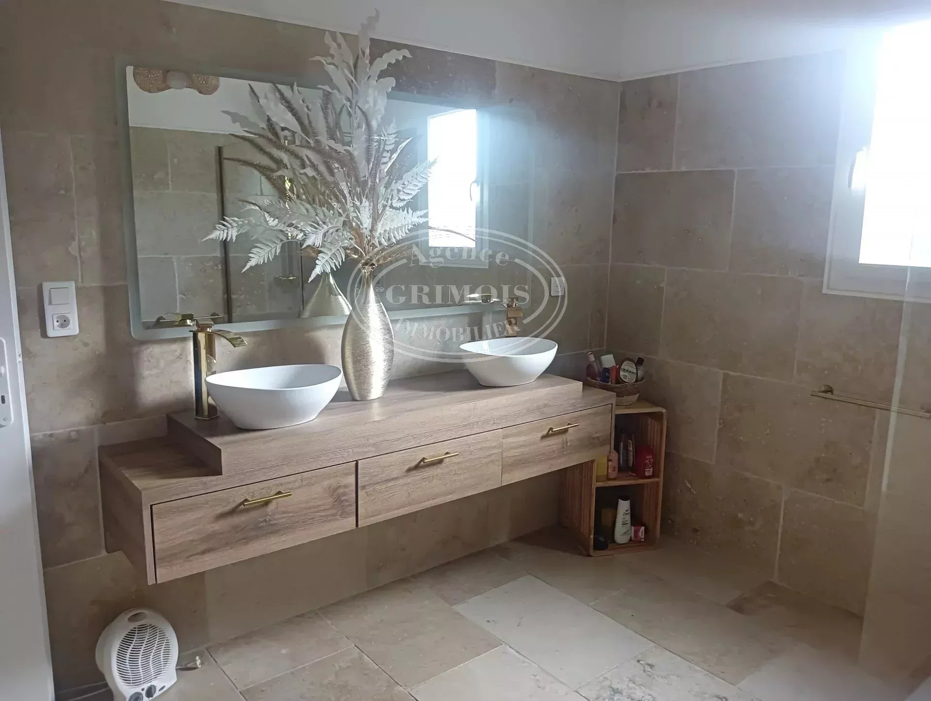 RDC - Séjour avec cuisine ouverte de 78 m² avec climatisation réversible et poêle à granules - Chambre de 16 m² avec grand placard intégré - Salle d'Eau de avec WC de 3.50 m² - Deux terrasses carrelées de 13 m² et 16 m² ETAGE - Trois belles chambres avec placard intégré de 11.50, 12.10, 11.50 m², dont 2 qui bénéficient d'un beau balcon - Salle de bain de 8.80 m² avec double vasque, baignoire et douche à l'italienne - WC de 1.60 m² indépendant ATOUTS Salle de bain rénovée en 2024, double vitrage et volets roulants, climatisation au coin jour et dans chaque chambre, grand débarras, quartier calme , piscine coque de 8x4 au chlore avec sa belle terrasse, proche de la zone commerciale, AUCUN TRAVAUX A PREVOIR Consommation conventionnelle: 92 kWh ep/m2.an (Classe B) Estimation des émissions : 7 kg eqCO2/m2.an (Classe A) Estimation des coûts annuels : entre 1 030 € et 1 470 € par an, prix moyens des énergies indexés au 1er janvier 2021. CONTACT : MARIE JOSEE : 06 87 52 01 34 La présente annonce immobilière a été rédigée sous la responsabilité de Marie Josée VIDAL , agent commercial en immobilier au sein de l'agence GRIMOIS IMMOBILIER en EI, immatriculé au Registre Spécial des Agents Commerciaux du Tribunal de Commerce de Narbonne , sous le n° 39284930300020. Les honoraires sont à la charge du vendeur .