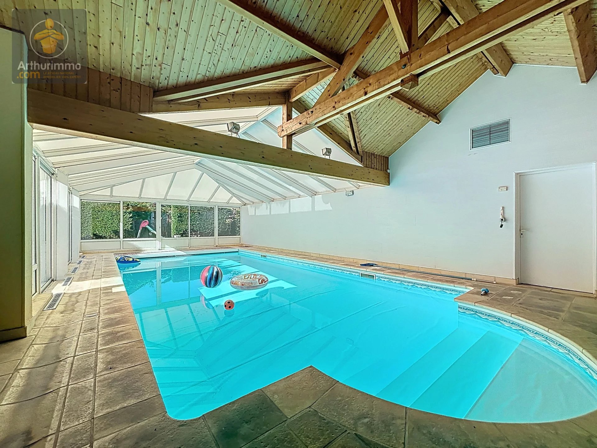 Pour vos moments de détente, vous bénéficierez d’un espace bien-être complet, avec une piscine intérieure de 100 m² chauffée au chrome (10 x 5 m), un coin salle de sport, une cuisine d'été ainsi qu'une douche avec WC, et même un terrain de pétanque, idéal pour profiter des beaux jours en famille ou entre amis.