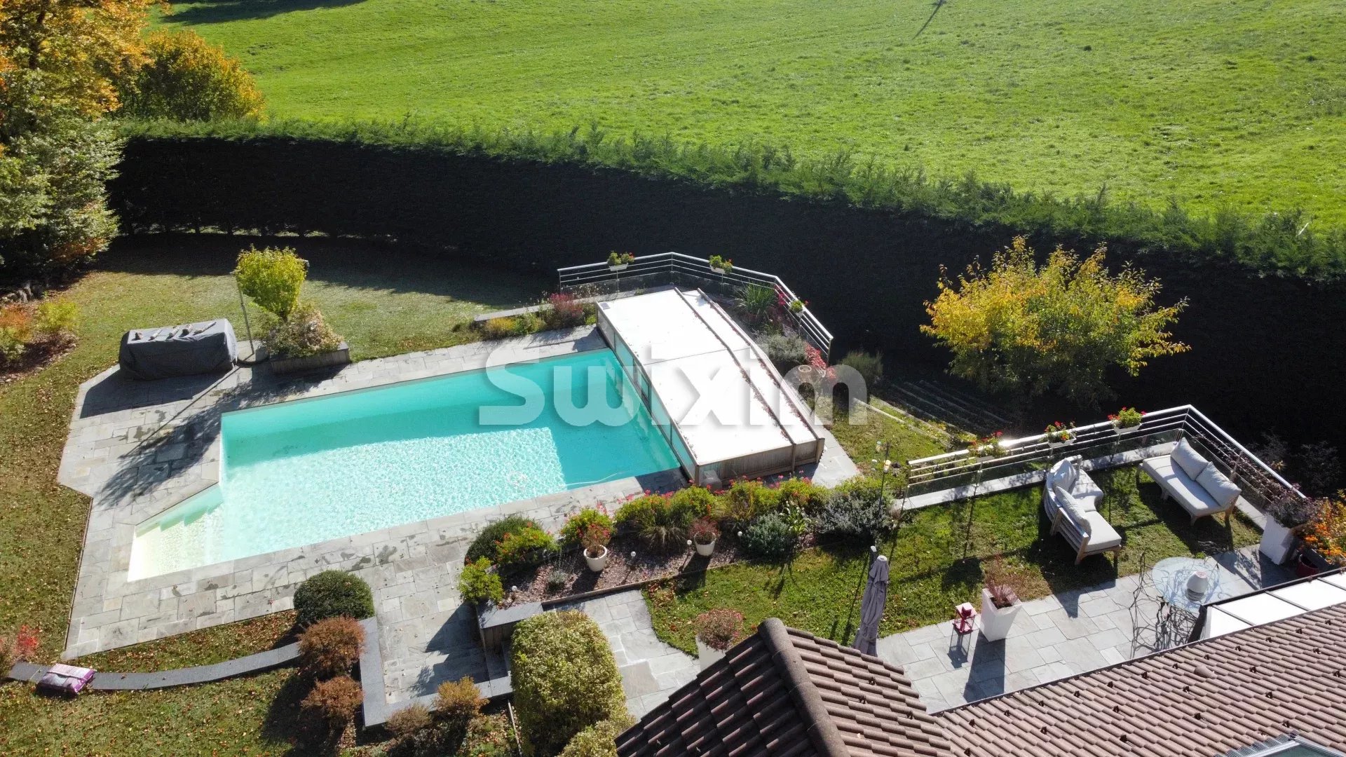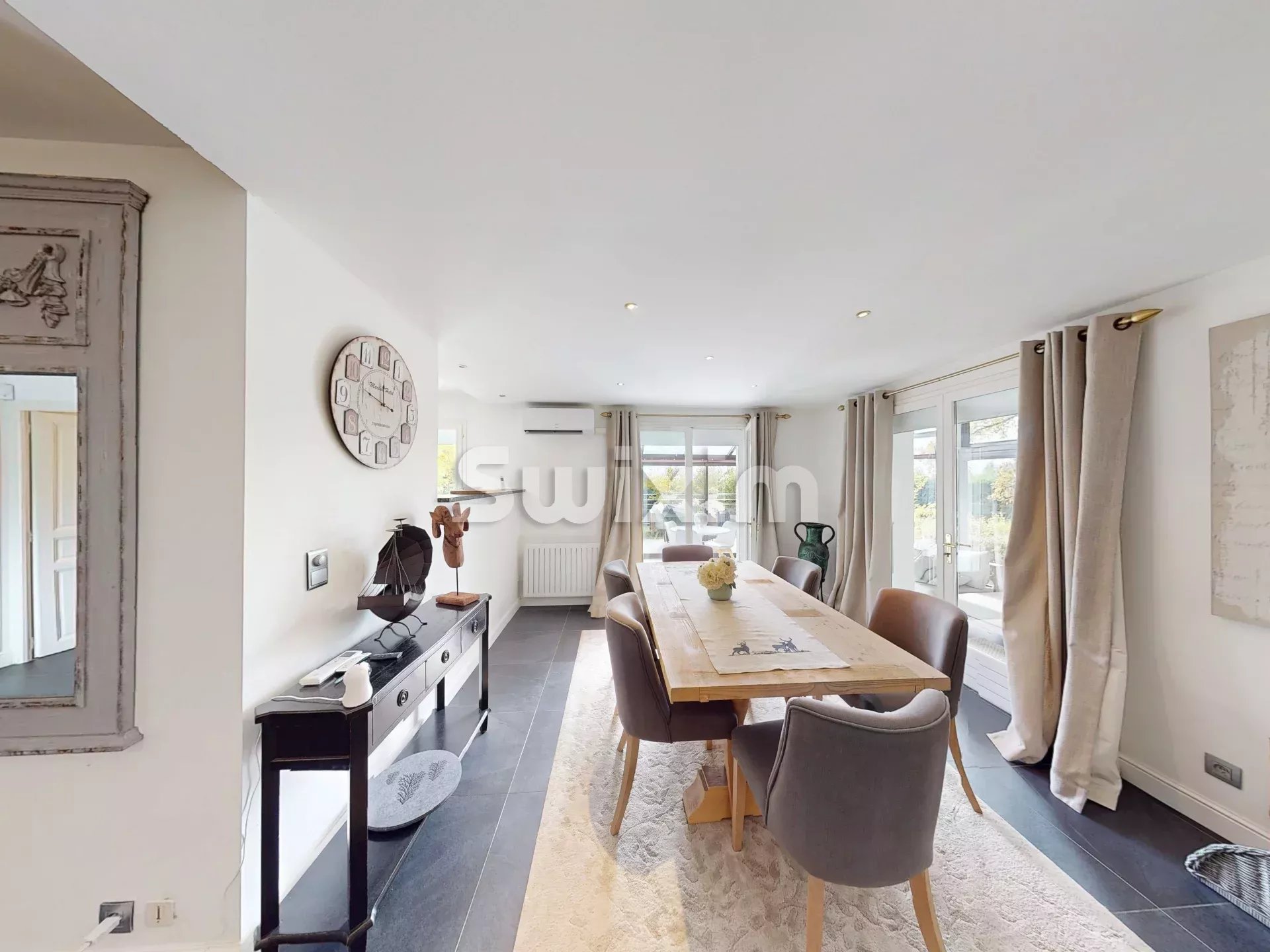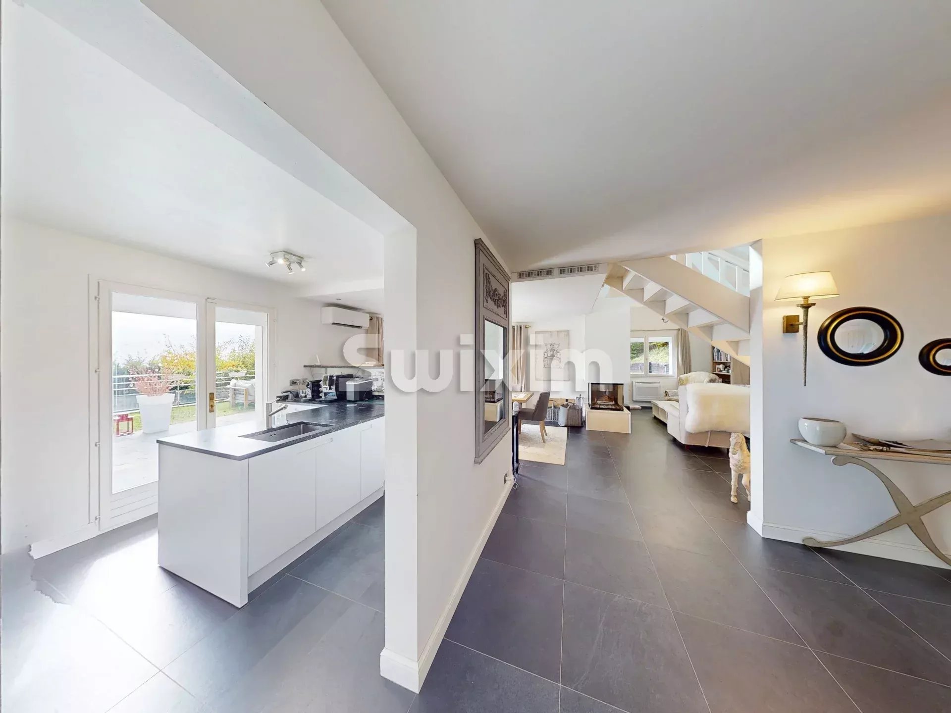 Venez découvrir chez SWIXIM cette superbe maison de 175 m², située sur les hauteurs de Cruseilles, implantée sur un terrain de 2 400 m², offrant un cadre de vie d’exception : calme, panoramique et à seulement 5 minutes en voiture du centre-ville et de toutes les commodités. - Au rez-de-chaussée : une pièce de vie lumineuse, agrémentée d’une cheminée et ouvrant sur une belle véranda. Une cuisine semi-ouverte, moderne, disposant d’un îlot central fonctionnel, de rangements généreux et d’équipements électroménagers encastrés. - Au demi-niveau supérieur : trois chambres, dont une avec dressing, une salle de bains équipée douche + baignoire + WC. - Au 1er étage : une grande chambre supplémentaire avec placard intégré et une mezzanine aménagée en bureau/bibliothèque — parfait pour télétravail ou espace enfants. - Au sous-sol : un appartement indépendant (pièce de vie + cuisine, chambre + placards, salle d’eau) — idéal pour recevoir, louer ou loger la famille. Pourquoi ce bien est un coup de cœur Le terrain entier est un véritable écrin : belle exposition, vue dégagée sur les massifs environnants, piscine (avec couverture), abri voiture et cabanon de jardin. Une rareté sur le secteur : combinaison volume, terrain, piscine, vue. Une maison conçue pour la vie de famille, le confort et la polyvalence (résidence principale + potentiel locatif via l’appartement indépendant). Un emplacement stratégique en Haute-Savoie : proximité de Genève, accès facile, environnement qualitatif. Visite virtuelle disponible sur demande Pour plus d'informations : Agence SWIXIM Cruseilles Eliott BUFFARD Votre conseiller: Eliott BUFFARD Agent commercial RSAC 941 413 643 Surface : 175 m² Prix du bien : 1 150 000 € Honoraires à la charge du vendeur Consommation énergie primaire : 254 kWh/m²/an Consommation énergie finale : Non communiqué Montant estimé des dépenses annuelles d'énergie pour un usage standard : entre 3 070 € et 4 230 € sur l' année 2021.