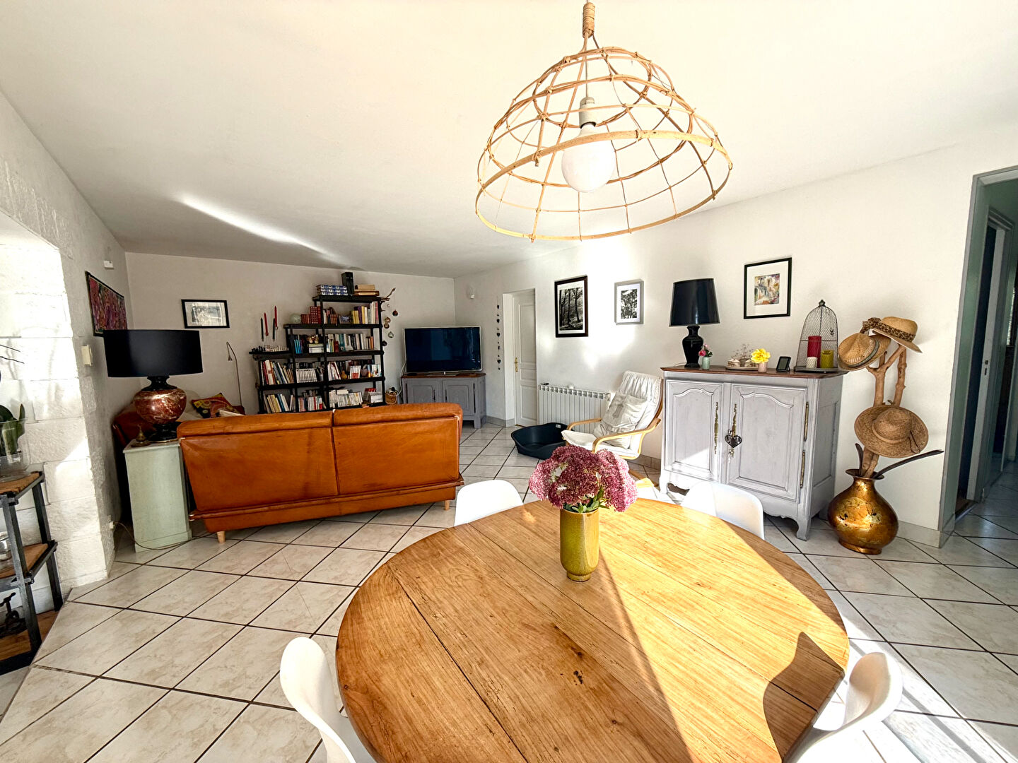 entièrement de plain pied, comprenant une entrée, une très belle pièce de vie avec salon - salle à manger et cuisine aménagée et équipée donnant sur un adorable patio ensoleillé et abrité des regards, une arrière cuisine menant au jardin, 3 chambres, une salle d'eau et un wc indépendant.Au dessus du double garage, vous découvrirez une pièce supplémentaire qui conviendra parfaitement à une chambre d'ado ou un espace de télétravail. Un magnifique terrain arboré de nombreux fruitiers, en partie constructible vous offrira aux beaux jours, de superbes journées ensoleillées en famille ou entre amis autour de la piscine sécurisée par un dôme rétractable. Le bonus : la maison est équipée de panneaux photovoltaïques dont l'électricité revendue compense en grande partie celle consommée.Vous cherchez une maison en parfait état, au coeur d'un village