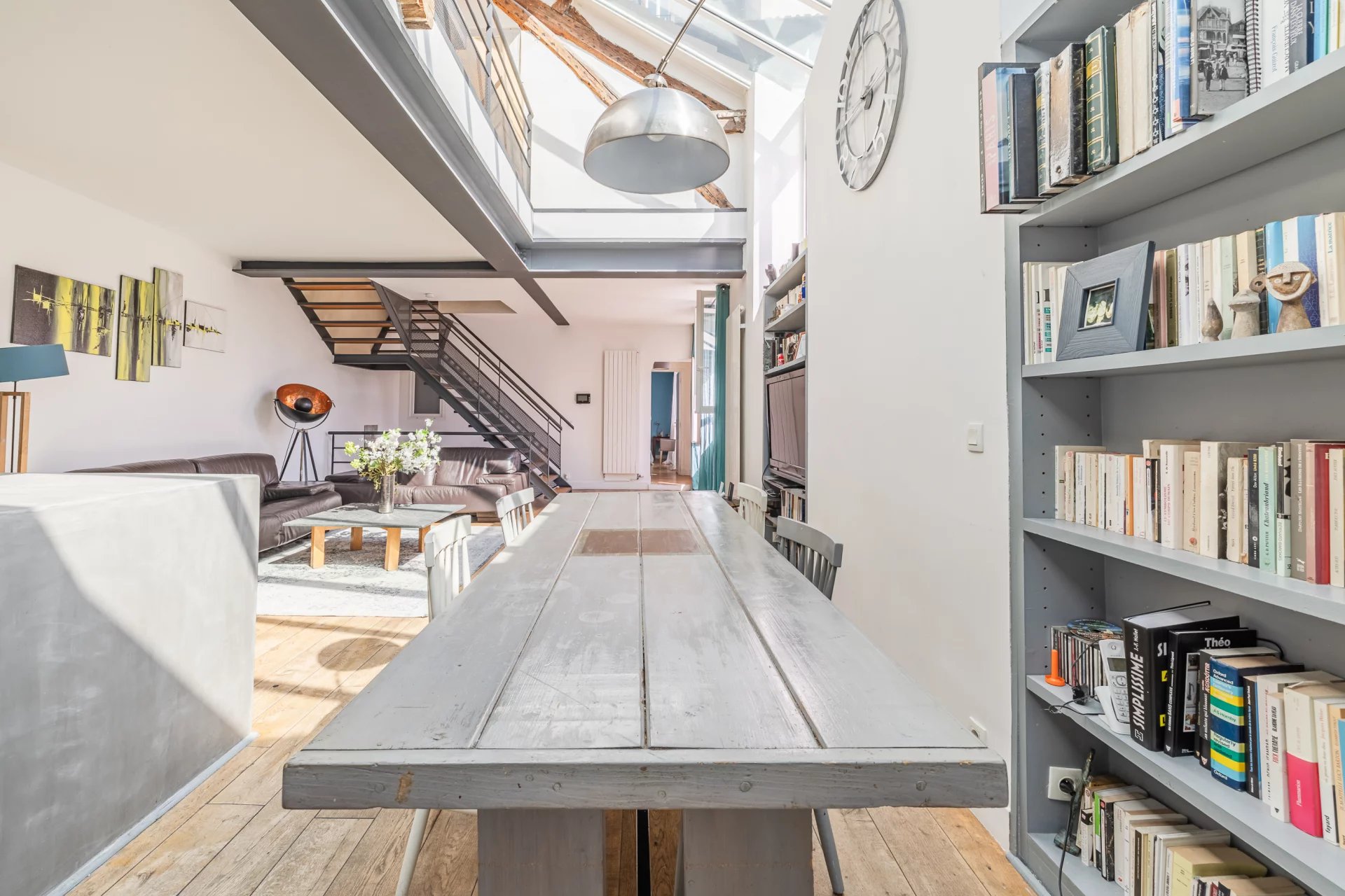 Au coeur du quartier de la PLaine, à 10 minutes des stations des RER B et D, et à proximités des commerces, nous vous proposons en exclusivité, au sein d'une copropriété à taille humaine, au fond de la cour commune, un loft de 140,85m2 Loi Carrez (157,06m2 au sol).
